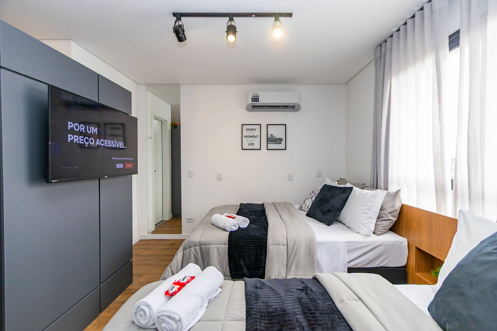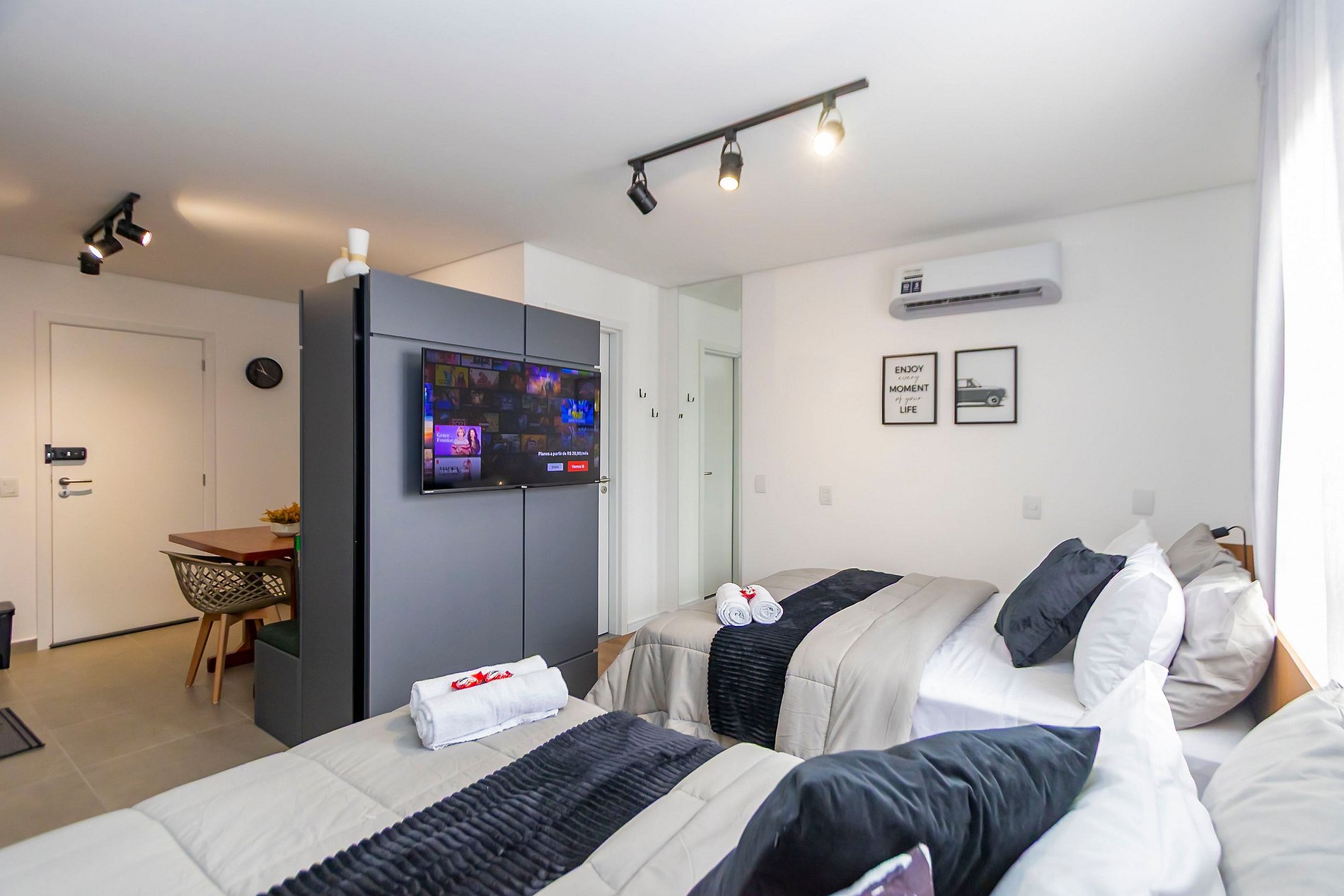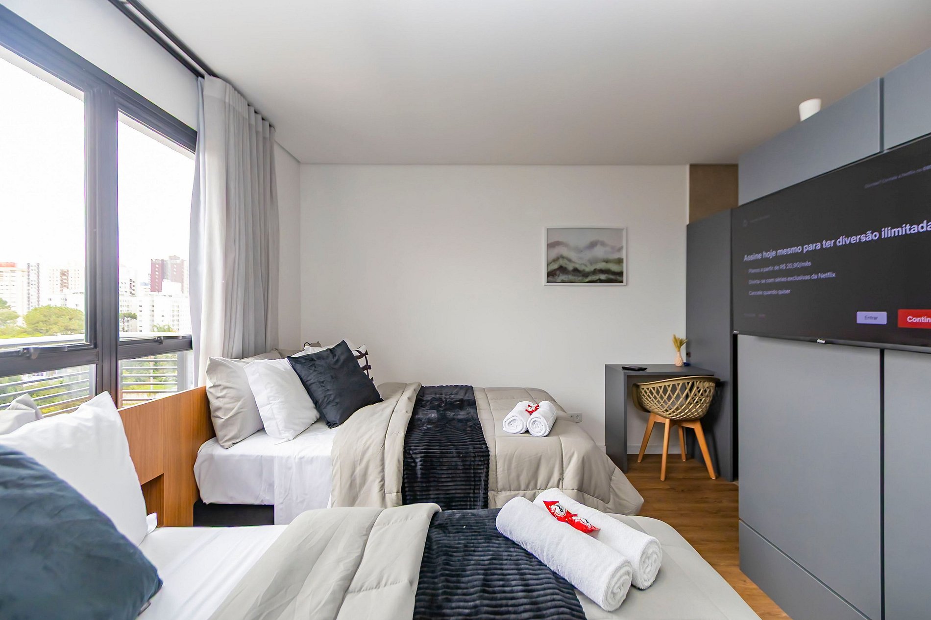⌂ Estúdio completo com 2 camas de casal que oferece as seguintes comodidades aos seus hóspedes: