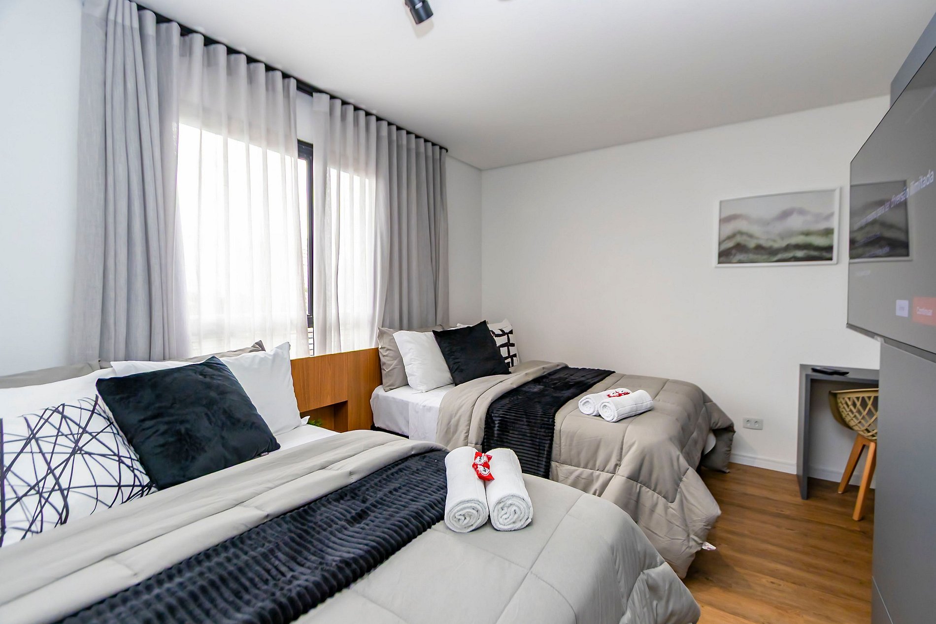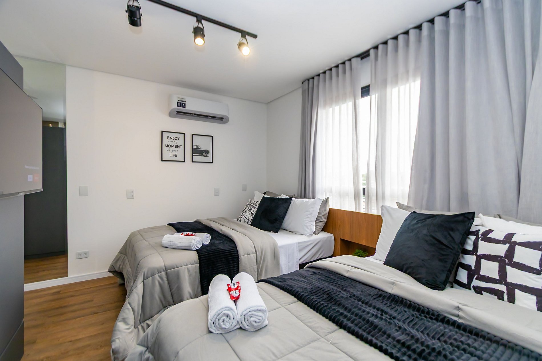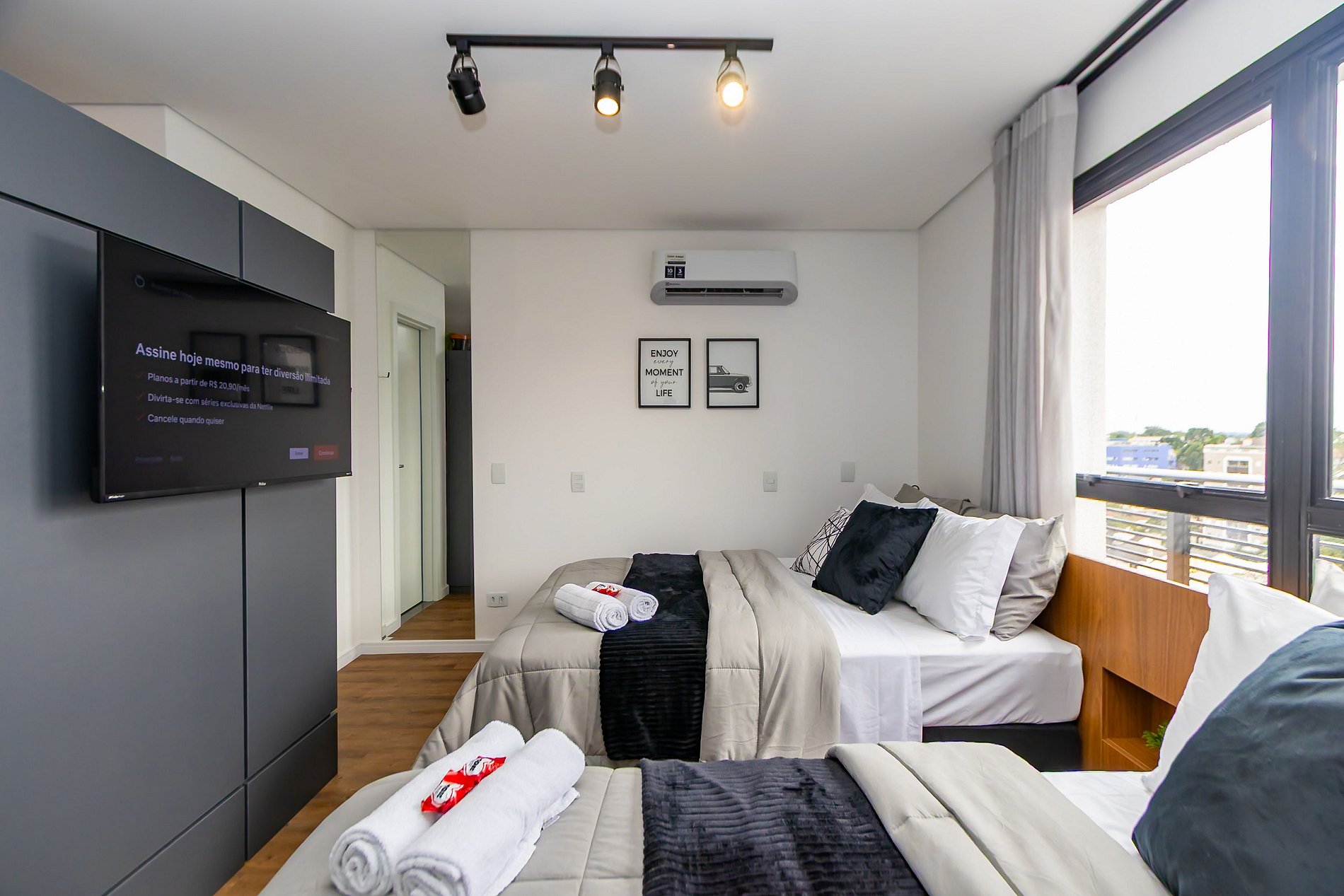 ⌂ Estúdio completo com 2 camas de casal que oferece as seguintes comodidades aos seus hóspedes: