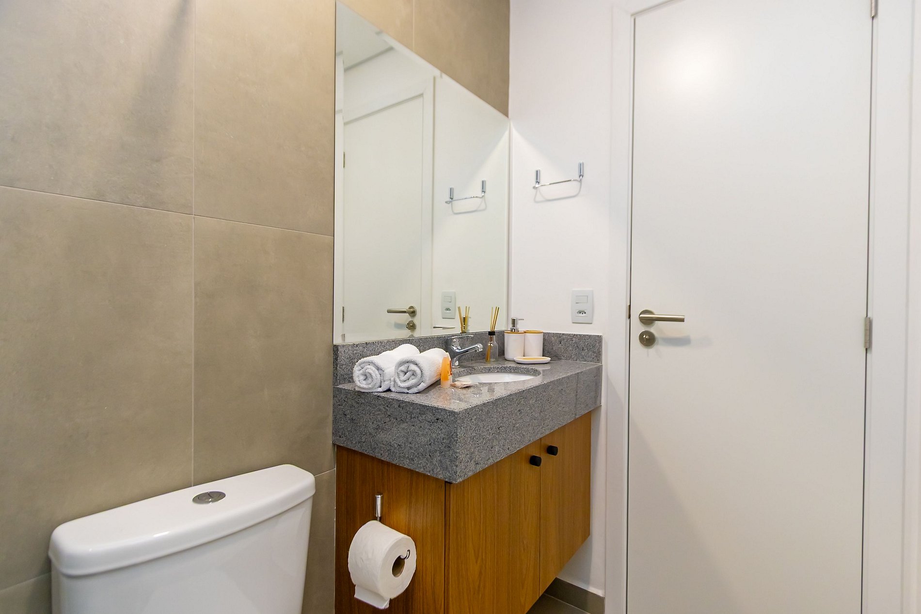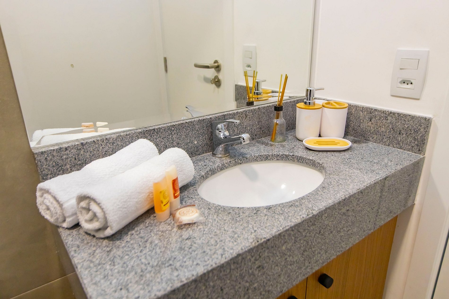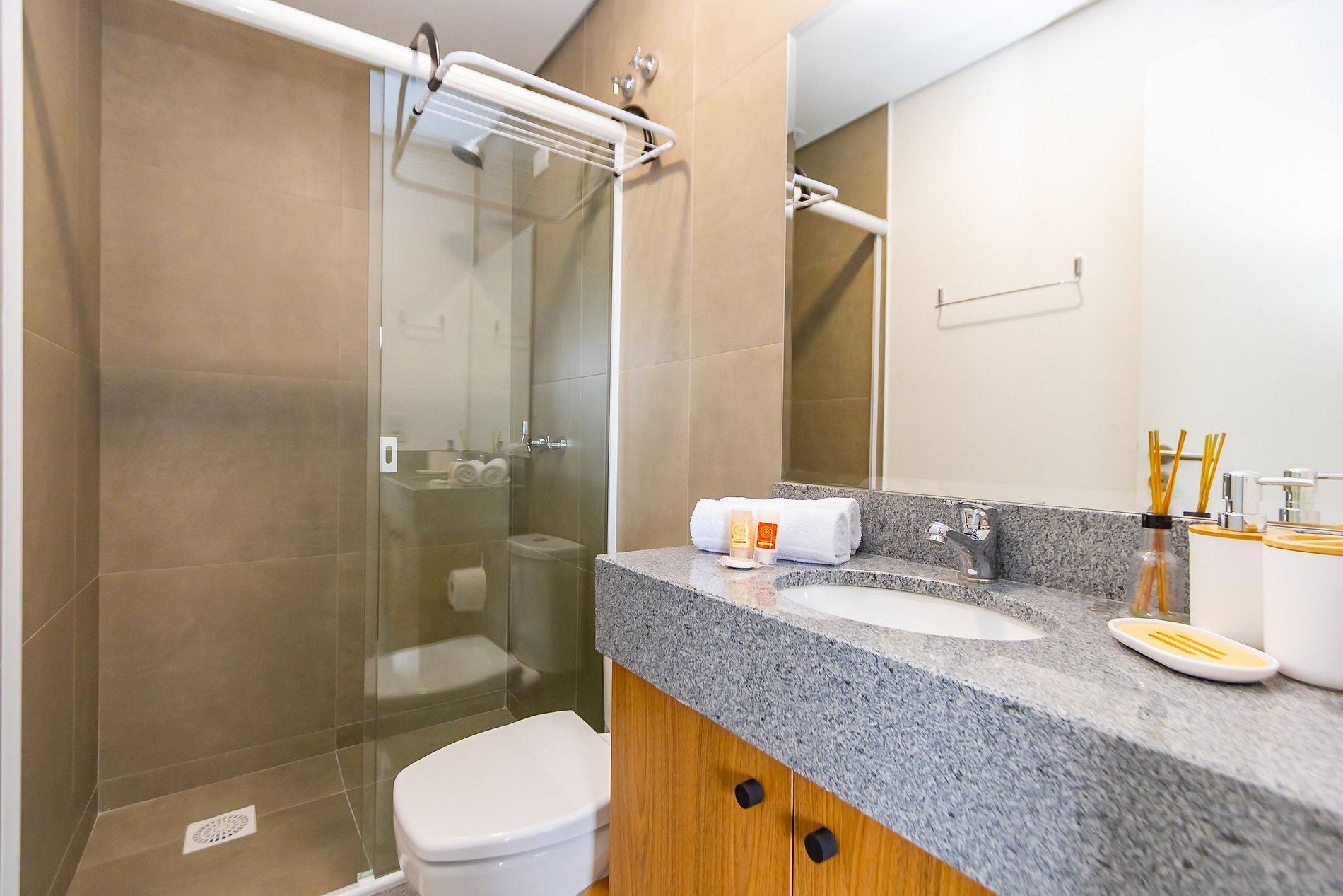 Durante a sua estadia não temos serviço de quarto e nem fazemos a reposição dos itens da sua unidade como: shampoo, condicionador, sabonete, papel higiênico, pano de prato, esponja e detergente de louça, além de pilhas do controle remoto, ar-condicionado e da fechadura eletrônica. A reposição destes itens é de responsabilidade do hóspede titular da reserva.