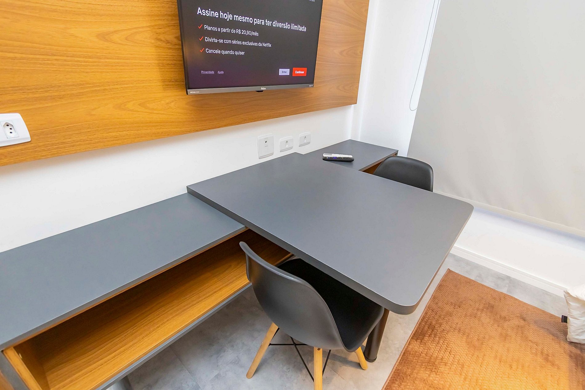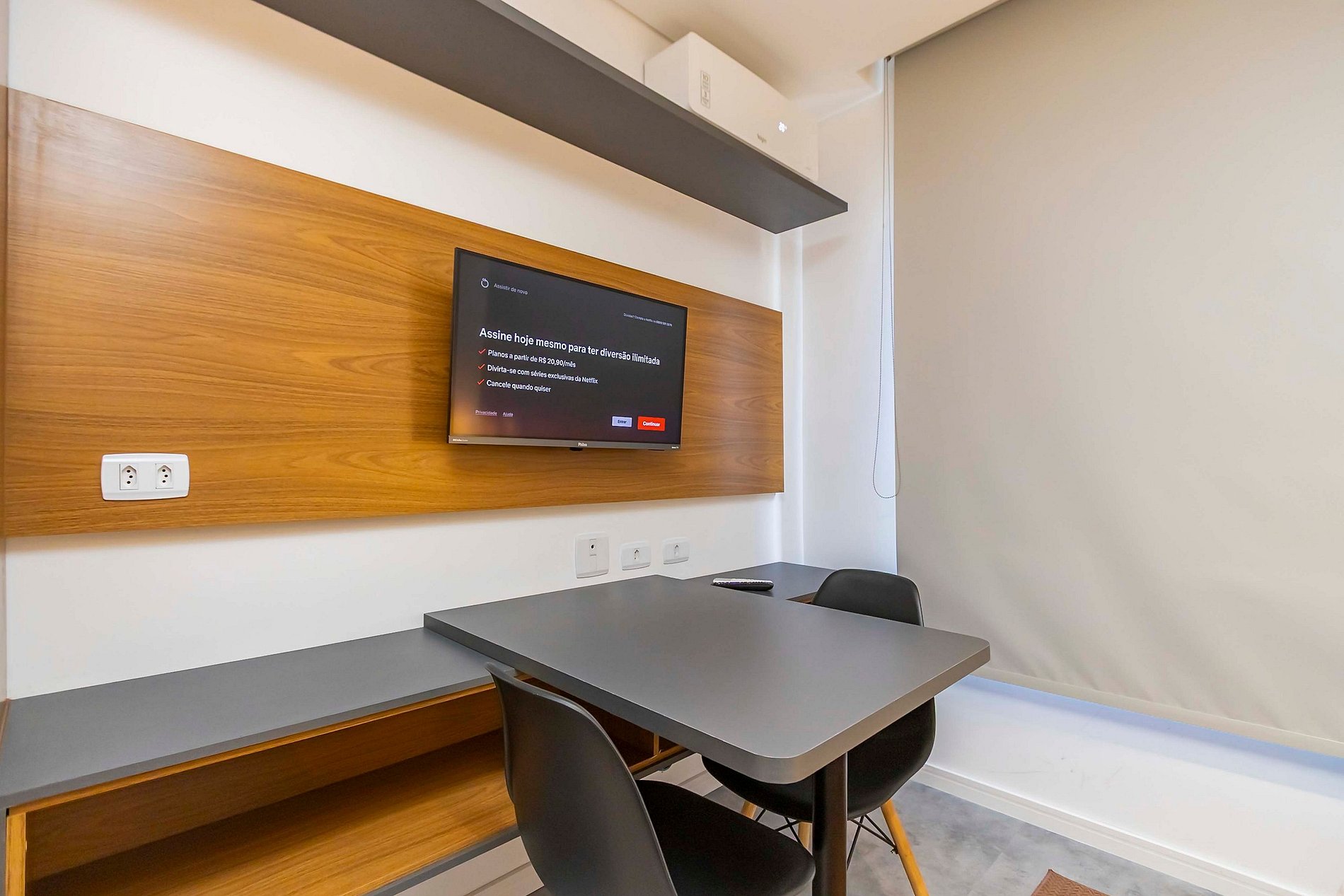 No térreo você tem à disposição nosso Coworking, um espaço compartilhado para estudo, trabalho, refeições e integração com outros housilovers. O ambiente fica aberto 24h por dia e, se quiser, você pode reservá-lo para pequenas reuniões privadas! Consulte no whats sobre os valores e disponibilidade. Ah! Lembre-se de respeitar o silêncio nos ambientes compartilhados a partir das 22h e evite multas.