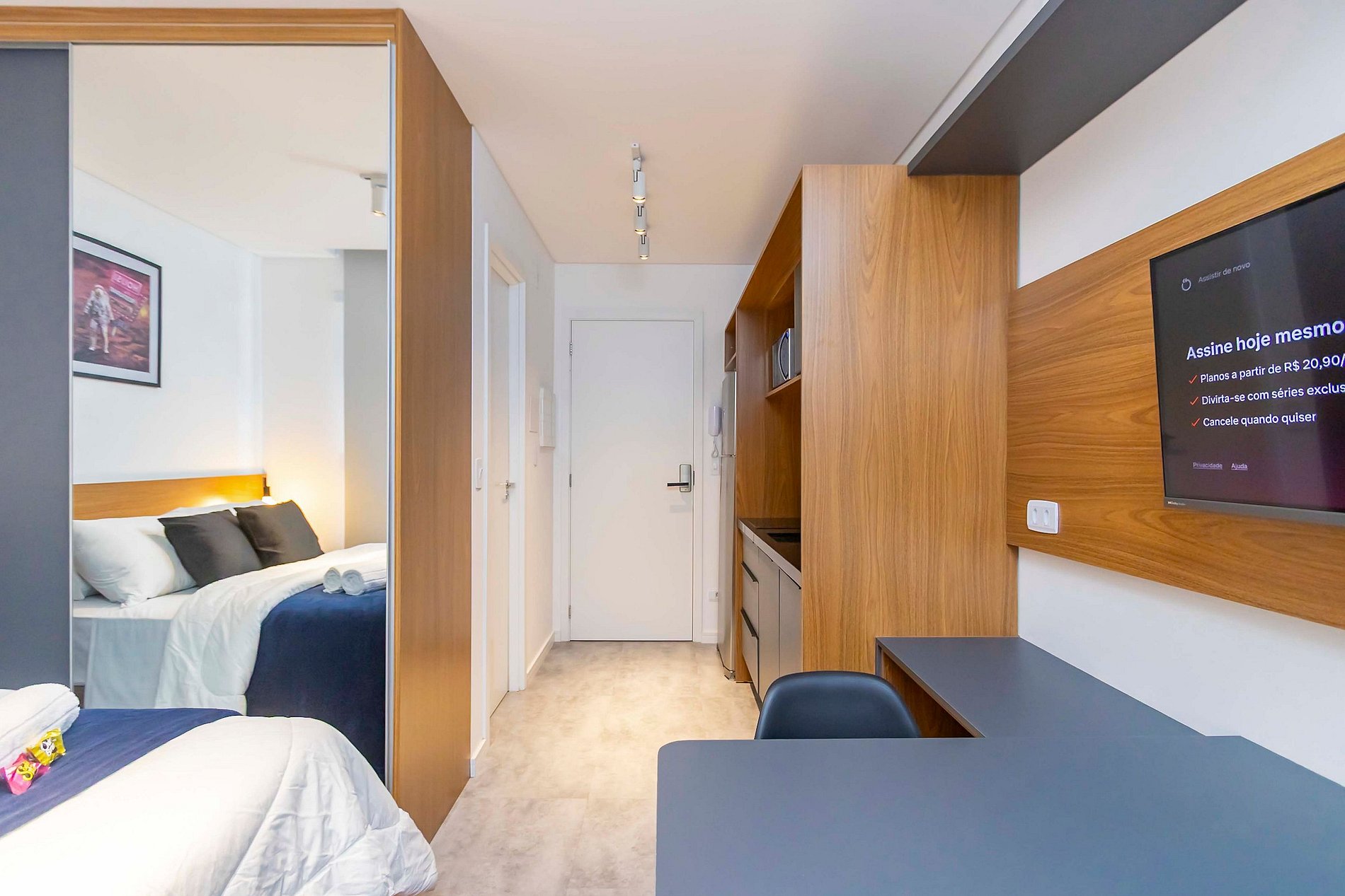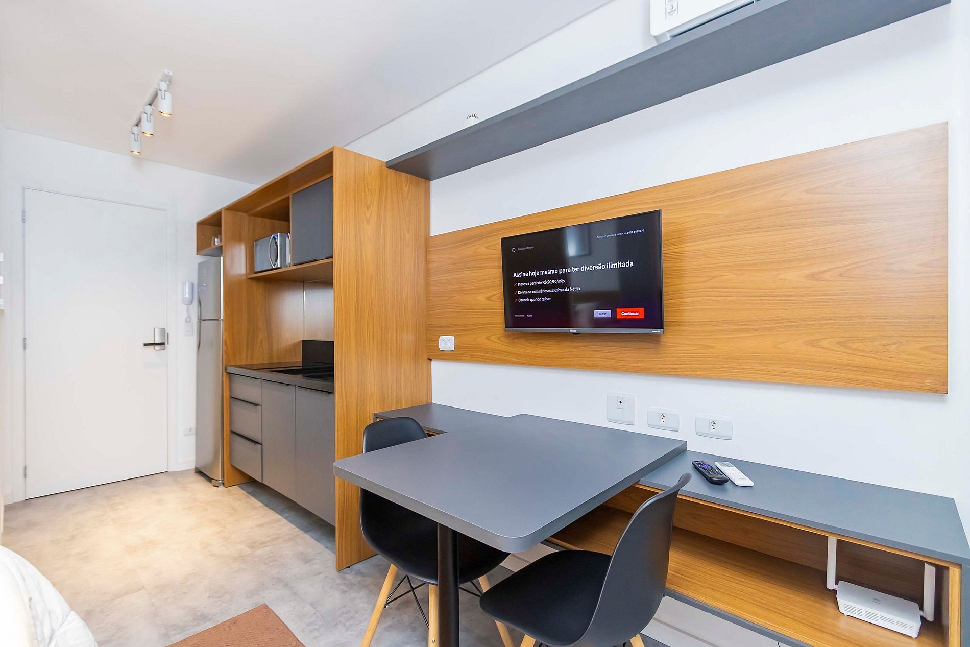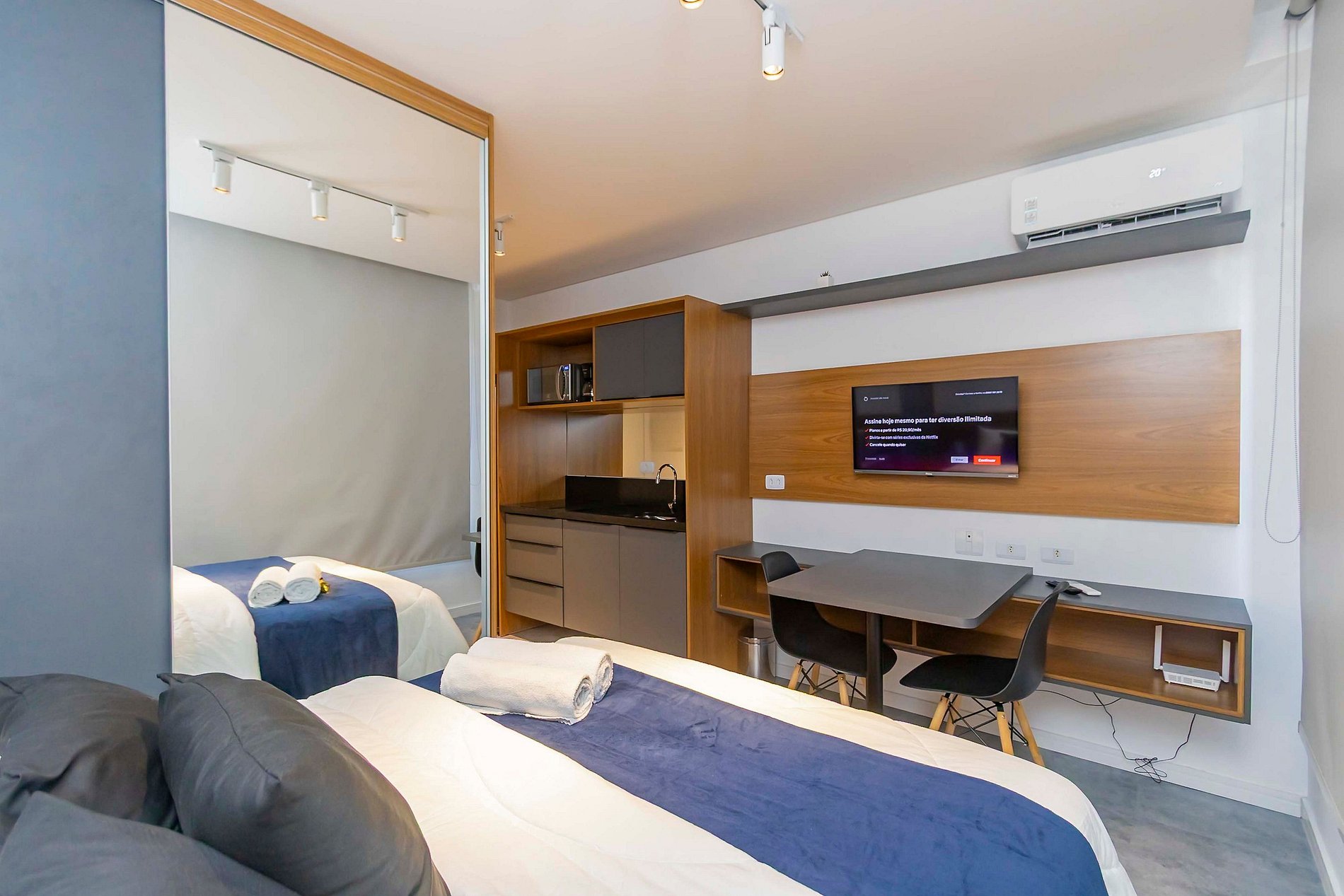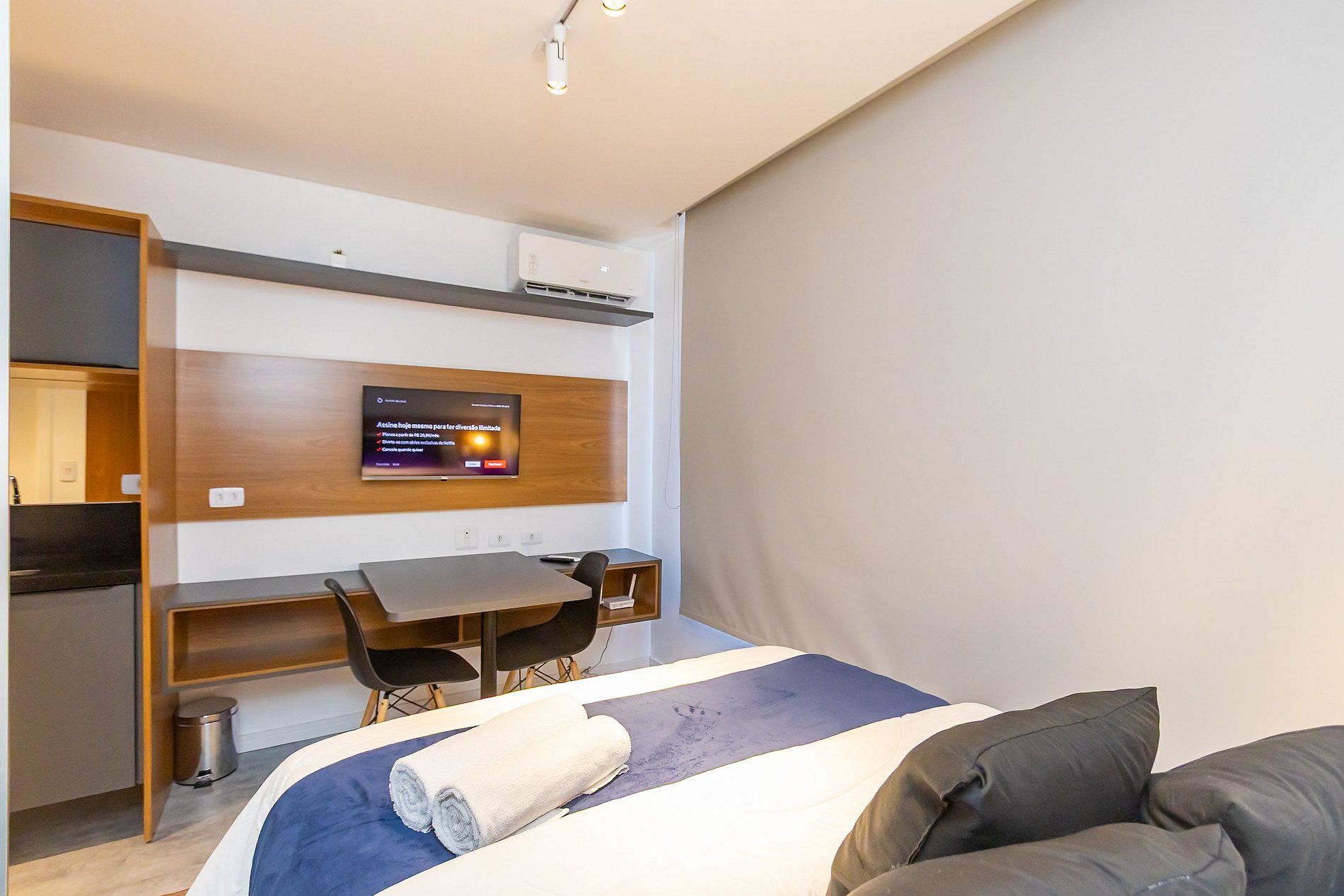 ⌂ Estúdio totalmente mobiliado que oferece as seguintes comodidades aos seus hóspedes: