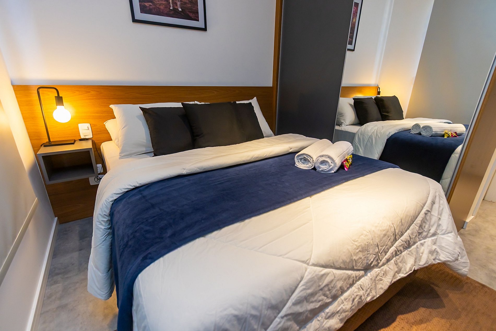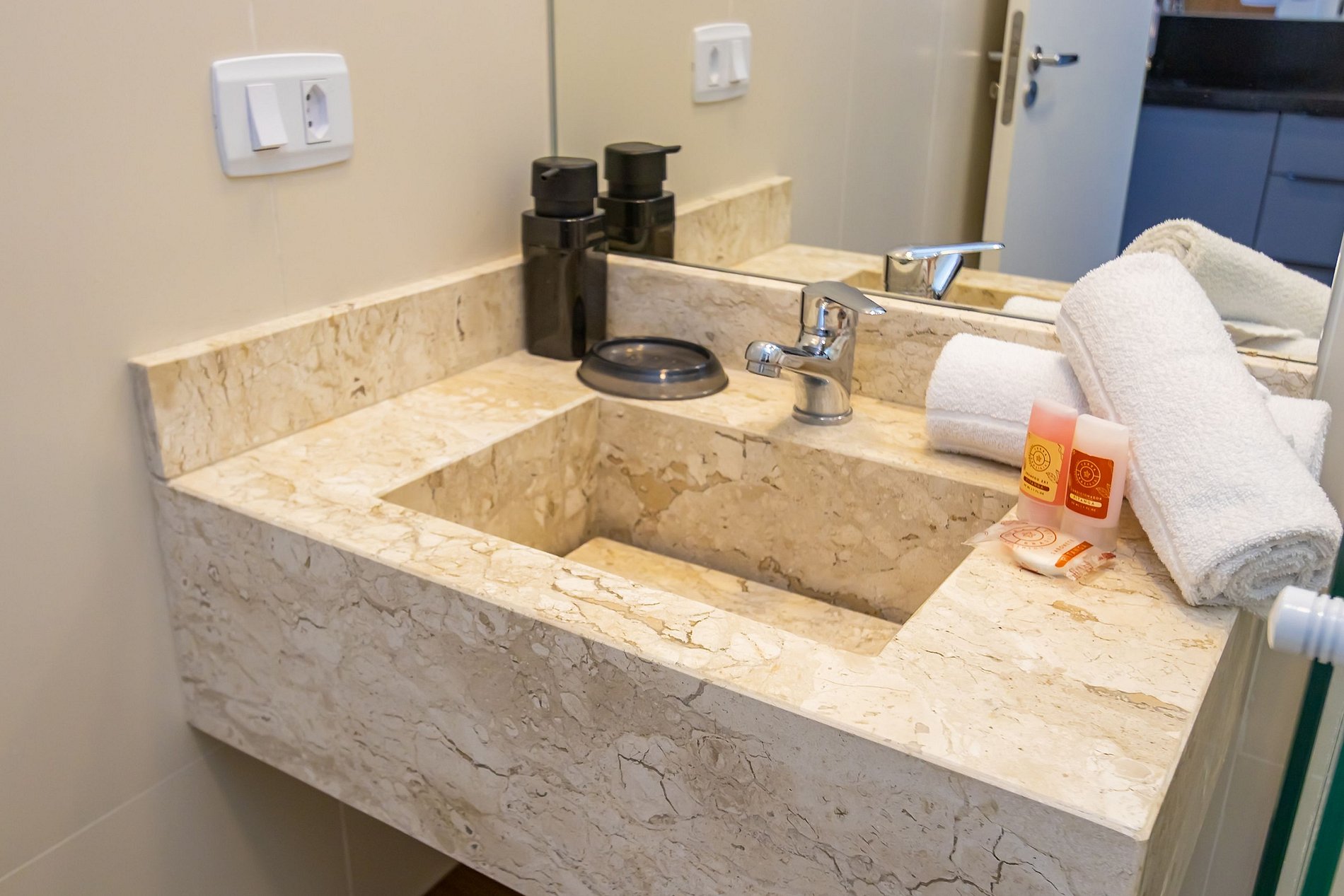 Durante a sua estadia não temos serviço de quarto e nem fazemos a reposição dos itens da sua unidade como: shampoo, condicionador, sabonete, papel higiênico, pano de prato, esponja e detergente de louça, além de pilhas do controle remoto, ar-condicionado e da fechadura eletrônica. A reposição destes itens é de responsabilidade do hóspede titular da reserva.