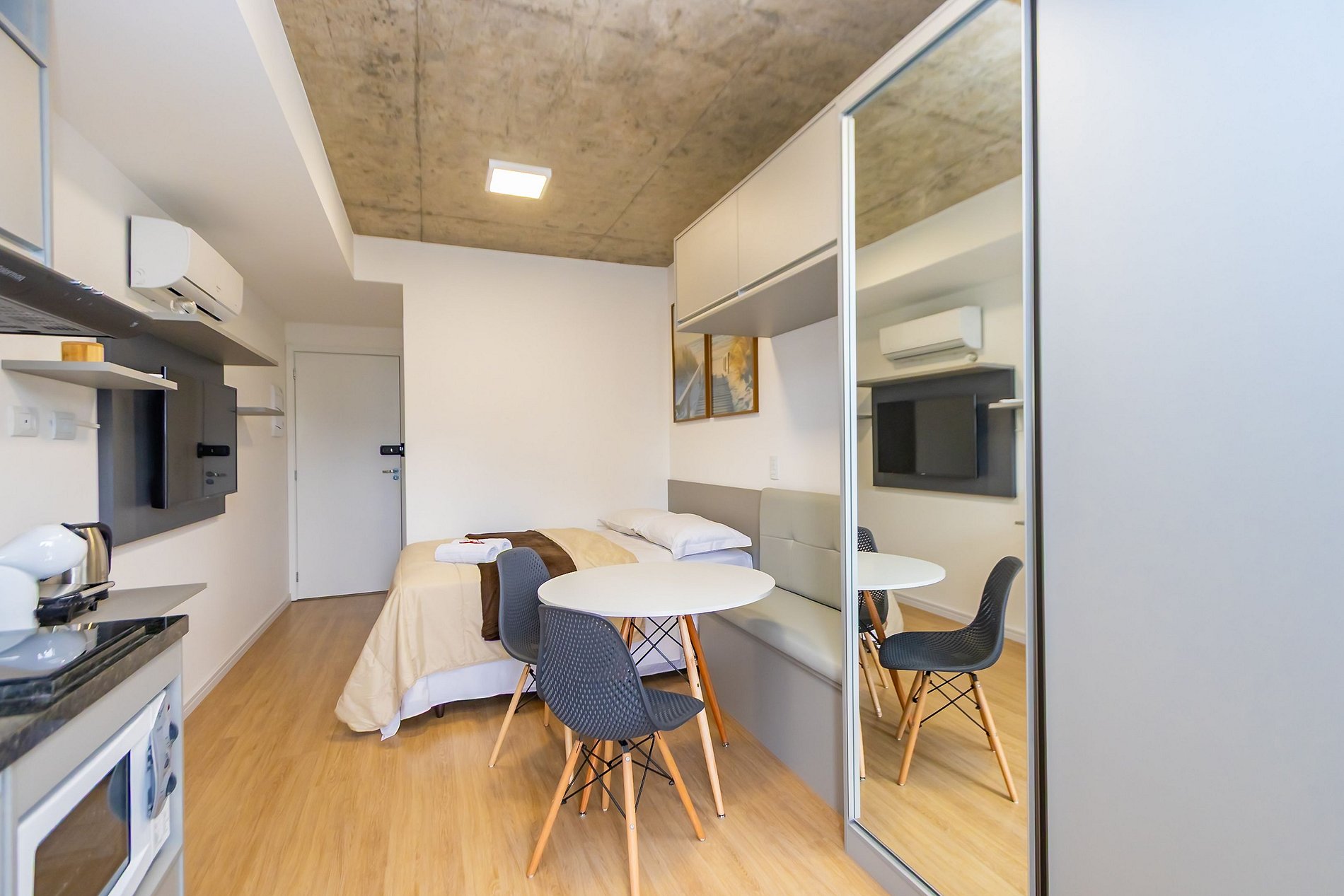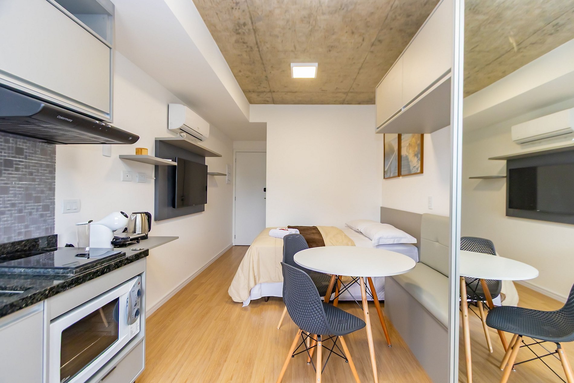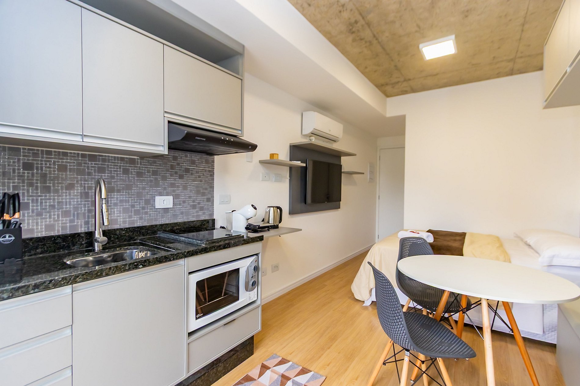 ⌂ Studio totalmente mobiliado que oferece as seguintes comodidades aos seus hóspedes: