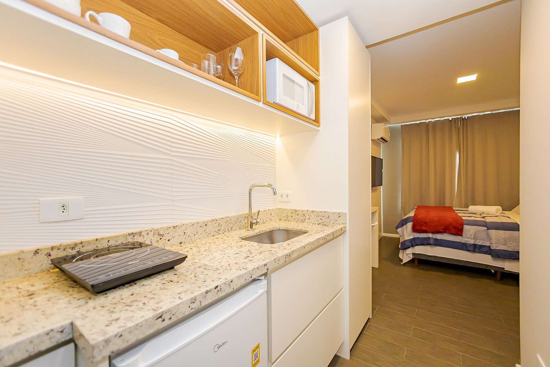 ⌂ Estúdio totalmente mobiliado que oferece as seguintes comodidades aos seus hospedes: