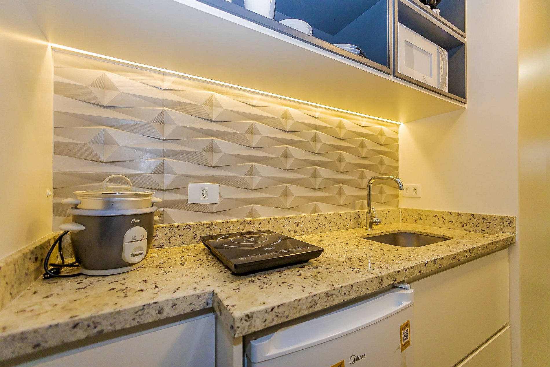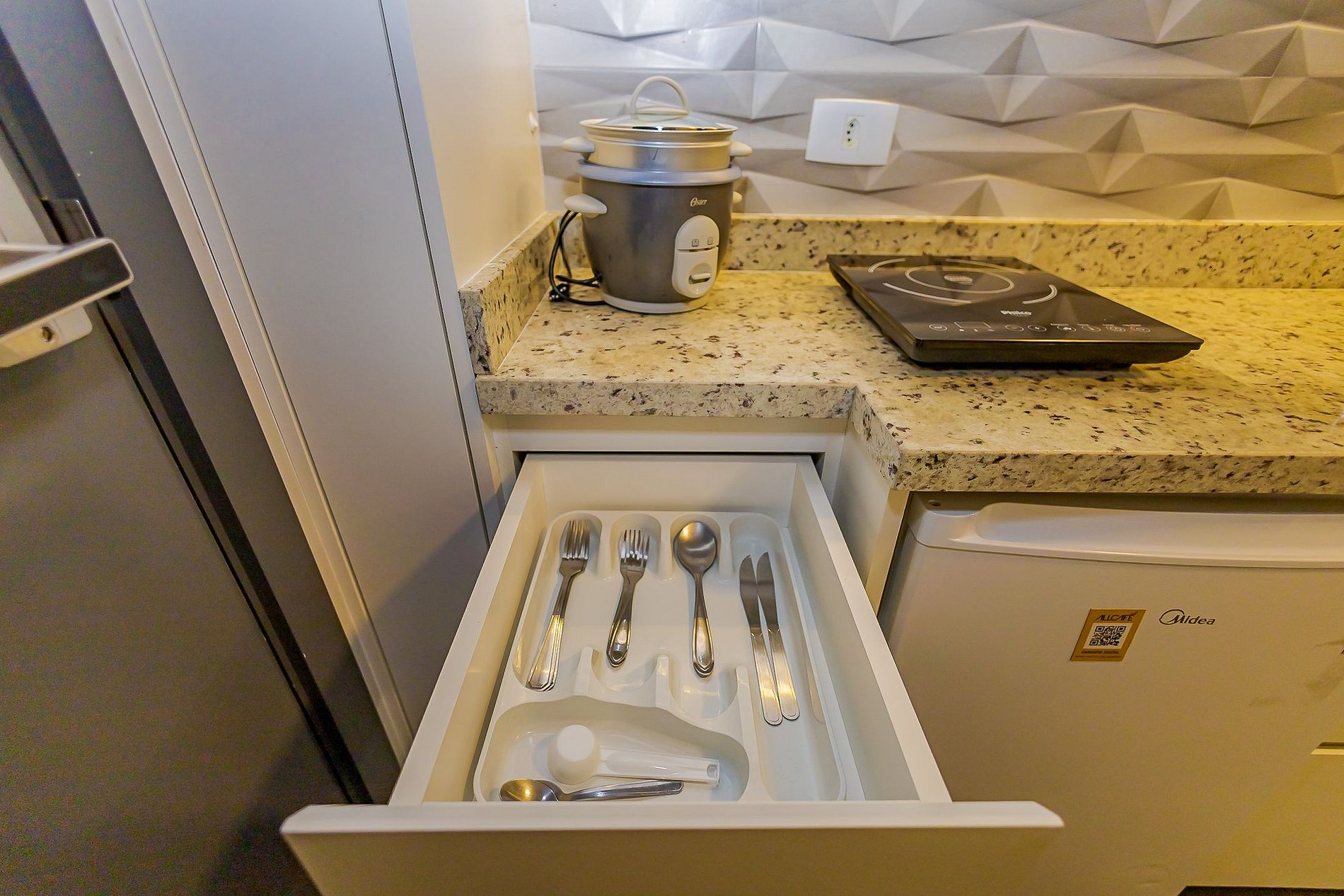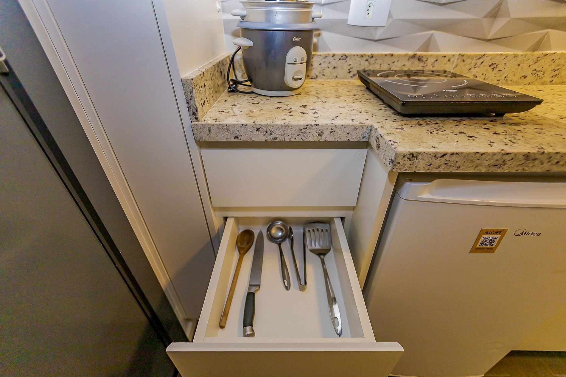 ⌂ Estúdio totalmente mobiliado que oferece as seguintes comodidades aos seus hospedes: