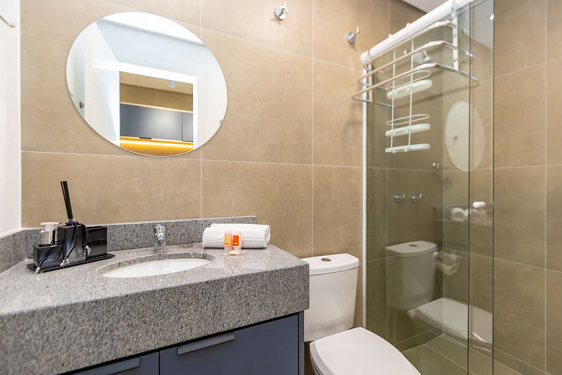 Durante a sua estadia não temos serviço de quarto e nem fazemos a reposição dos itens da sua unidade como: shampoo, condicionador, sabonete, papel higiênico, pano de prato, esponja e detergente de louça, além de pilhas do controle remoto, ar-condicionado e da fechadura eletrônica. A reposição destes itens é de responsabilidade do hóspede titular da reserva.