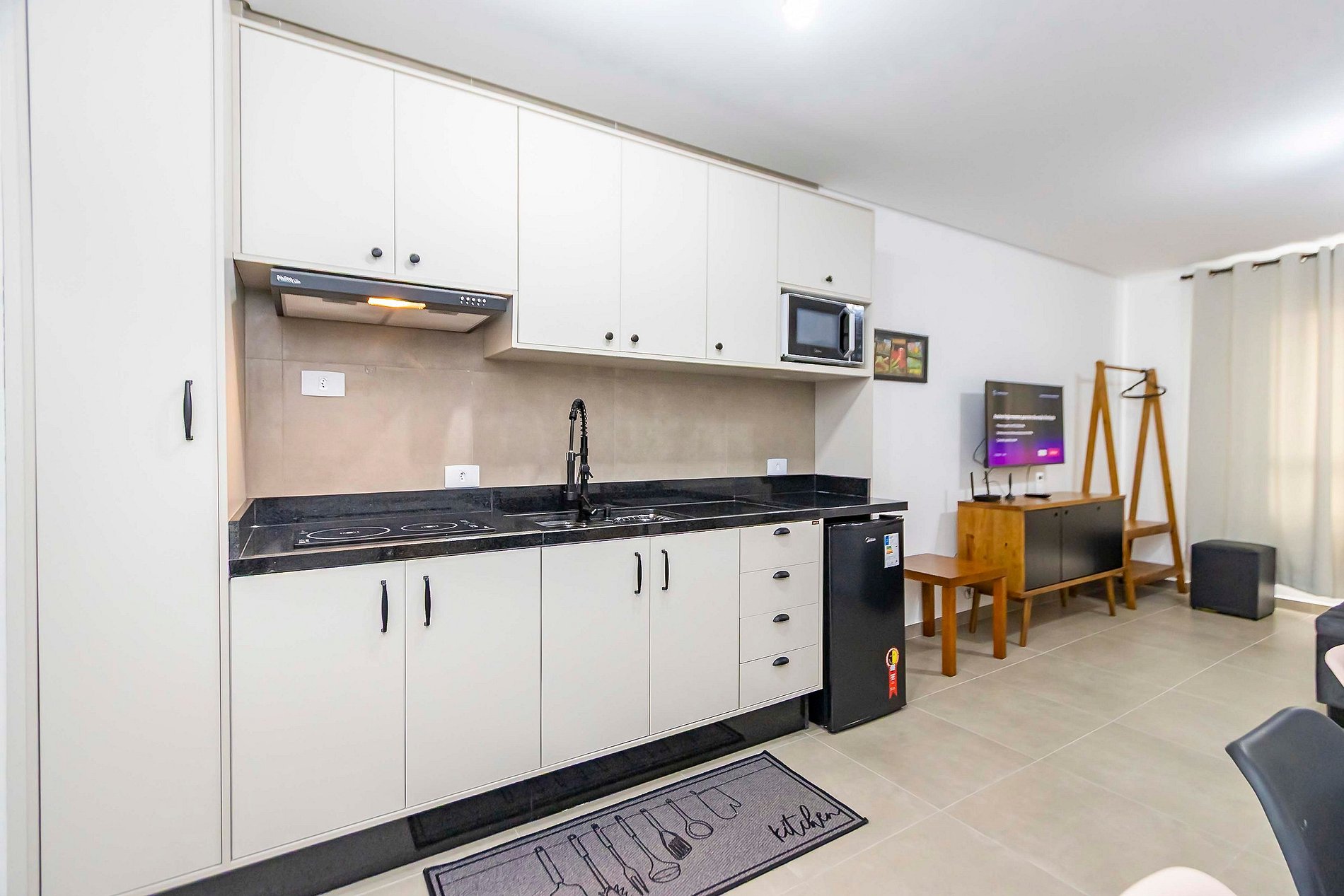 ⌂ Estúdio completo com 1 cama de casal e 1 cama auxiliar que oferece as seguintes comodidades aos seus hóspedes: