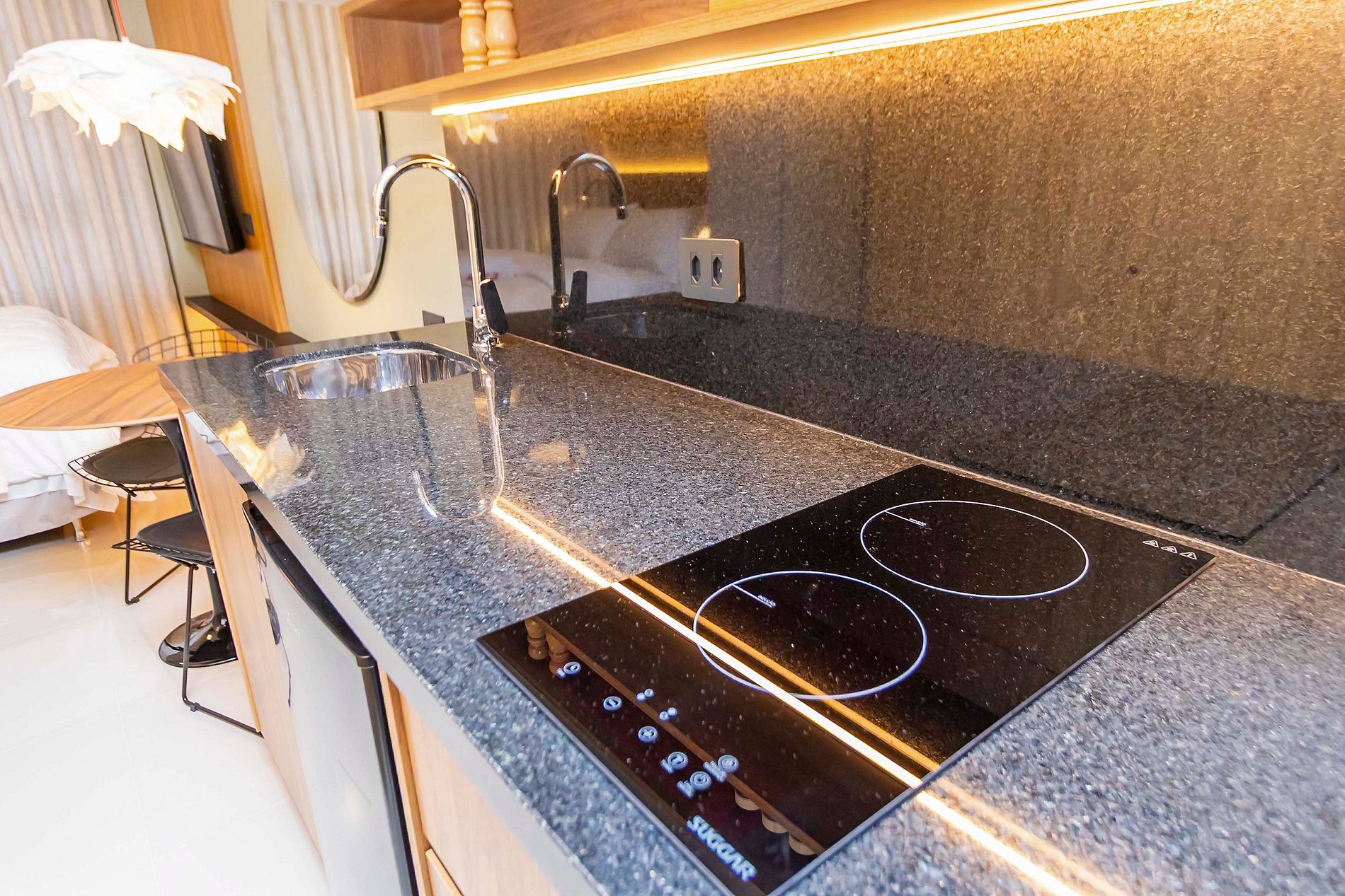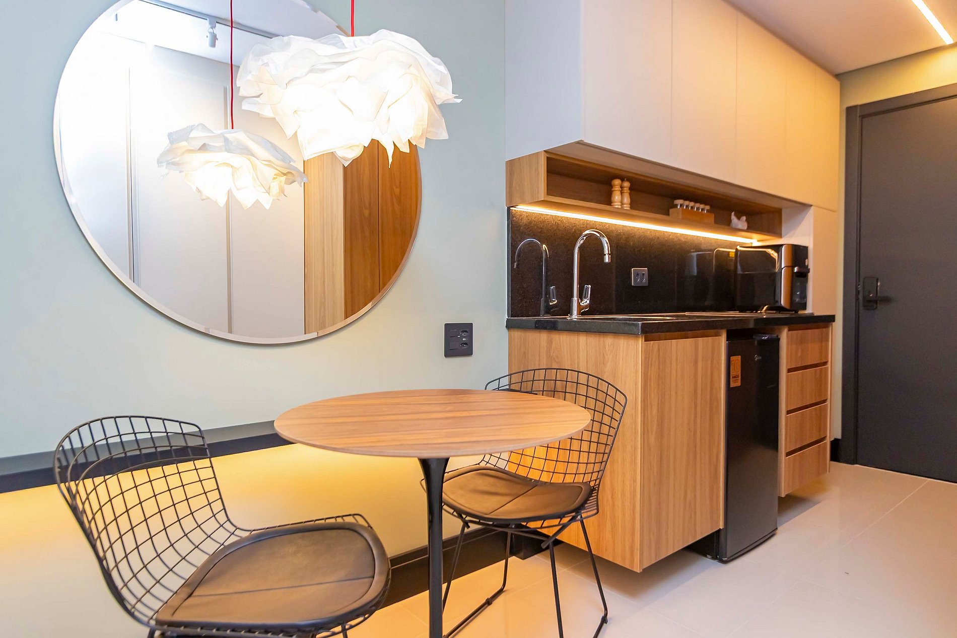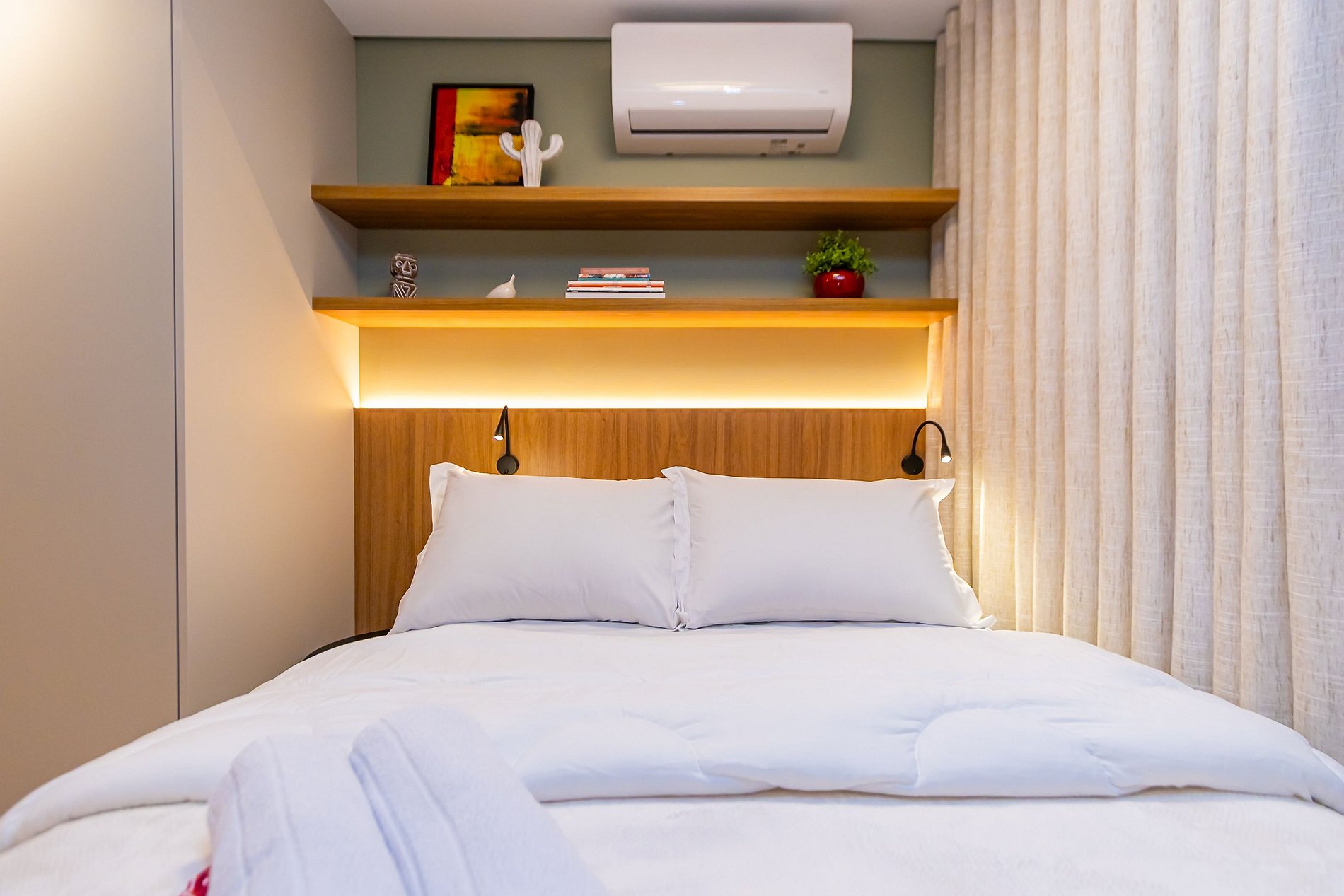 Studio ideal para até 2 pessoas, com decoração moderna, aconchegante e cuidadosamente planejada para proporcionar conforto e bem-estar. Localizado em um edifício novo, com estrutura completa e de alto padrão. Situado em uma ótima região, com fácil acesso a restaurantes, comércios, serviços e transporte. Uma excelente opção para quem busca praticidade, elegância e uma estadia agradável, com estilo e comodidade em cada detalhe.