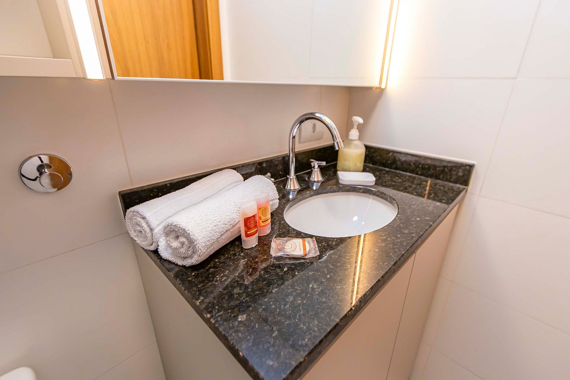 Durante a sua estadia não temos serviço de quarto e nem fazemos a reposição dos itens da sua unidade como: shampoo, condicionador, sabonete, papel higiênico, pano de prato, esponja e detergente de louça, além de pilhas do controle remoto, ar-condicionado e da fechadura eletrônica. A reposição destes itens é de responsabilidade do hóspede titular da reserva.