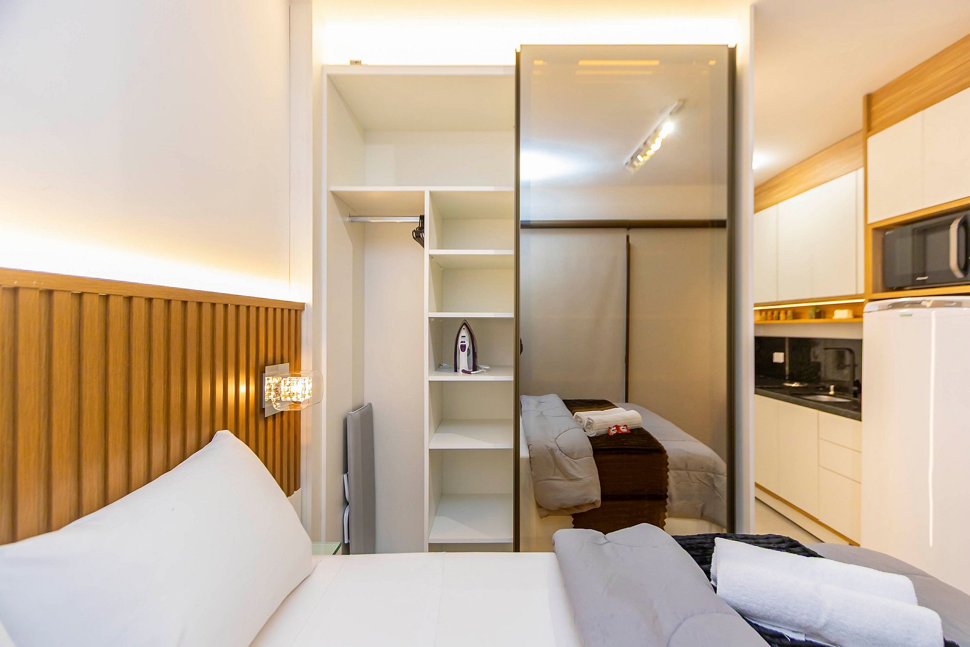 ⌂ Studio totalmente mobiliado que oferece as seguintes comodidades aos seus hóspedes: