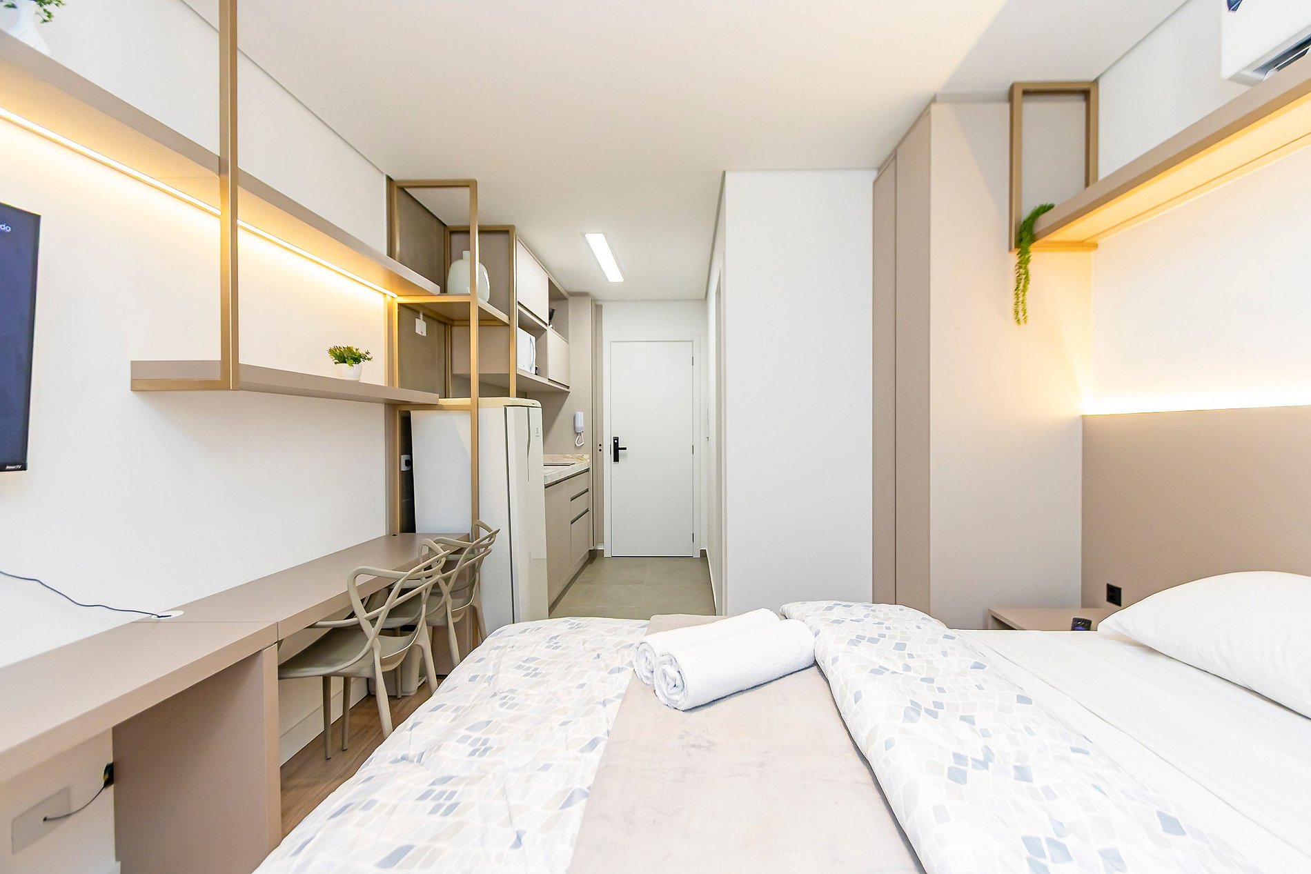 Studio super completo, ideal para até 2 pessoas, localizado em um bairro tranquilo e seguro, perfeito para descansar e aproveitar com conforto. O espaço é super completo, com cozinha equipada, cama confortável e ambiente moderno. O prédio é novo, com ótima estrutura e excelente padrão de qualidade. Ideal para quem busca praticidade, tranquilidade e uma estadia agradável em um ambiente acolhedor, com fácil acesso a diversas regiões da cidade.