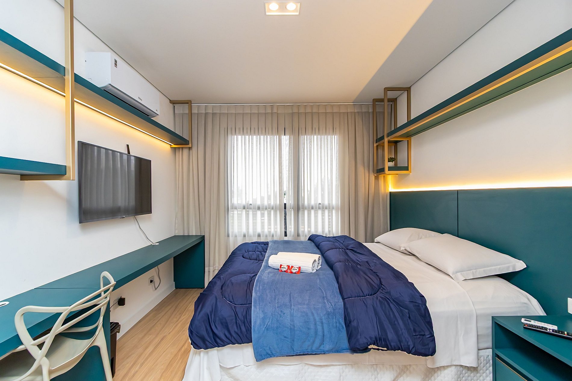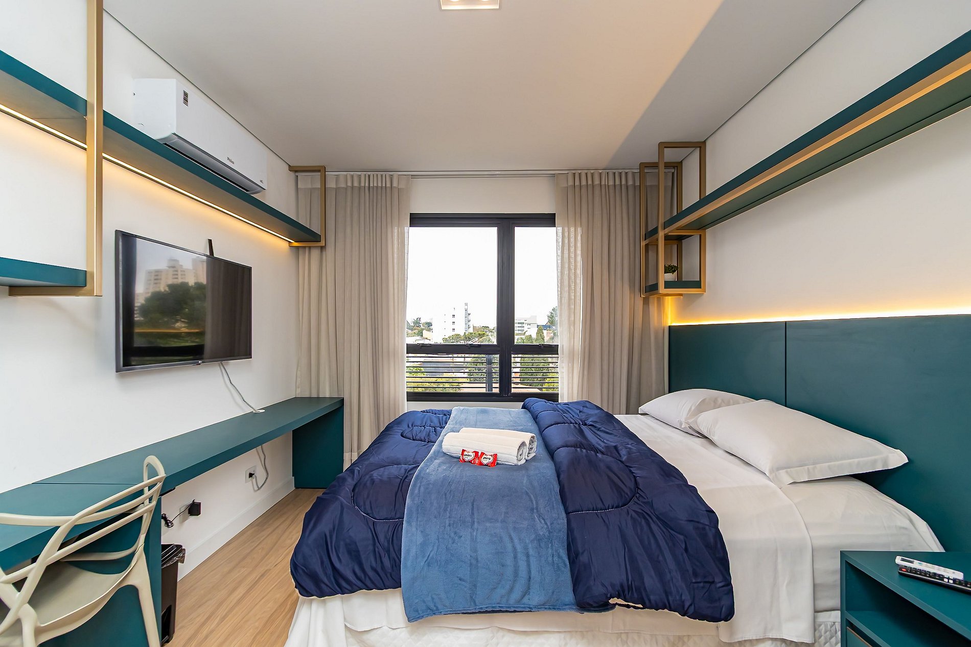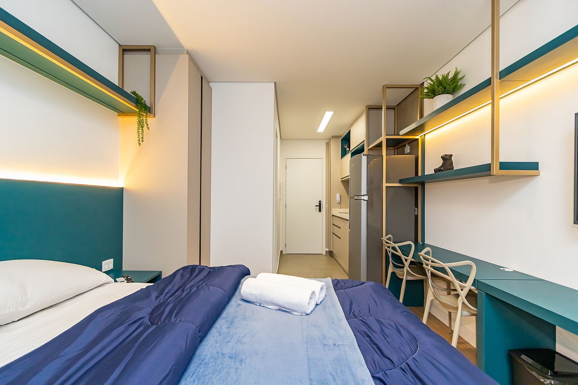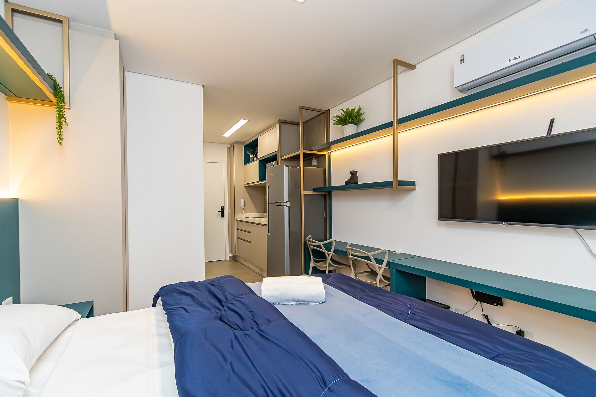 Studio super completo, ideal para até 2 pessoas, localizado em um bairro tranquilo e seguro, perfeito para descansar e aproveitar com conforto. O espaço é super completo, com cozinha equipada, cama confortável e ambiente moderno. O prédio é novo, com ótima estrutura e excelente padrão de qualidade. Ideal para quem busca praticidade, tranquilidade e uma estadia agradável em um ambiente acolhedor, com fácil acesso a diversas regiões da cidade.