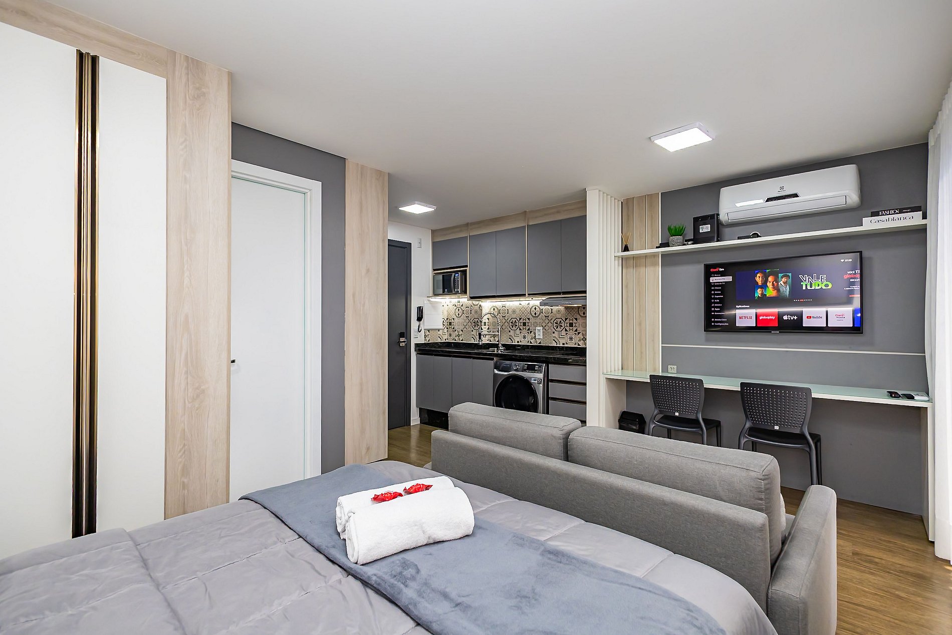 Studio espaçoso e extremamente completo, ideal para até 4 pessoas, em região nobre de Curitiba, ao lado do Shopping Curitiba. Moderno, aconchegante e equipado com tudo o que você precisa, o espaço é perfeito tanto para lazer quanto para trabalho. A localização privilegiada garante fácil acesso a restaurantes, mercados, transporte público e aos principais pontos da cidade, oferecendo praticidade, conforto e a oportunidade de aproveitar Curitiba com toda comodidade.