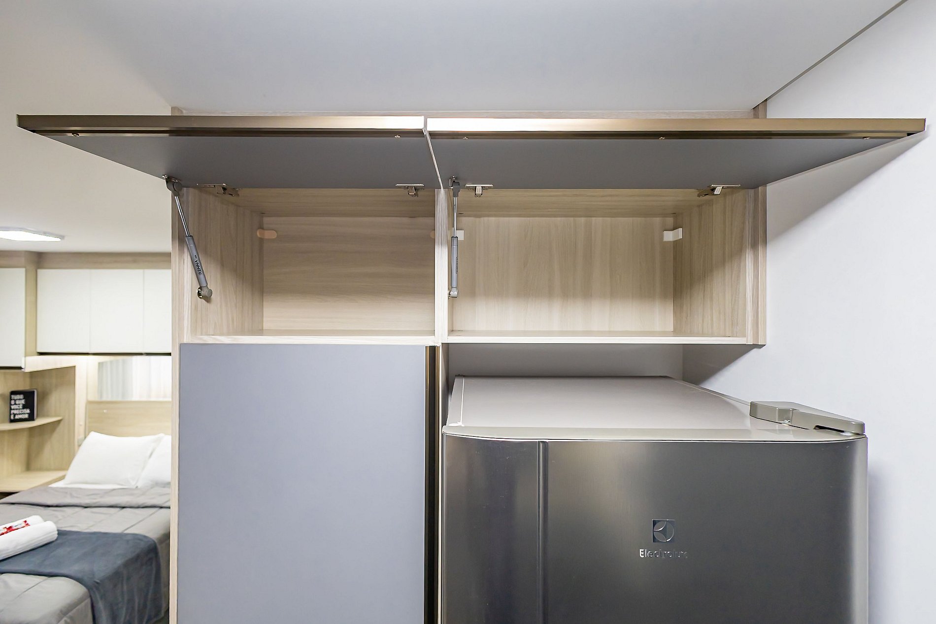 ⌂ Studio totalmente mobiliado que oferece as seguintes comodidades: