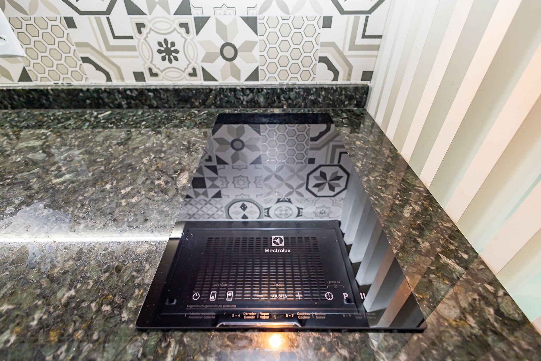 • O apartamento possui fechadura eletrônica, para aparecer o teclado numérico encoste a mão na fechadura, digite a senha e aperte o botão do cadeado aberto;