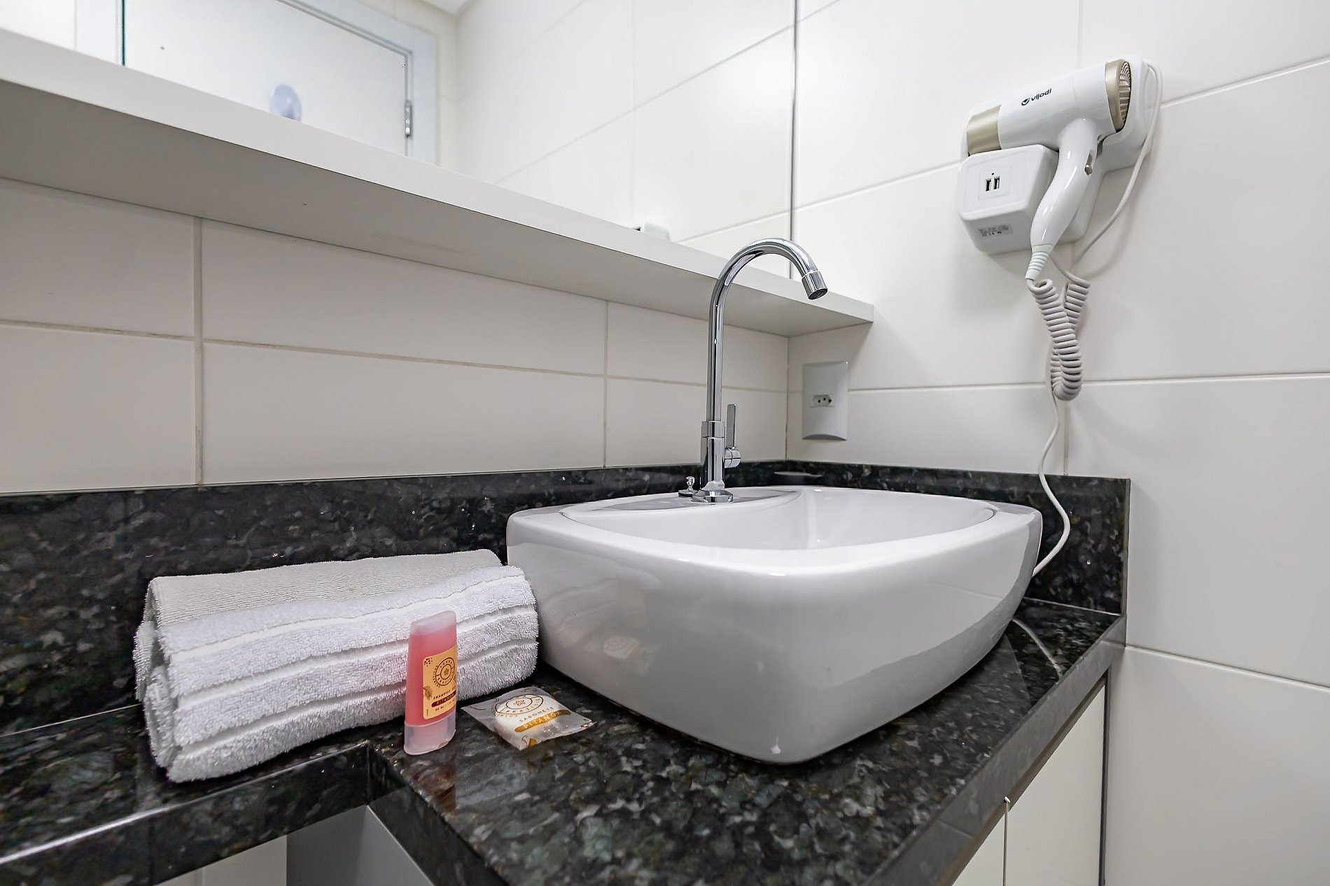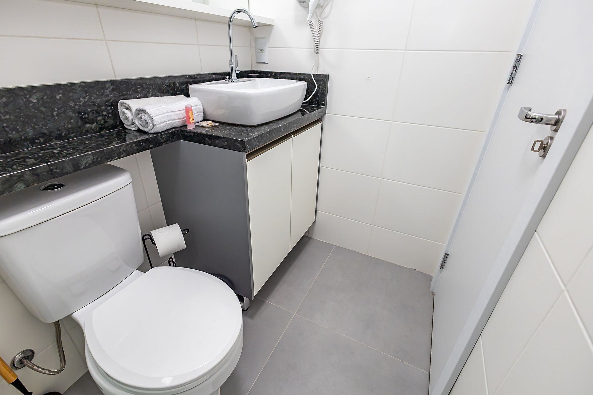 Durante a sua estadia não temos serviço de quarto e nem fazemos a reposição dos itens da sua unidade como: shampoo, condicionador, sabonete, papel higiênico, pano de prato, esponja e detergente de louça, além de pilhas do controle remoto, ar-condicionado e da fechadura eletrônica. A reposição destes itens é de responsabilidade do hóspede titular da reserva.