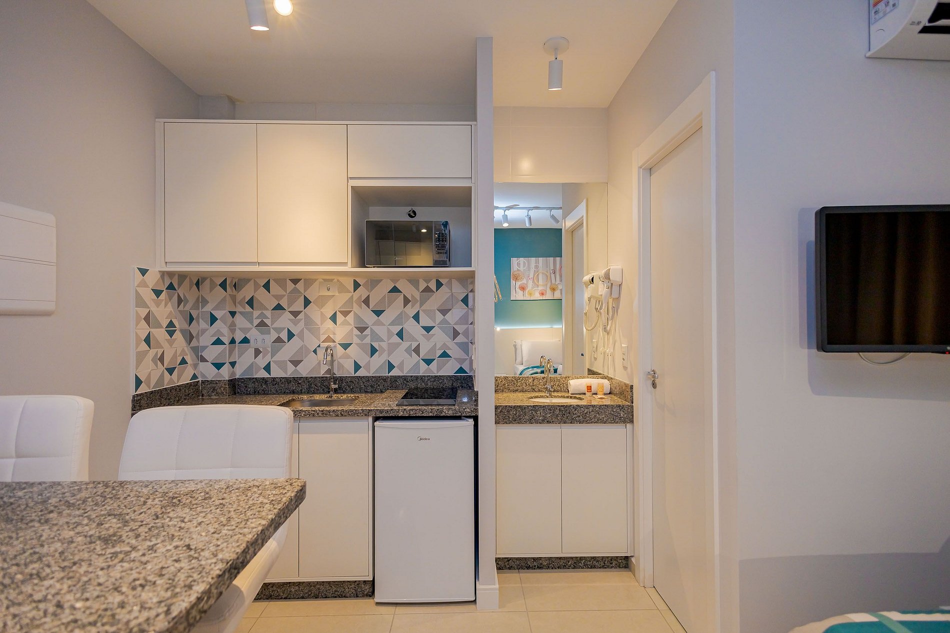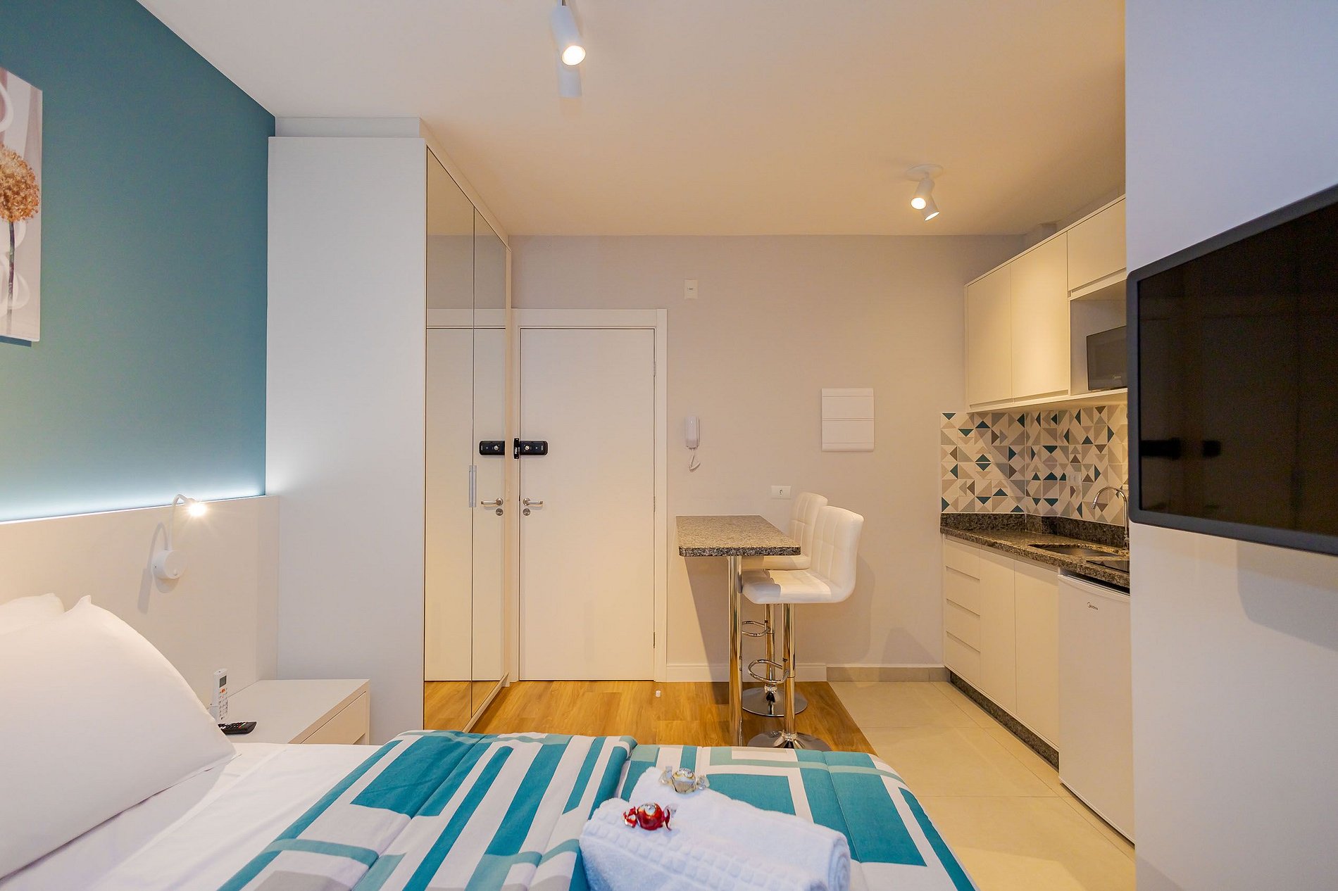 ⌂ Estúdio totalmente mobiliado que oferece as seguintes comodidades aos seus hóspedes: