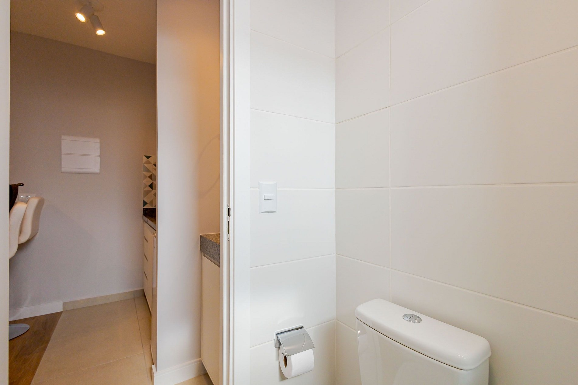 • O apartamento possui fechadura eletrônica, para aparecer o teclado numérico encoste a mão na fechadura, digite a senha e aperte o botão do cadeado aberto;