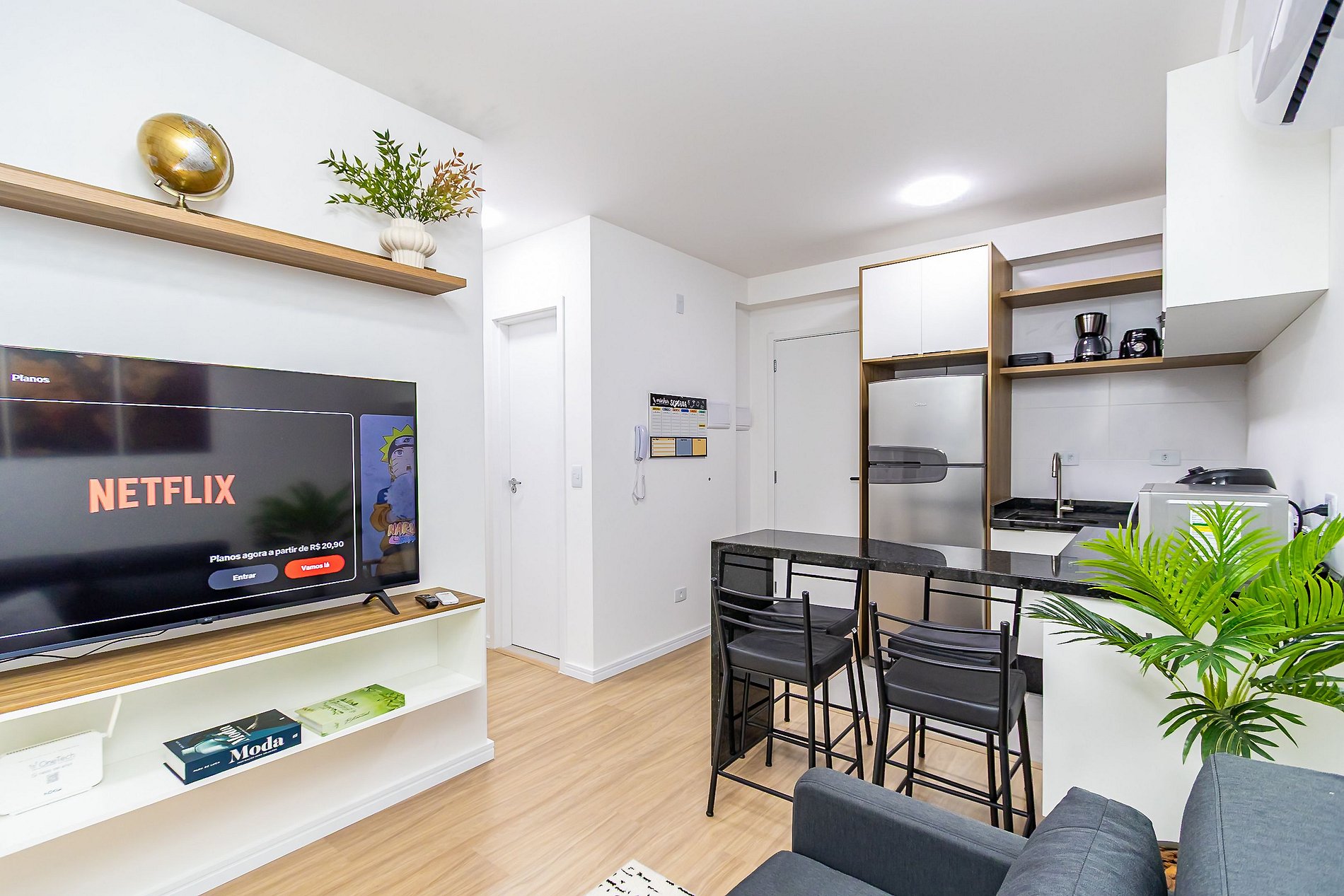 Apartamento de 2 quartos super completo, localizado em um prédio novo no centro de Curitiba. Moderno e aconchegante, oferece todo o conforto necessário para estadias curtas ou longas. A localização central garante fácil acesso a pontos turísticos, restaurantes, mercados e transporte público. O condomínio conta com infraestrutura completa, incluindo piscina, academia e áreas de lazer, proporcionando comodidade, praticidade e uma experiência única na cidade.
