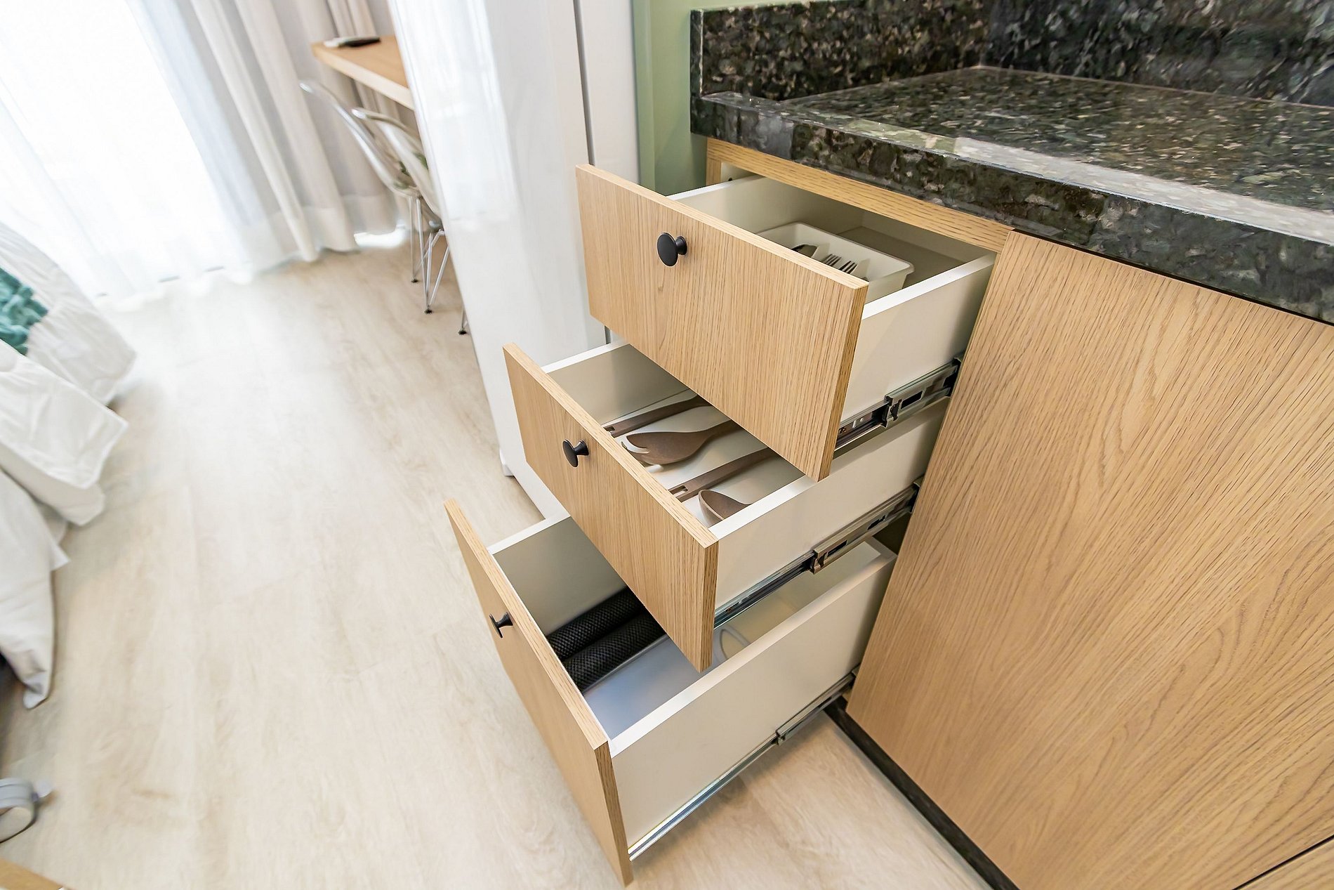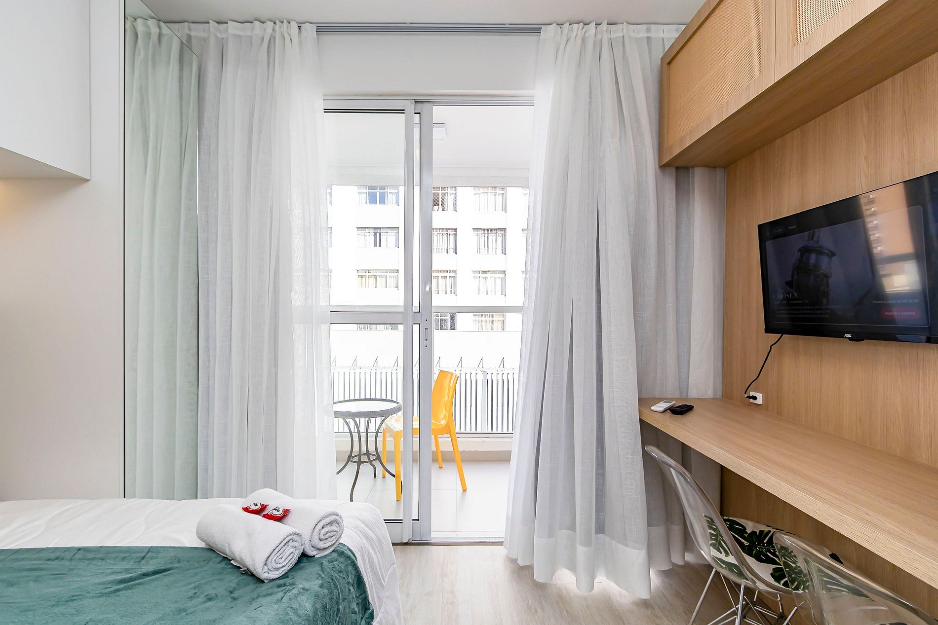 ⌂ Studio totalmente mobiliado que oferece as seguintes comodidades aos seus hóspedes: