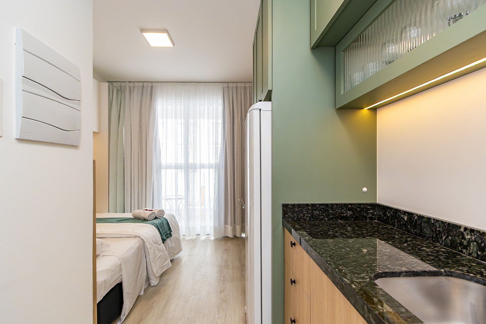 Studio moderno e funcional, localizado em um prédio novo no centro da cidade, ideal para até 2 pessoas. Compacto, mas super bem equipado, garante conforto e praticidade durante sua estadia. A localização central oferece fácil acesso a qualquer ponto de Curitiba, seja para turismo, trabalho ou estudos, com transporte público, restaurantes, mercados e atrações a poucos passos. Um espaço aconchegante e prático para aproveitar o melhor da cidade com comodidade.