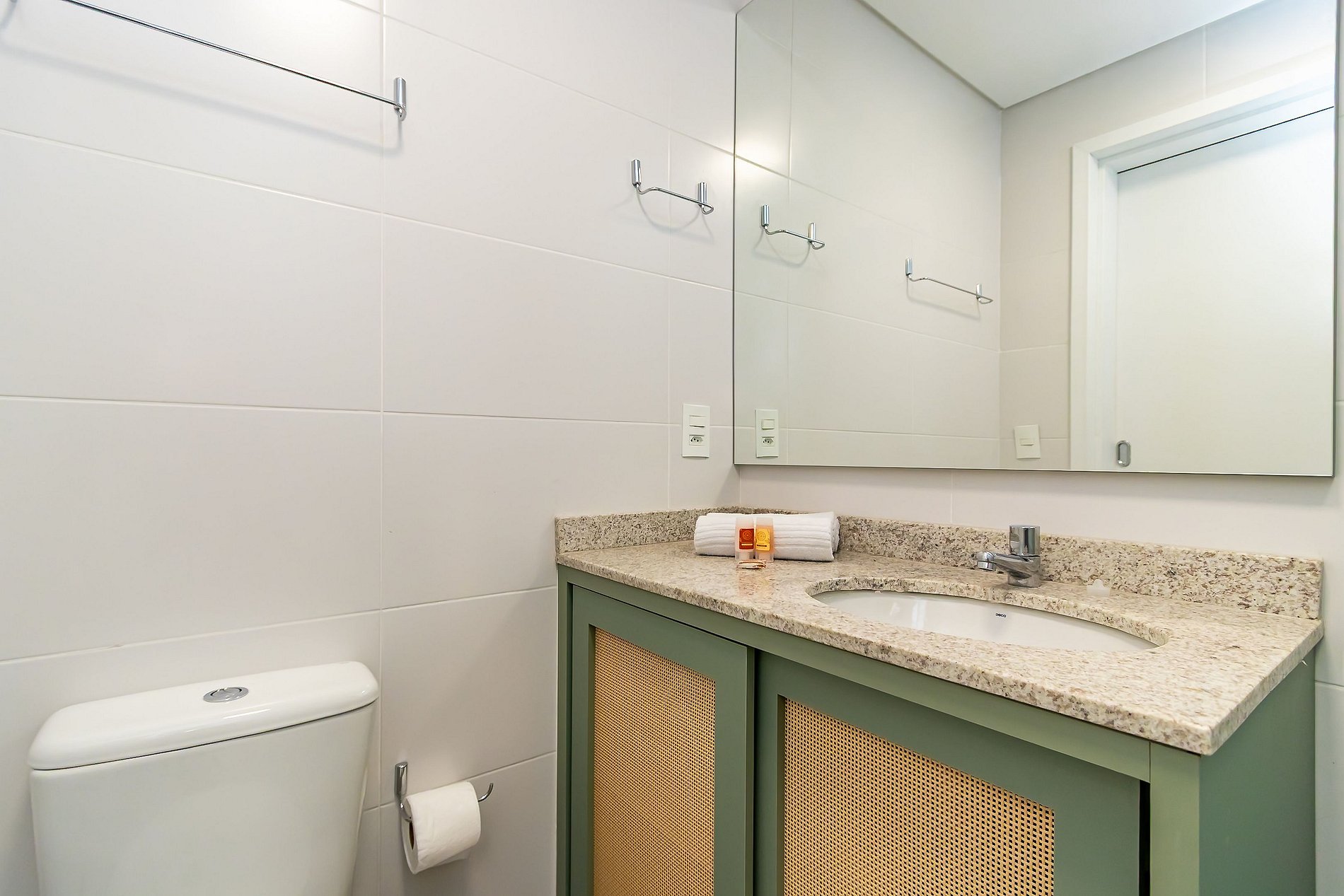 Durante a sua estadia não temos serviço de quarto e nem fazemos a reposição dos itens da sua unidade como: shampoo, condicionador, sabonete, papel higiênico, pano de prato, esponja e detergente de louça, além de pilhas do controle remoto, ar-condicionado e da fechadura eletrônica. A reposição destes itens é de responsabilidade do hóspede titular da reserva.