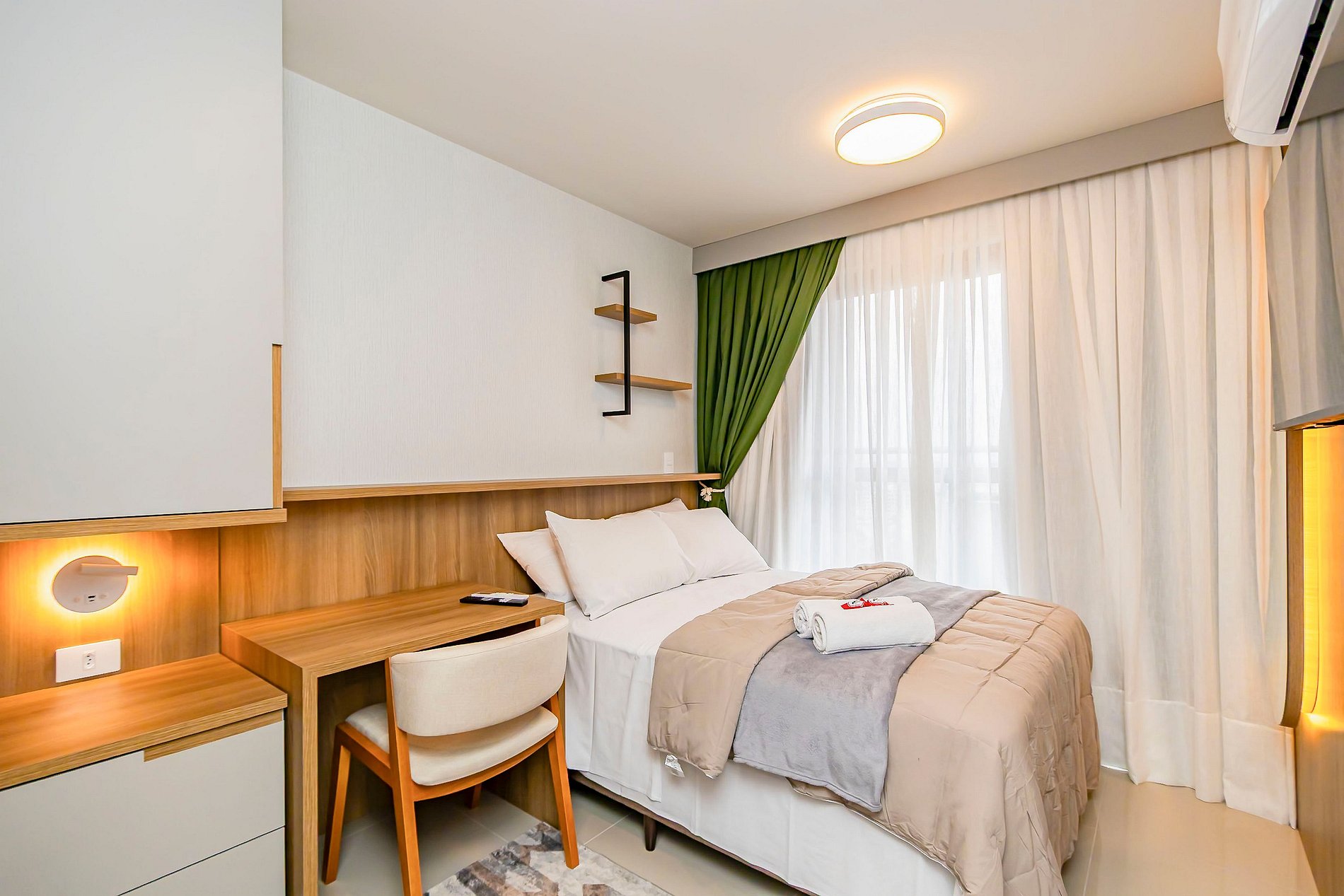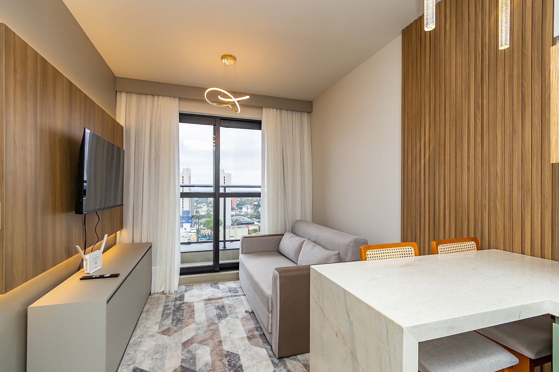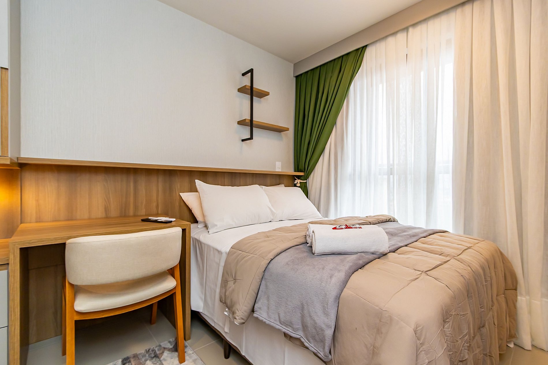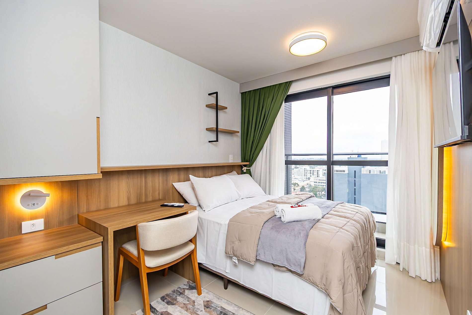 Apartamento novo de 1 quarto, finamente decorado e super completo, ideal para até 4 pessoas. O espaço foi planejado para oferecer conforto e praticidade, com ambientes modernos e aconchegantes. Conta com cozinha equipada, sala com sofá-cama e todos os itens necessários para uma estadia agradável. Além disso, dispõe de vaga de garagem exclusiva, garantindo ainda mais comodidade. Perfeito para quem busca bem-estar, estilo e conveniência em Curitiba.