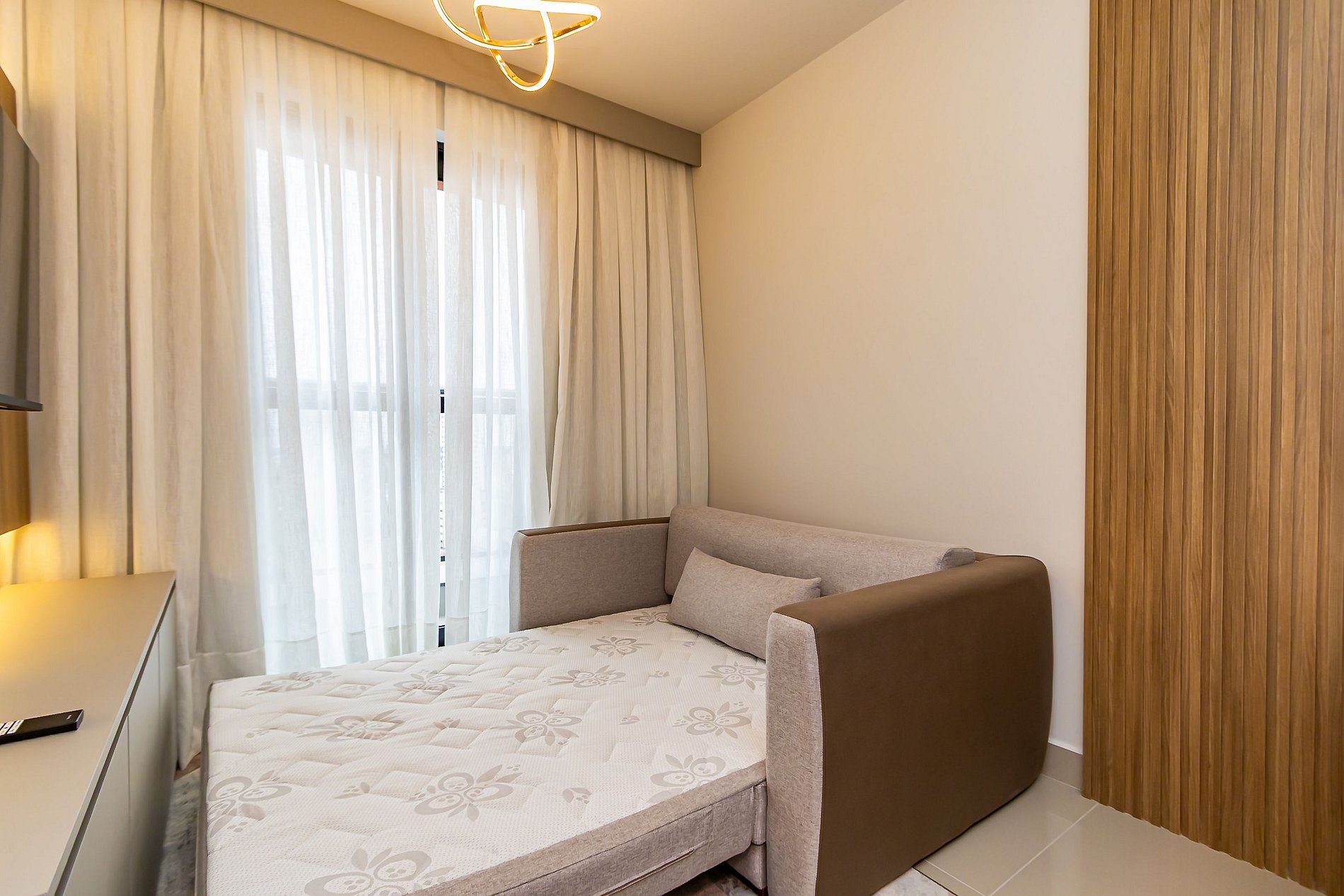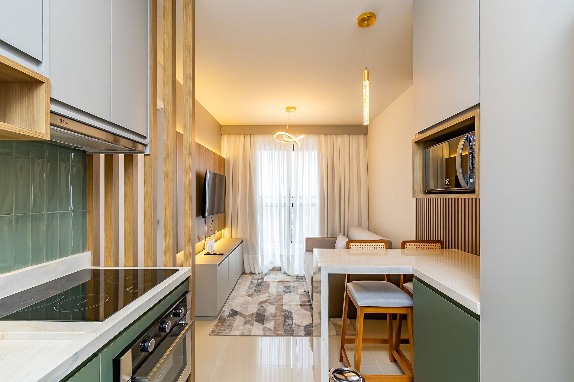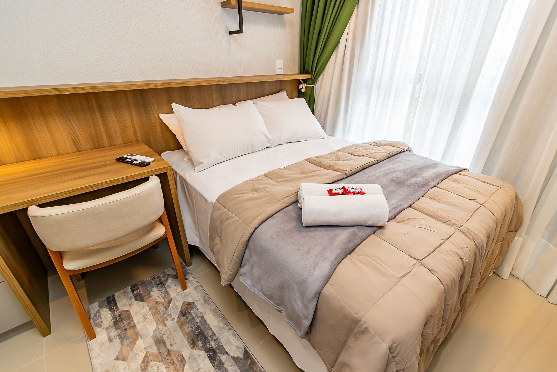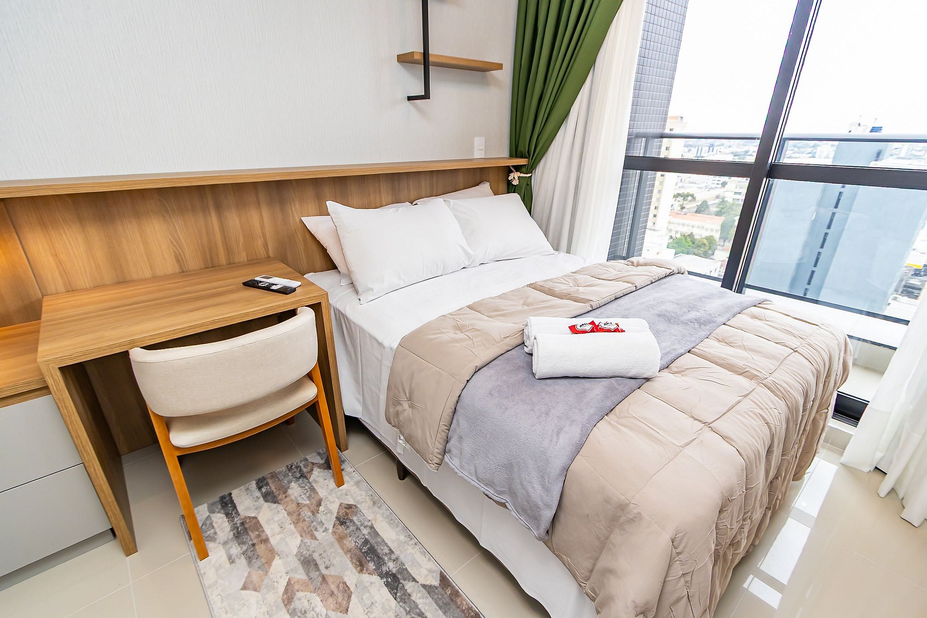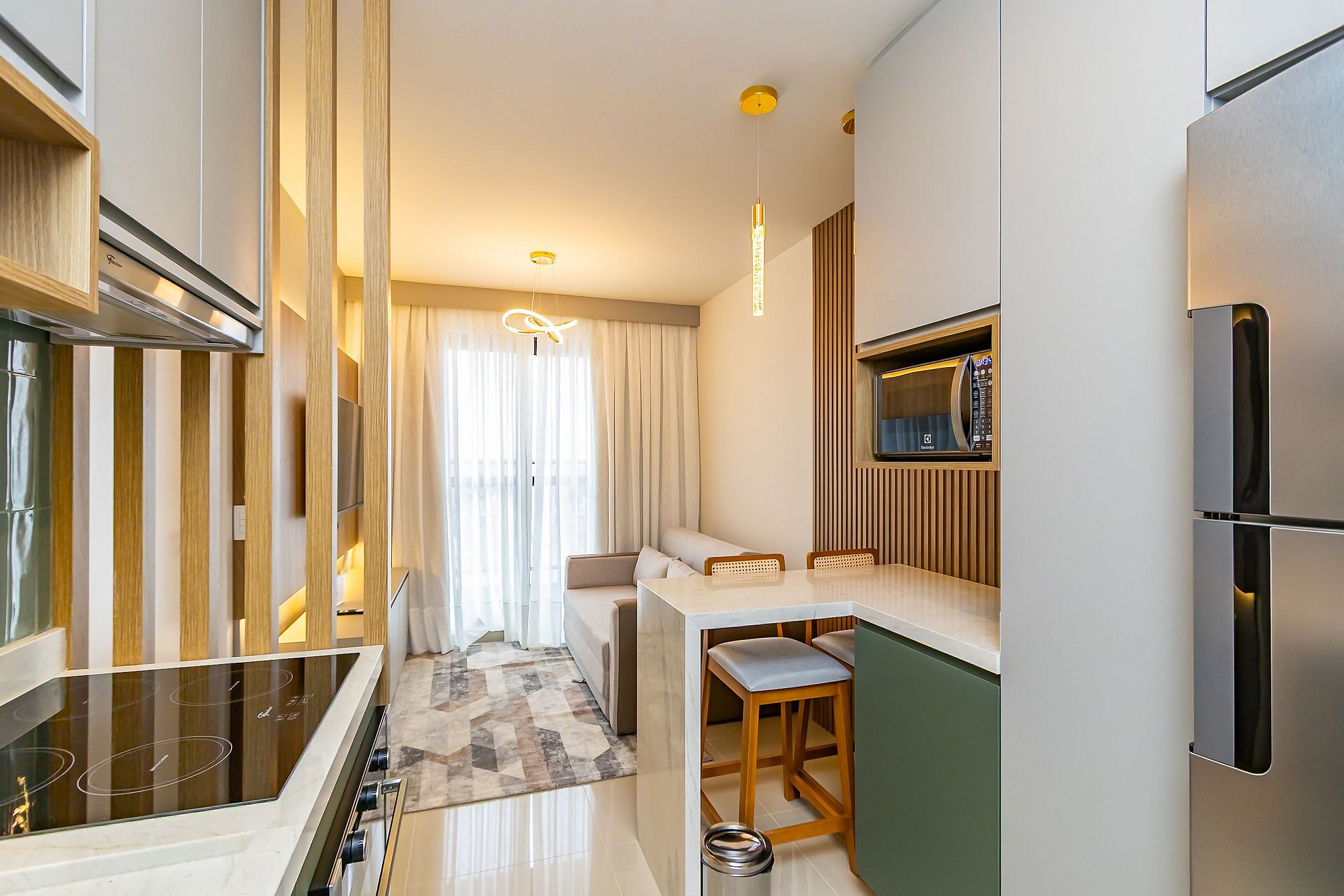 Apartamento novo de 1 quarto, finamente decorado e super completo, ideal para até 4 pessoas. O espaço foi planejado para oferecer conforto e praticidade, com ambientes modernos e aconchegantes. Conta com cozinha equipada, sala com sofá-cama e todos os itens necessários para uma estadia agradável. Além disso, dispõe de vaga de garagem exclusiva, garantindo ainda mais comodidade. Perfeito para quem busca bem-estar, estilo e conveniência em Curitiba.