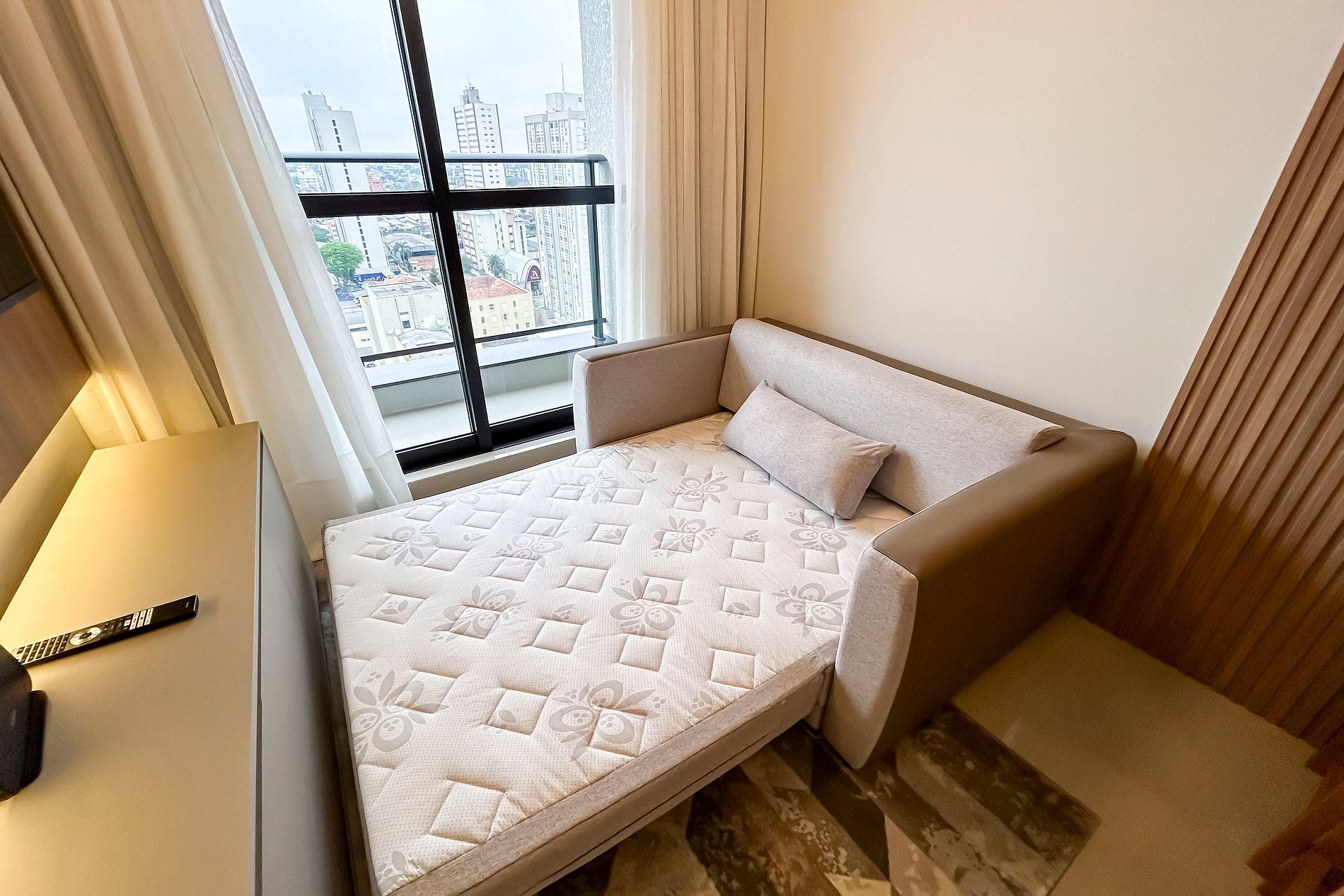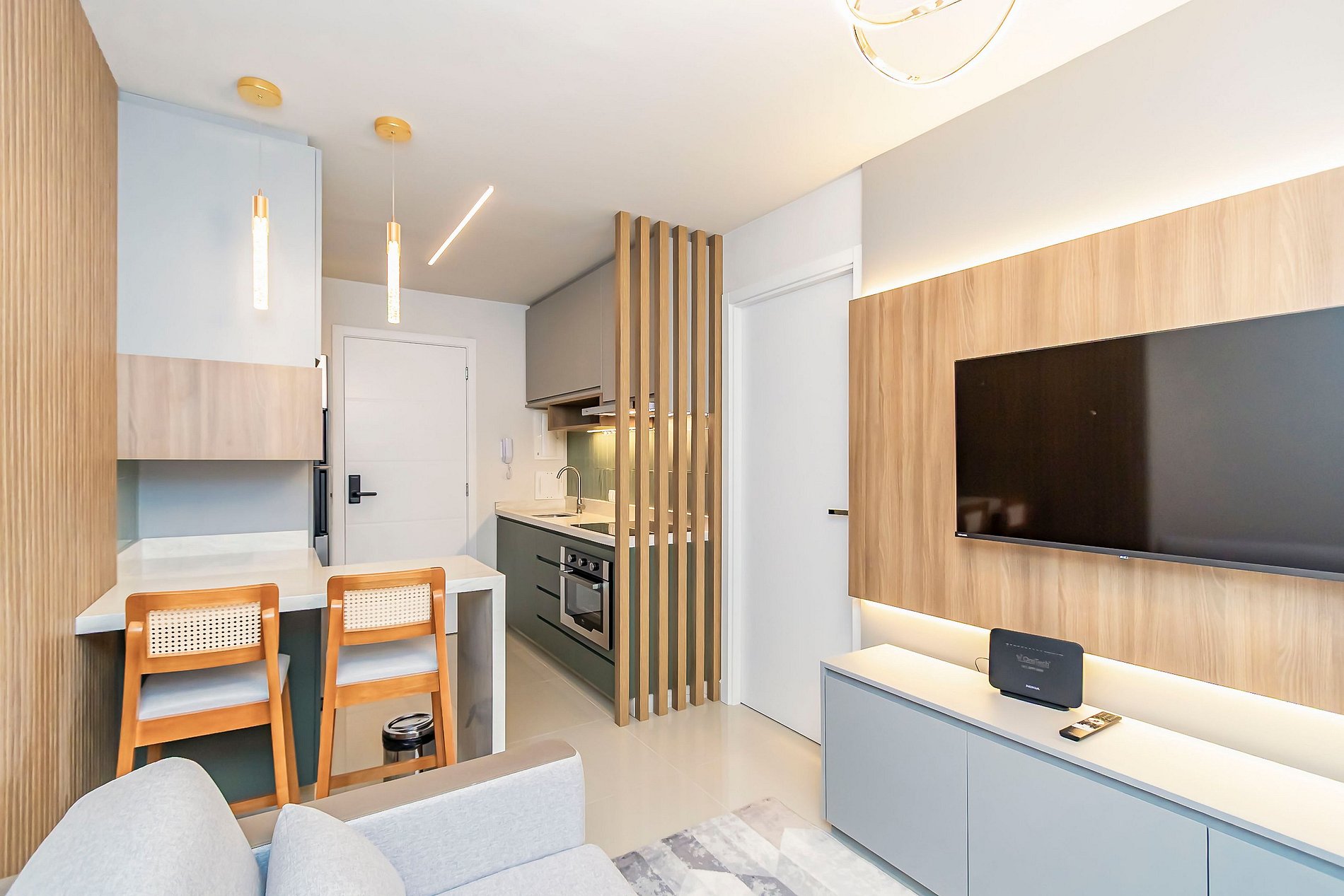 Apartamento novo de 1 quarto, finamente decorado e super completo, ideal para até 4 pessoas. O espaço foi planejado para oferecer conforto e praticidade, com ambientes modernos e aconchegantes. Conta com cozinha equipada, sala com sofá-cama e todos os itens necessários para uma estadia agradável. Além disso, dispõe de vaga de garagem exclusiva, garantindo ainda mais comodidade. Perfeito para quem busca bem-estar, estilo e conveniência em Curitiba.