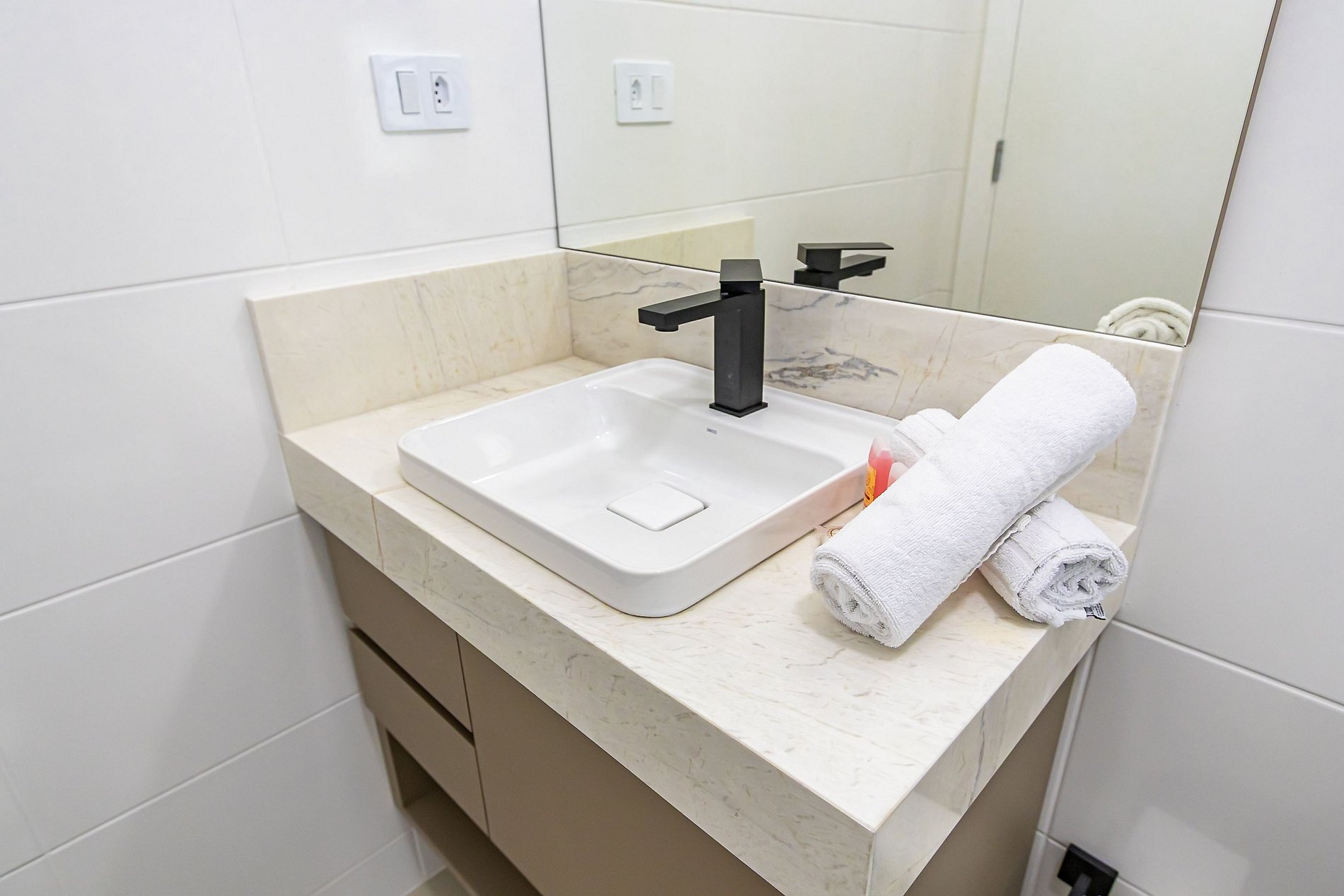 Durante a sua estadia não temos serviço de quarto e nem fazemos a reposição dos itens da sua unidade como: shampoo, condicionador, sabonete, papel higiênico, pano de prato, esponja e detergente de louça, além de pilhas do controle remoto, ar-condicionado e da fechadura eletrônica. A reposição destes itens é de responsabilidade do hóspede titular da reserva.