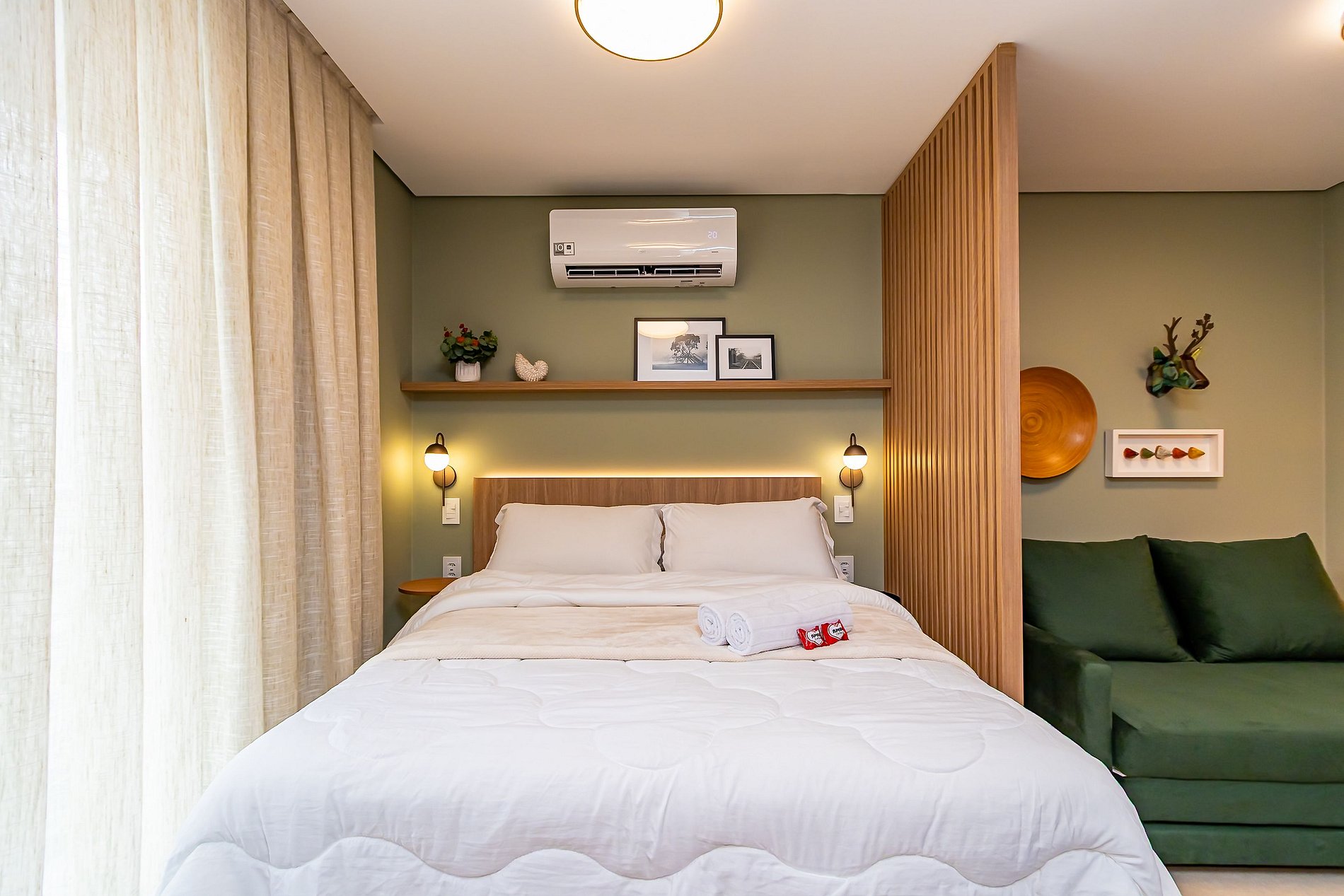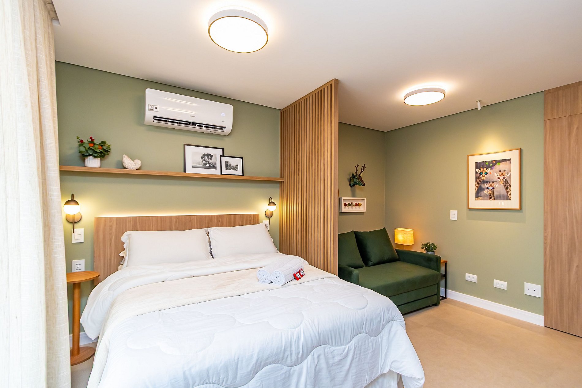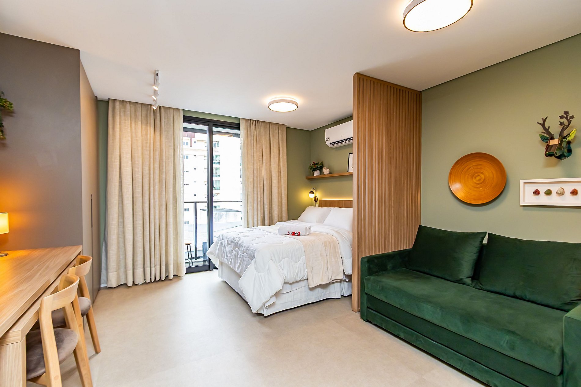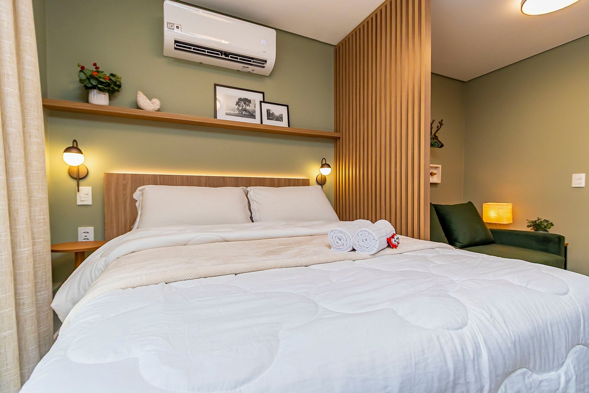 Studio premium, moderno e super bem decorado, ideal para acomodar até 4 pessoas com todo conforto. O espaço é completo e funcional, planejado para oferecer praticidade e bem-estar em cada detalhe. Localizado em um condomínio novo e sofisticado, que conta com infraestrutura completa de lazer e segurança. A região é excelente, próxima a mercados, cafés, restaurantes e com fácil acesso a qualquer ponto da cidade, garantindo uma estadia agradável e conveniente.