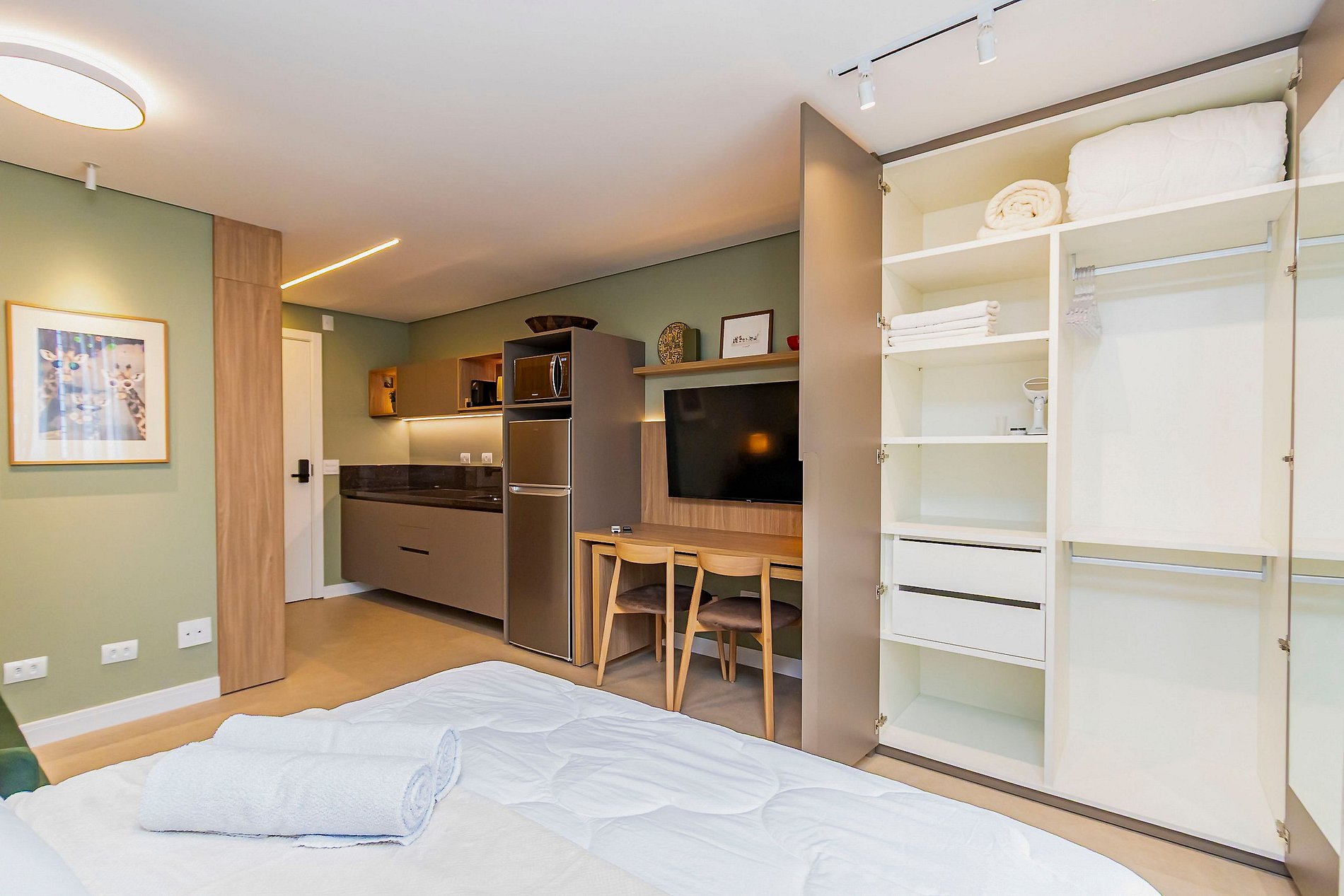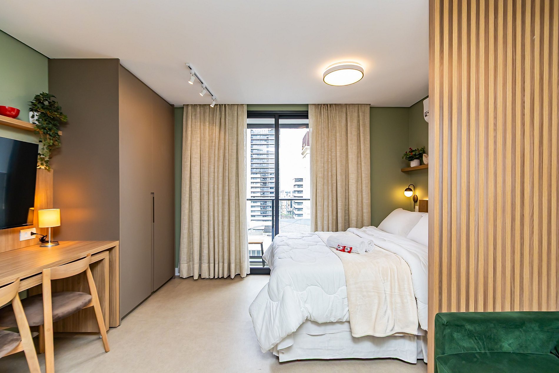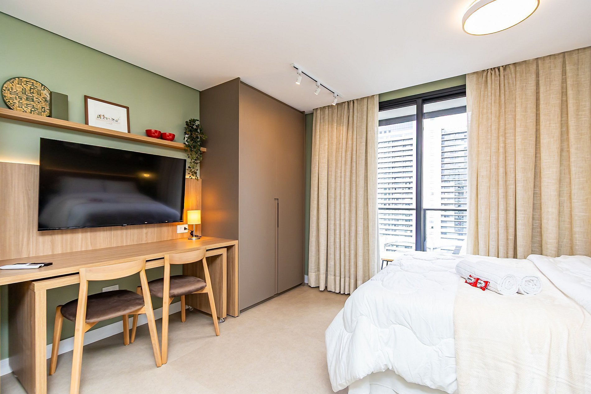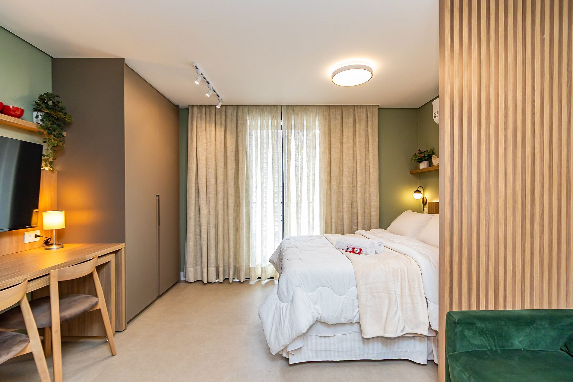 Studio premium, moderno e super bem decorado, ideal para acomodar até 4 pessoas com todo conforto. O espaço é completo e funcional, planejado para oferecer praticidade e bem-estar em cada detalhe. Localizado em um condomínio novo e sofisticado, que conta com infraestrutura completa de lazer e segurança. A região é excelente, próxima a mercados, cafés, restaurantes e com fácil acesso a qualquer ponto da cidade, garantindo uma estadia agradável e conveniente.