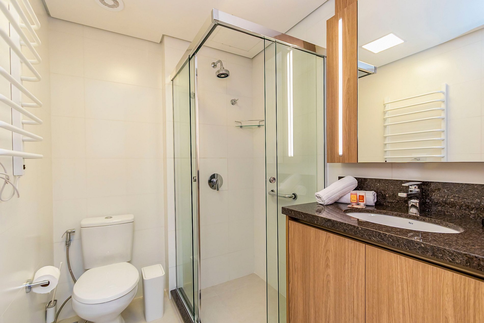 Durante a sua estadia não temos serviço de quarto e nem fazemos a reposição dos itens da sua unidade como: shampoo, condicionador, sabonete, papel higiênico, pano de prato, esponja e detergente de louça, além de pilhas do controle remoto, ar-condicionado e da fechadura eletrônica. A reposição destes itens é de responsabilidade do hóspede titular da reserva.