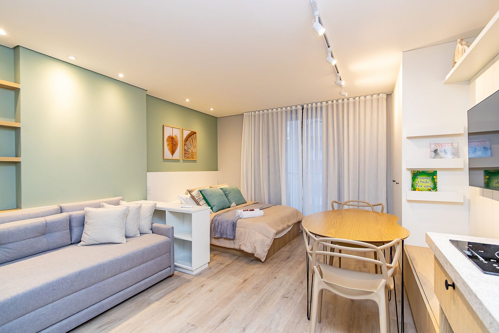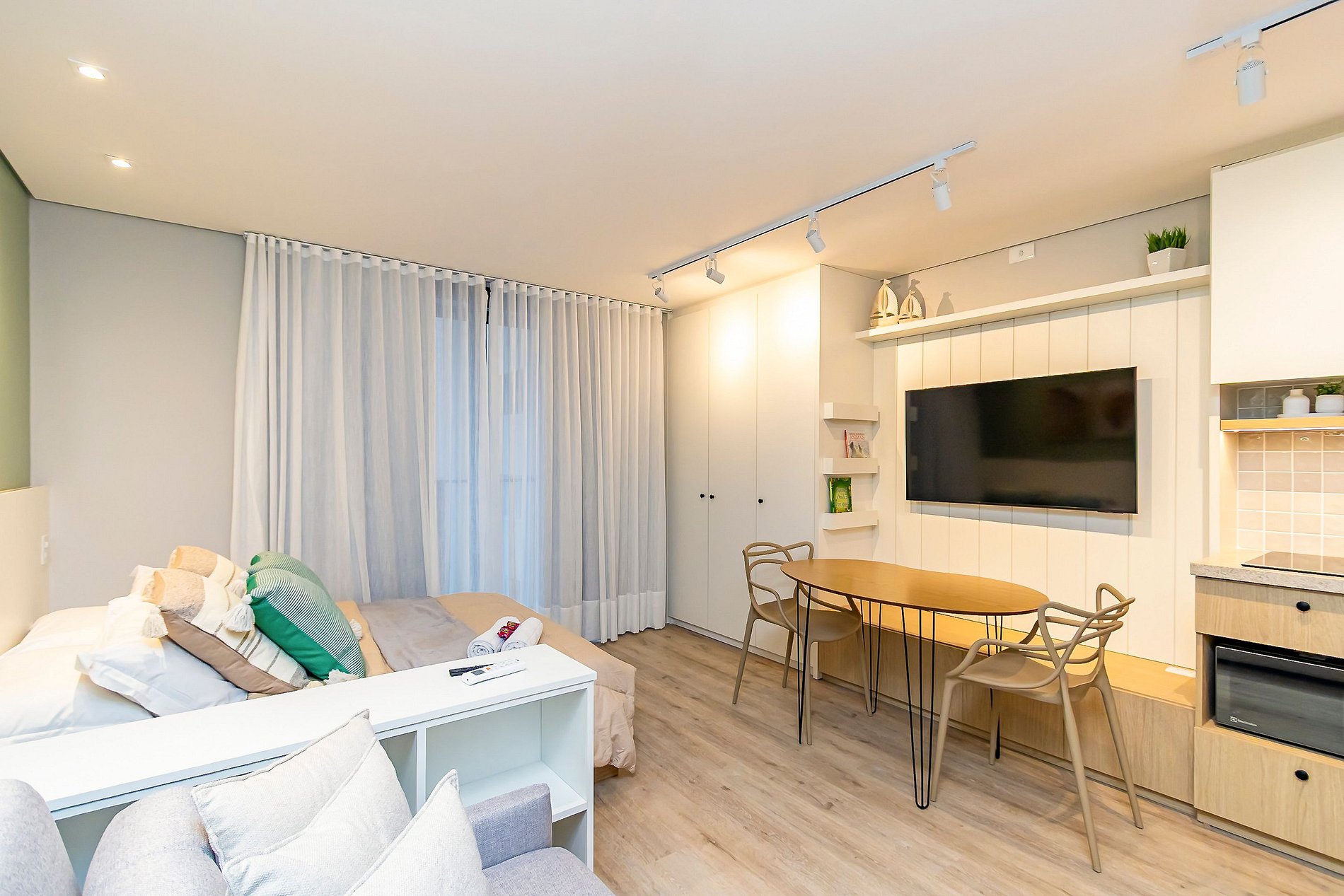 ⌂ Studio totalmente mobiliado que oferece as seguintes comodidades aos seus hóspedes: