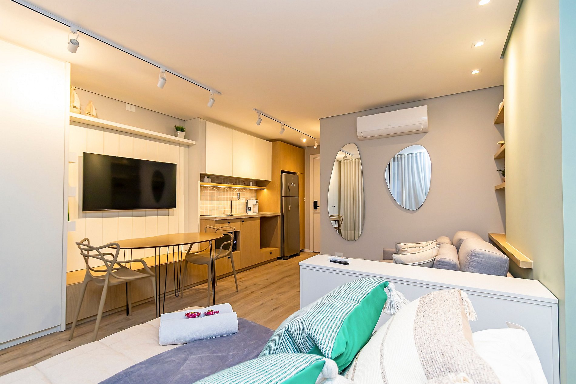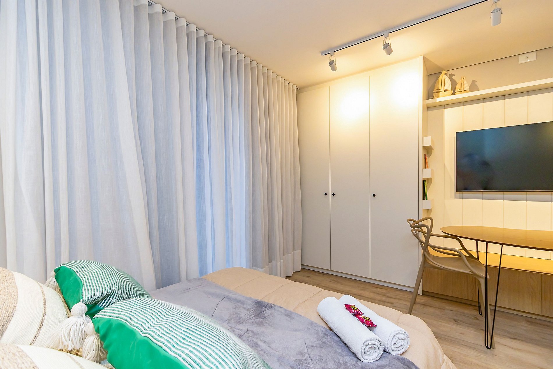 Studio premium no condomínio All Batel, com design moderno e decoração sofisticada. Completo e funcional, acomoda confortavelmente até 4 pessoas, oferecendo conforto e praticidade em cada detalhe. O condomínio é super completo, com piscina, academia, áreas de lazer e segurança 24h. Localizado em uma das regiões mais nobres da cidade, próximo a shoppings, cafés e restaurantes, é o espaço ideal para quem busca uma estadia elegante e confortável.