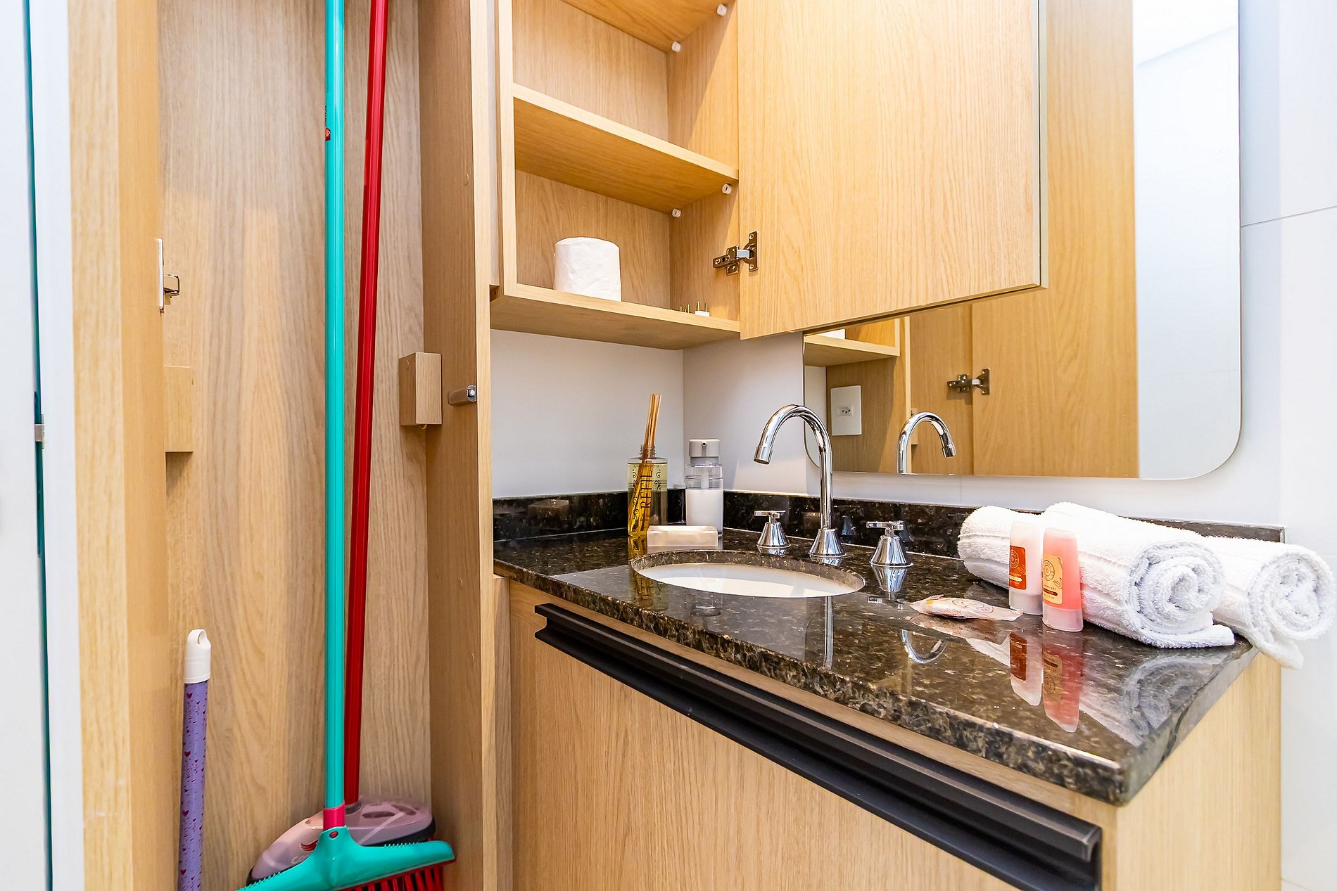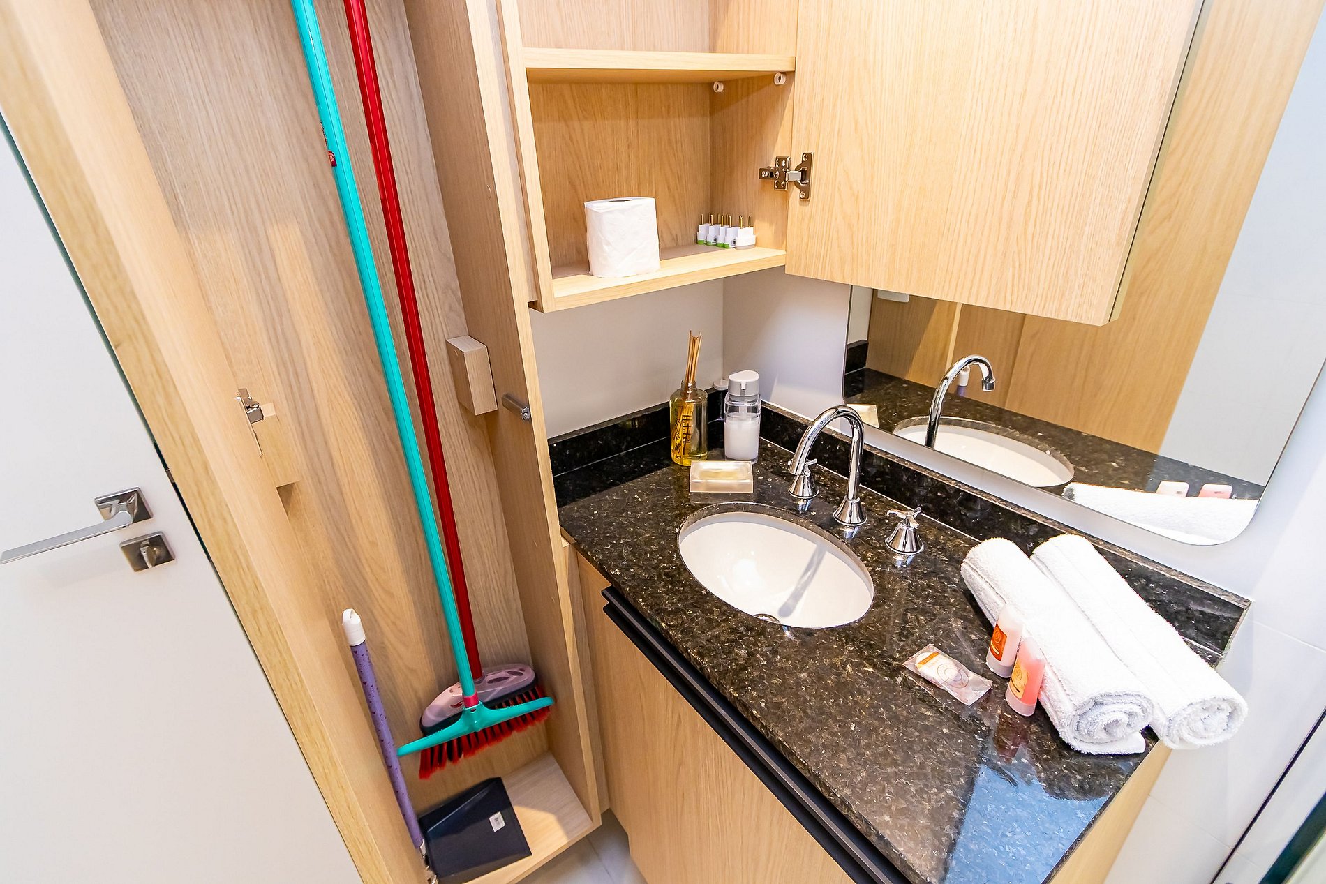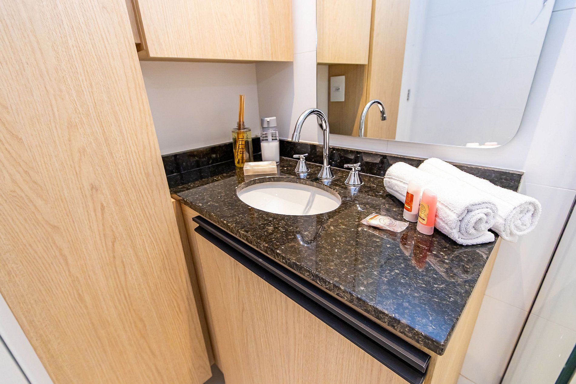 Durante a sua estadia não temos serviço de quarto e nem fazemos a reposição dos itens da sua unidade como: shampoo, condicionador, sabonete, papel higiênico, pano de prato, esponja e detergente de louça, além de pilhas do controle remoto, ar-condicionado e da fechadura eletrônica. A reposição destes itens é de responsabilidade do hóspede titular da reserva.