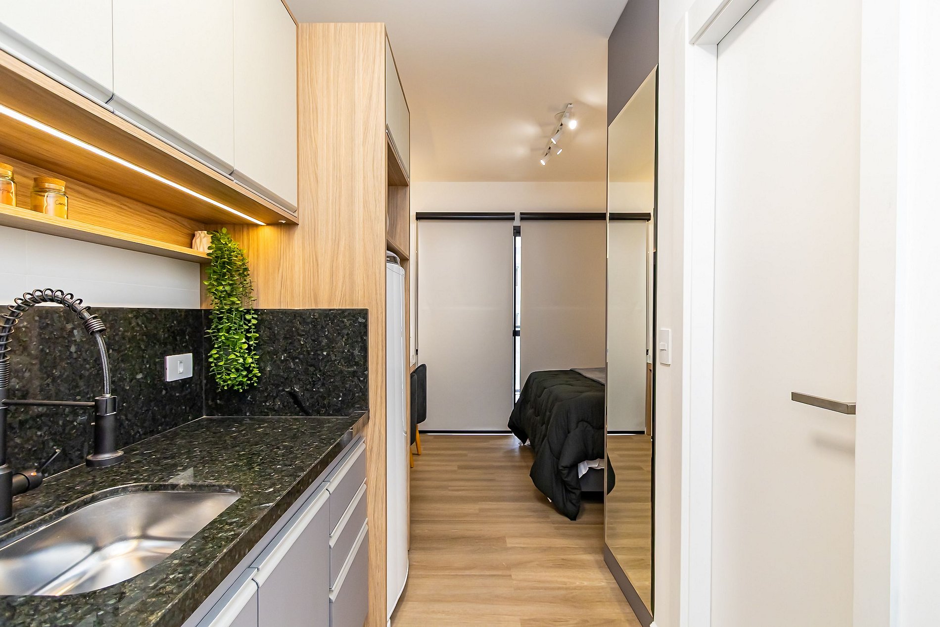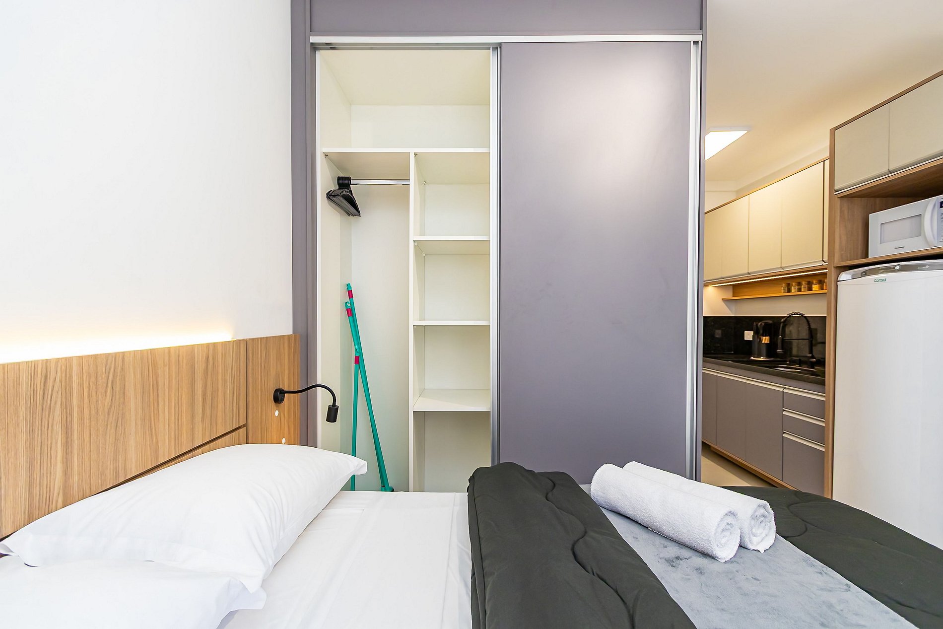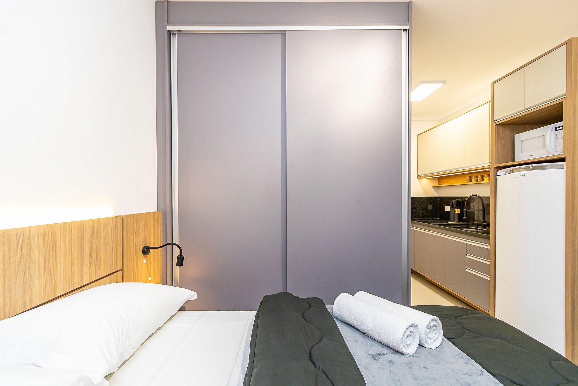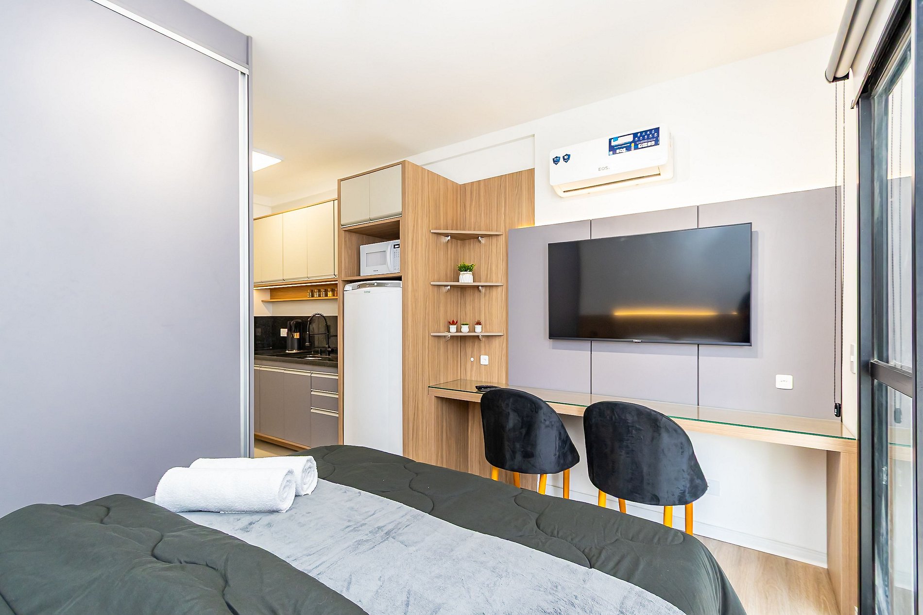 ⌂ Studio totalmente mobiliado que oferece as seguintes comodidades aos seus hóspedes: