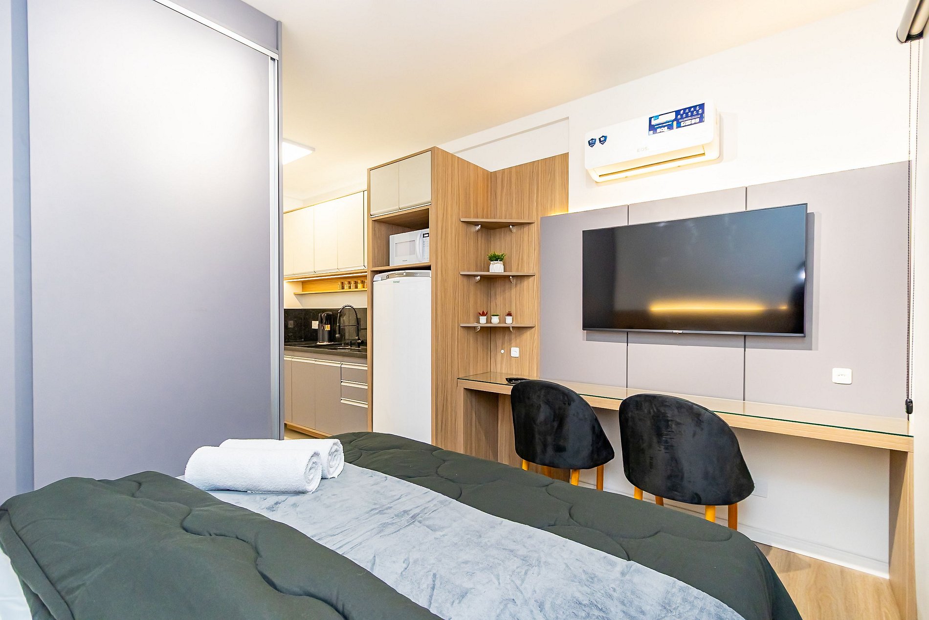 Studio moderno e aconchegante, ideal para até 2 pessoas, com vaga de garagem exclusiva. Localizado no Batel, o bairro mais valorizado e desejado da cidade, com fácil acesso a uma ampla variedade de restaurantes, cafés, lojas e serviços. Situado em um edifício novo, que combina conforto, praticidade e um estilo de vida contemporâneo. Uma excelente opção para quem busca uma estadia elegante, bem localizada e com toda a conveniência ao redor.