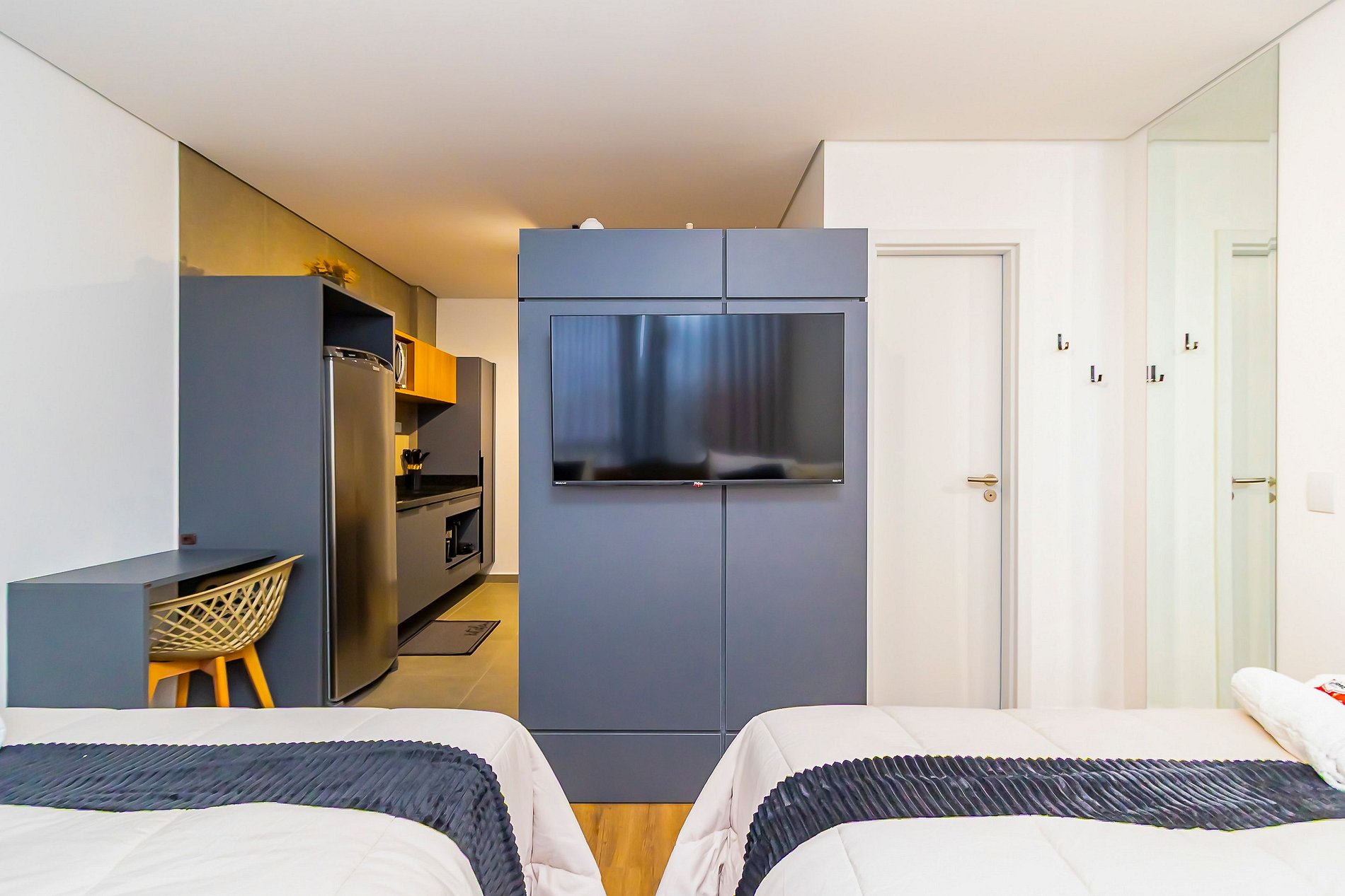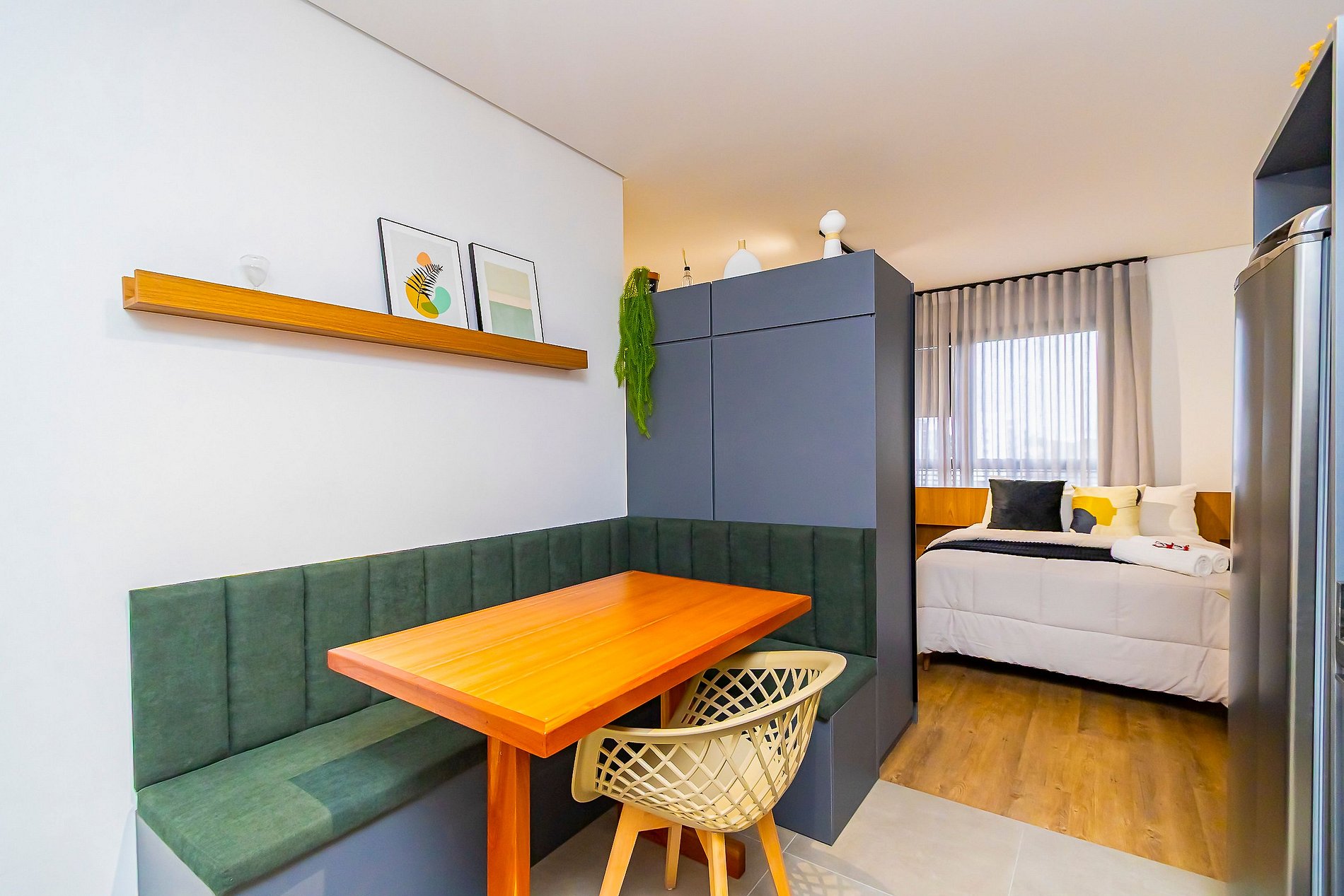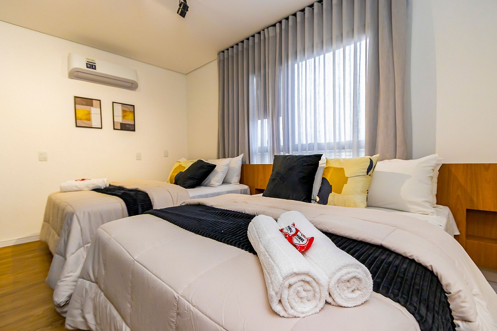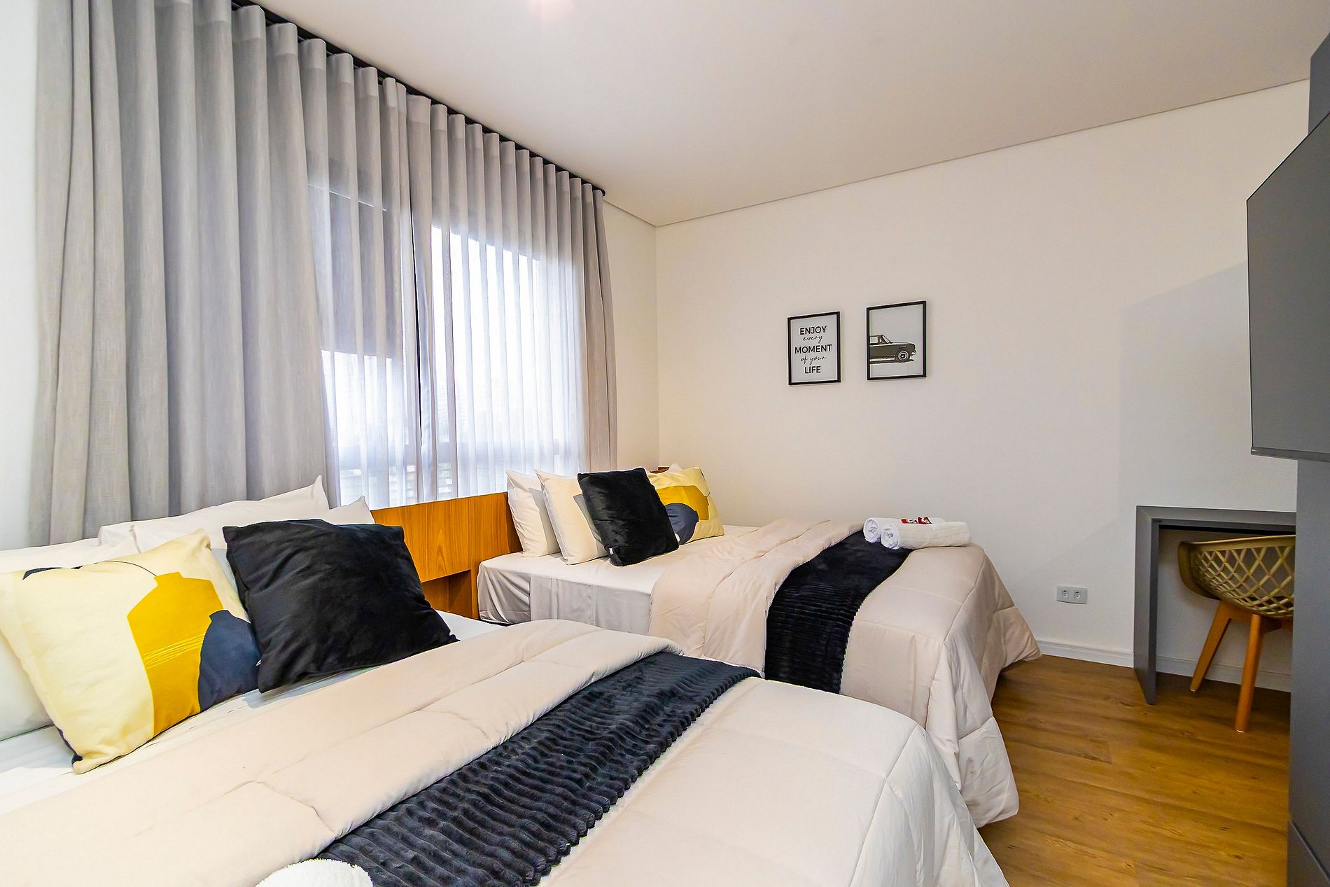 Studio amplo e aconchegante, com duas camas de casal, ideal para até 4 pessoas. O espaço é super completo, com cozinha equipada, ambiente moderno e todos os itens necessários para uma estadia confortável. Conta com vaga de garagem exclusiva, garantindo praticidade e segurança. Localizado em uma região tranquila e de fácil acesso, é perfeito para quem busca descanso, comodidade e uma experiência agradável em Curitiba, seja a passeio ou a trabalho.
