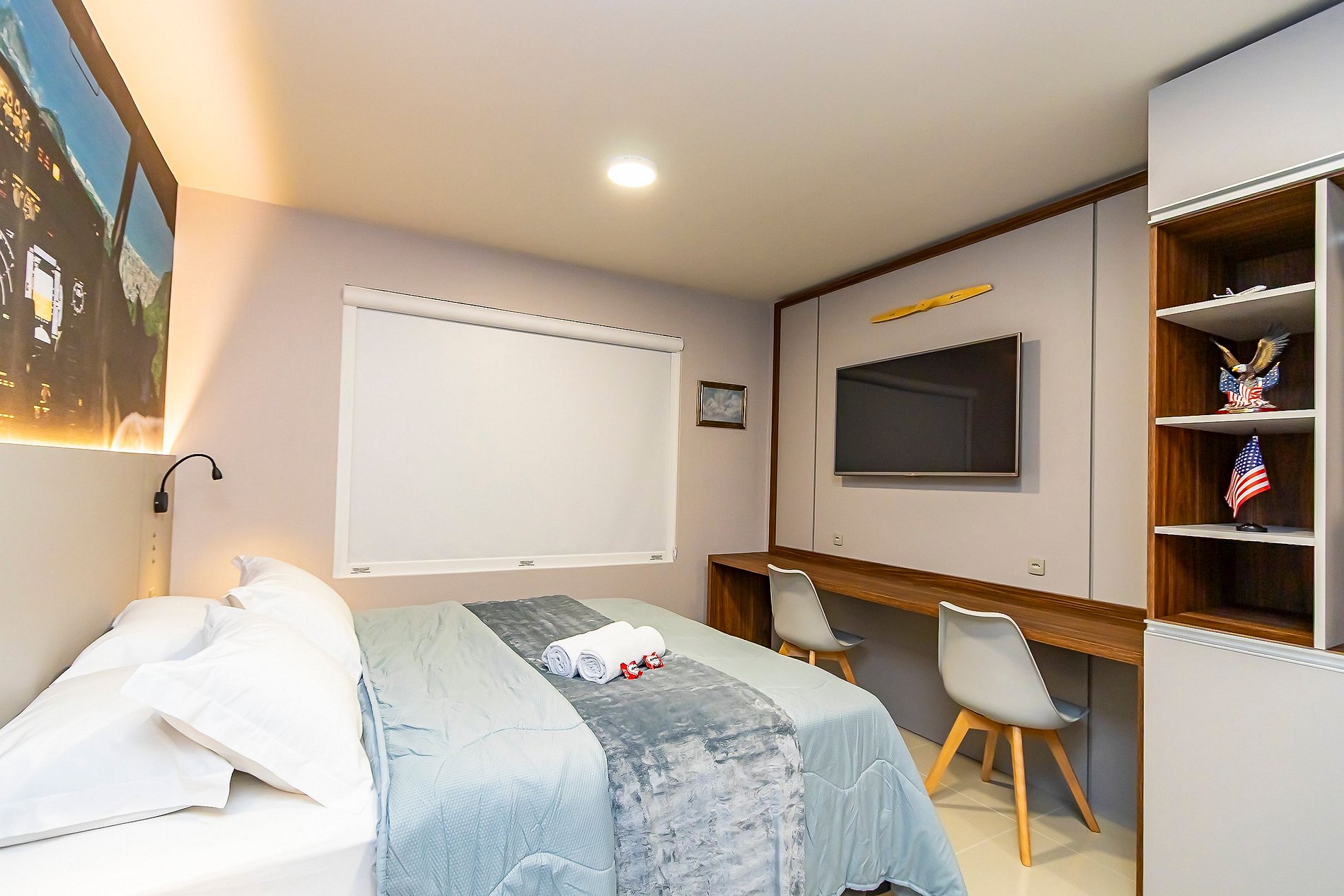 Prepare-se para decolar rumo a uma experiência única neste Studio temático de aviação, no coração de Curitiba. Cada detalhe foi projetado para transportar você ao universo das alturas, das cores que remetem ao céu às peças de decoração que celebram o prazer de voar. Localizado em um prédio novo e moderno, o espaço é completo, confortável e funcional, ideal para quem busca uma estadia leve, inspiradora e com o conforto de um pouso perfeito.