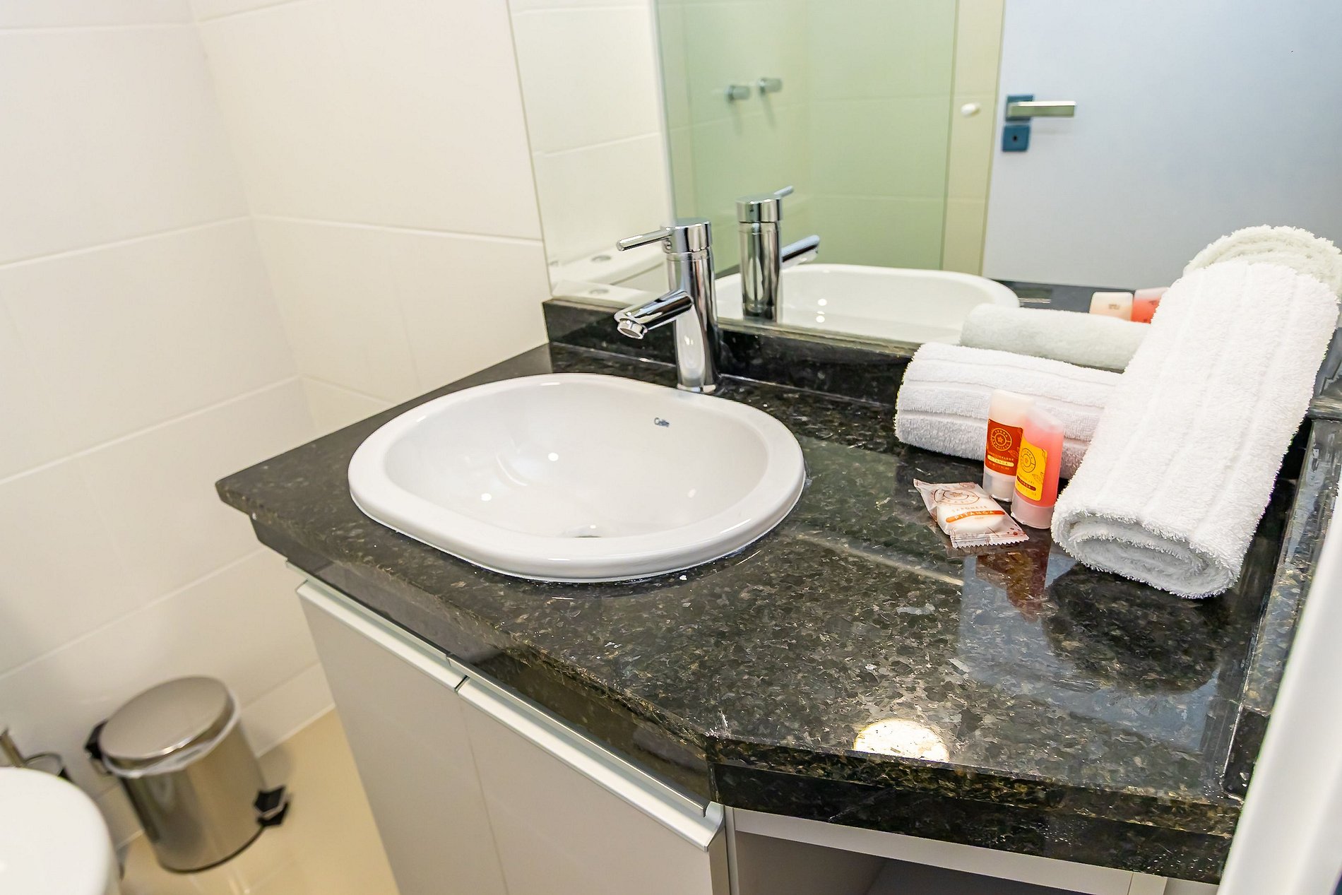 Durante a sua estadia não temos serviço de quarto e nem fazemos a reposição dos itens da sua unidade como: shampoo, condicionador, sabonete, papel higiênico, pano de prato, esponja e detergente de louça, além de pilhas do controle remoto, ar-condicionado e da fechadura eletrônica. A reposição destes itens é de responsabilidade do hóspede titular da reserva.