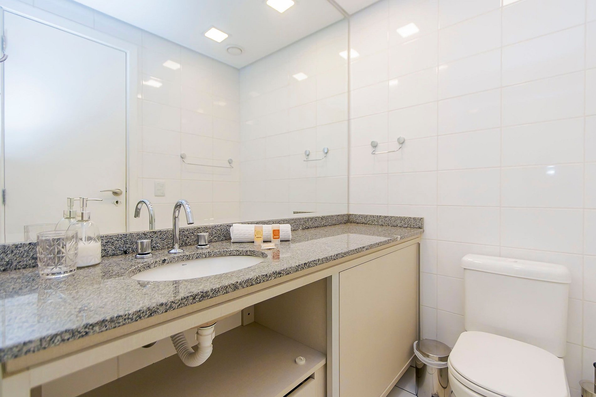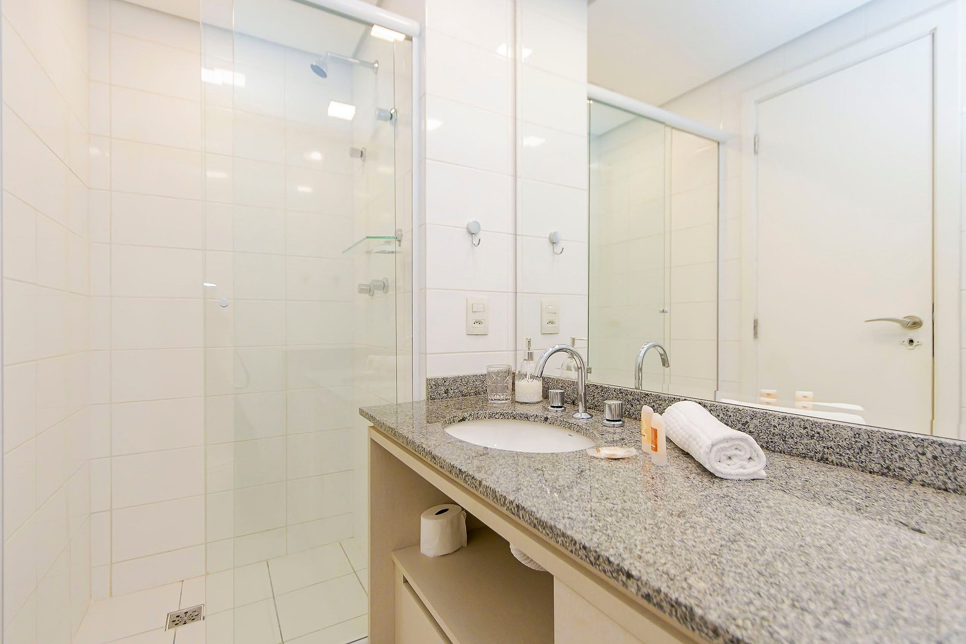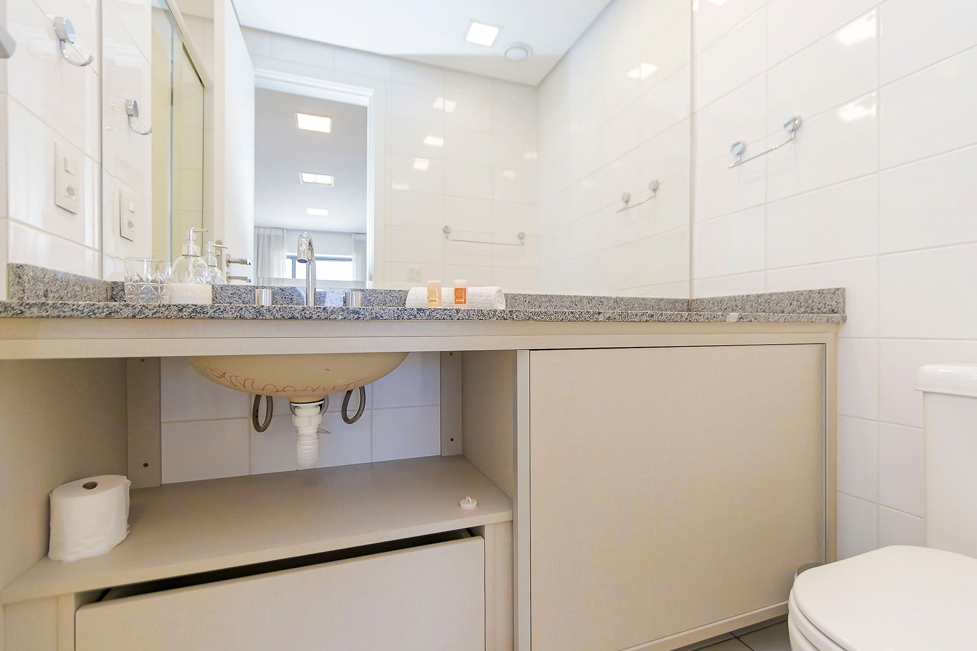Durante a sua estadia não temos serviço de quarto e nem fazemos a reposição dos itens da sua unidade como: shampoo, condicionador, sabonete, papel higiênico, pano de prato, esponja e detergente de louça, além de pilhas do controle remoto, ar-condicionado e da fechadura eletrônica. A reposição destes itens é de responsabilidade do hóspede titular da reserva.