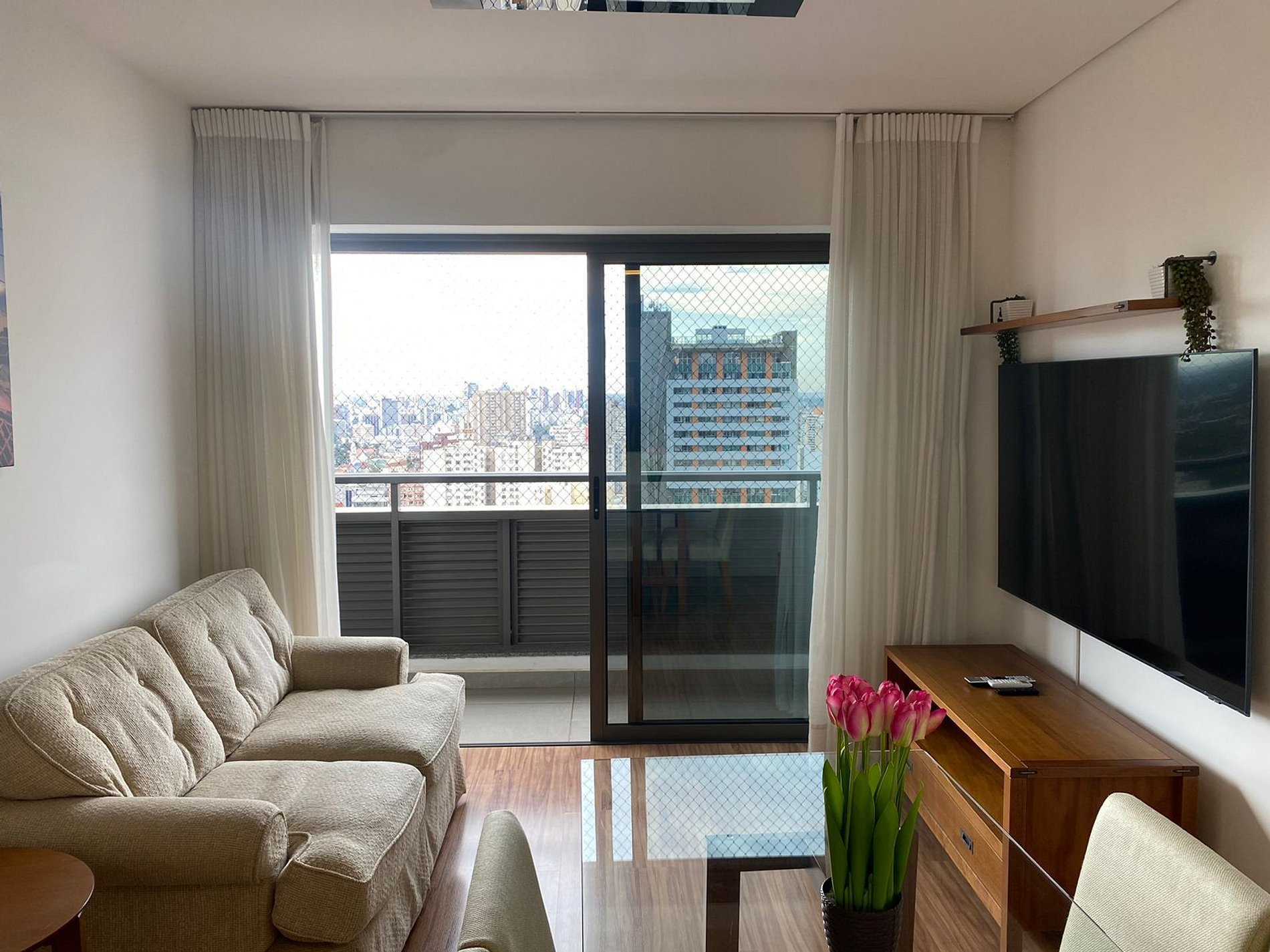 • O apartamento possui fechadura eletrônica, para aparecer o teclado numérico encoste a mão na fechadura, digite a senha e aperte o botão do cadeado aberto;