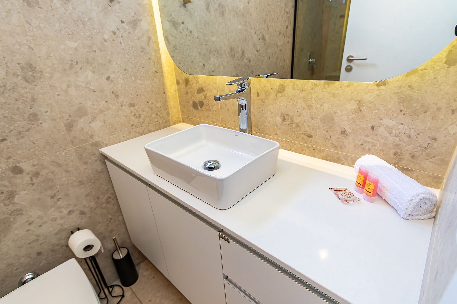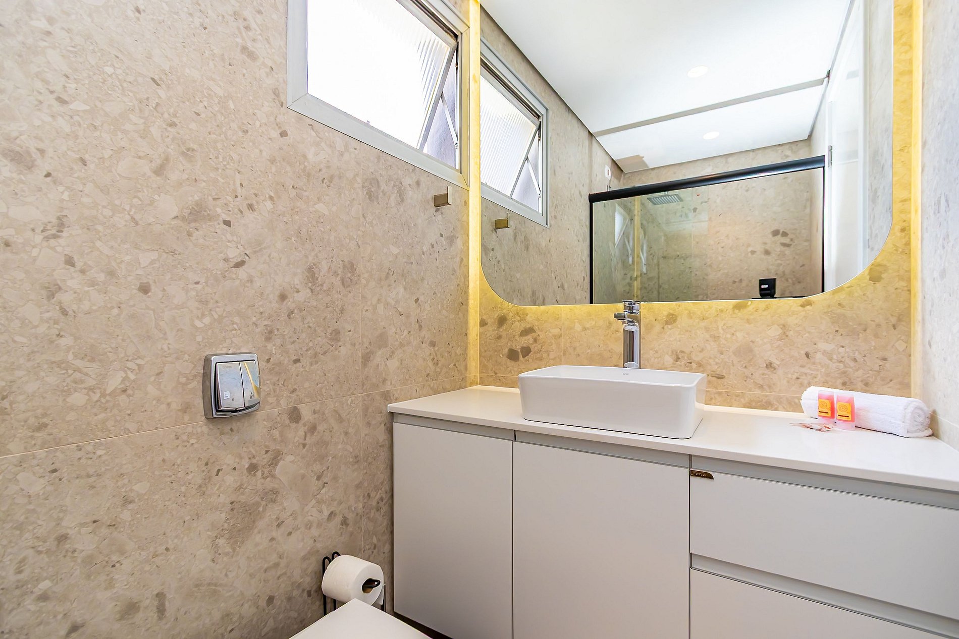Durante a sua estadia não temos serviço de quarto e nem fazemos a reposição dos itens da sua unidade como: shampoo, condicionador, sabonete, papel higiênico, pano de prato, esponja e detergente de louça, além de pilhas do controle remoto, ar-condicionado e da fechadura eletrônica. A reposição destes itens é de responsabilidade do hóspede titular da reserva.