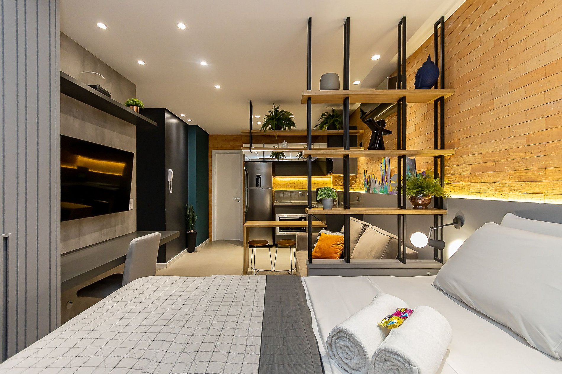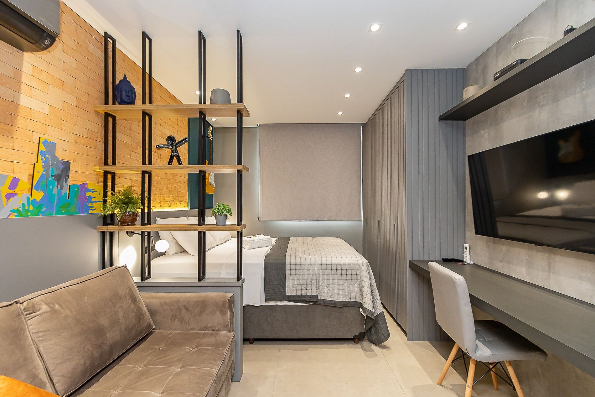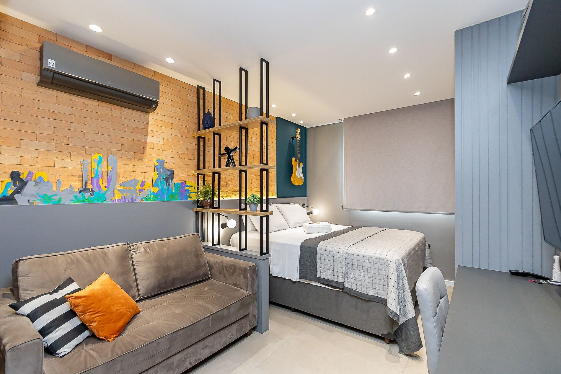 Studio exclusivo e super completo para até 4 pessoas, capa da revista Arquitetura & Construção 2022, assinado pela arquiteta Karine Iurk e artistas locais. Equipado com ar-condicionado, smart TV 4K, cozinha completa, cama, sofá-cama e berço. Conta com internet de alta velocidade redundante, ideal para home office. Localização privilegiada no centro, próximo a pontos turísticos, com atendimento premiado de superhost reconhecido pelo Airbnb no Paraná e no Brasil.