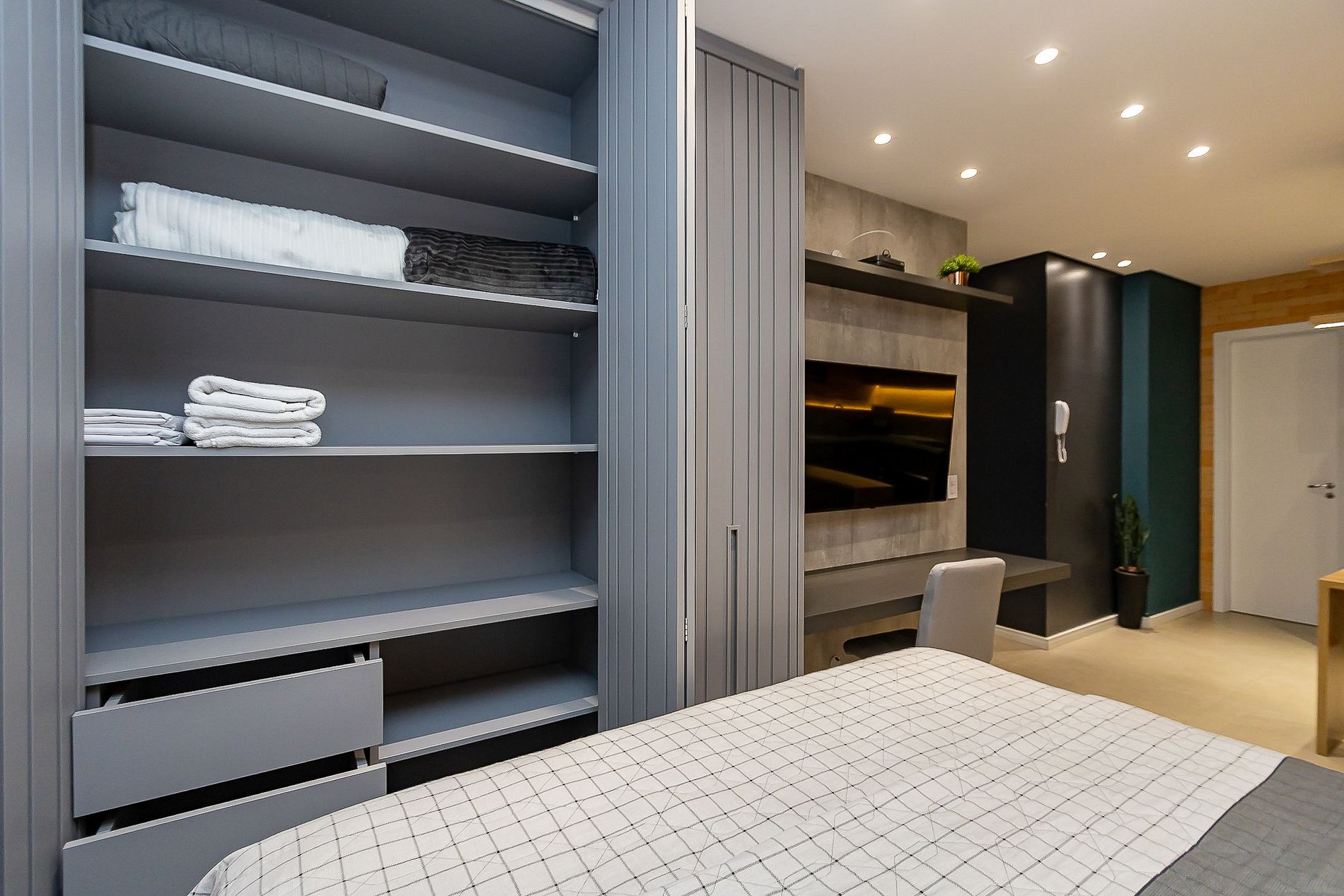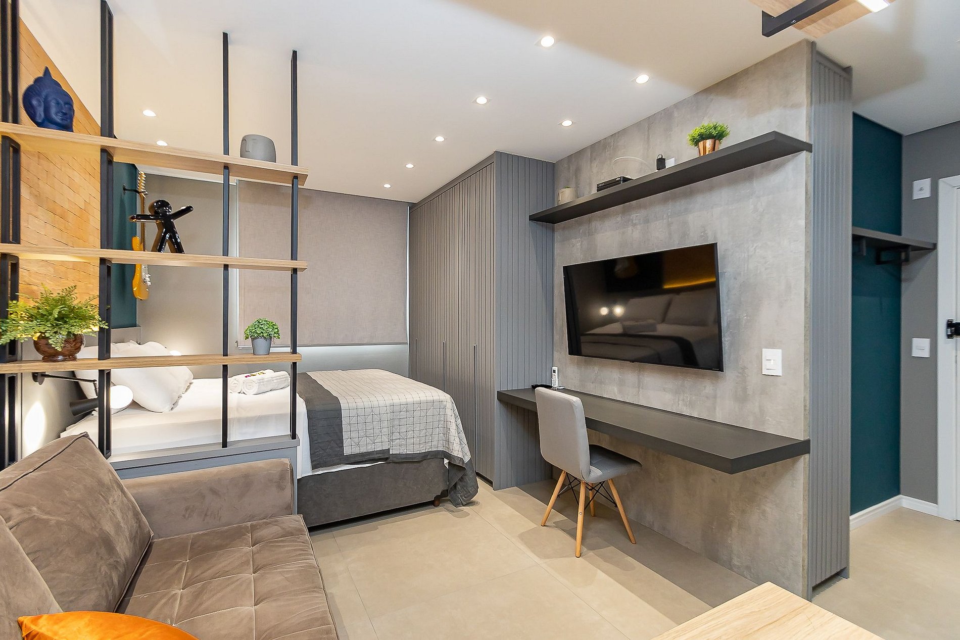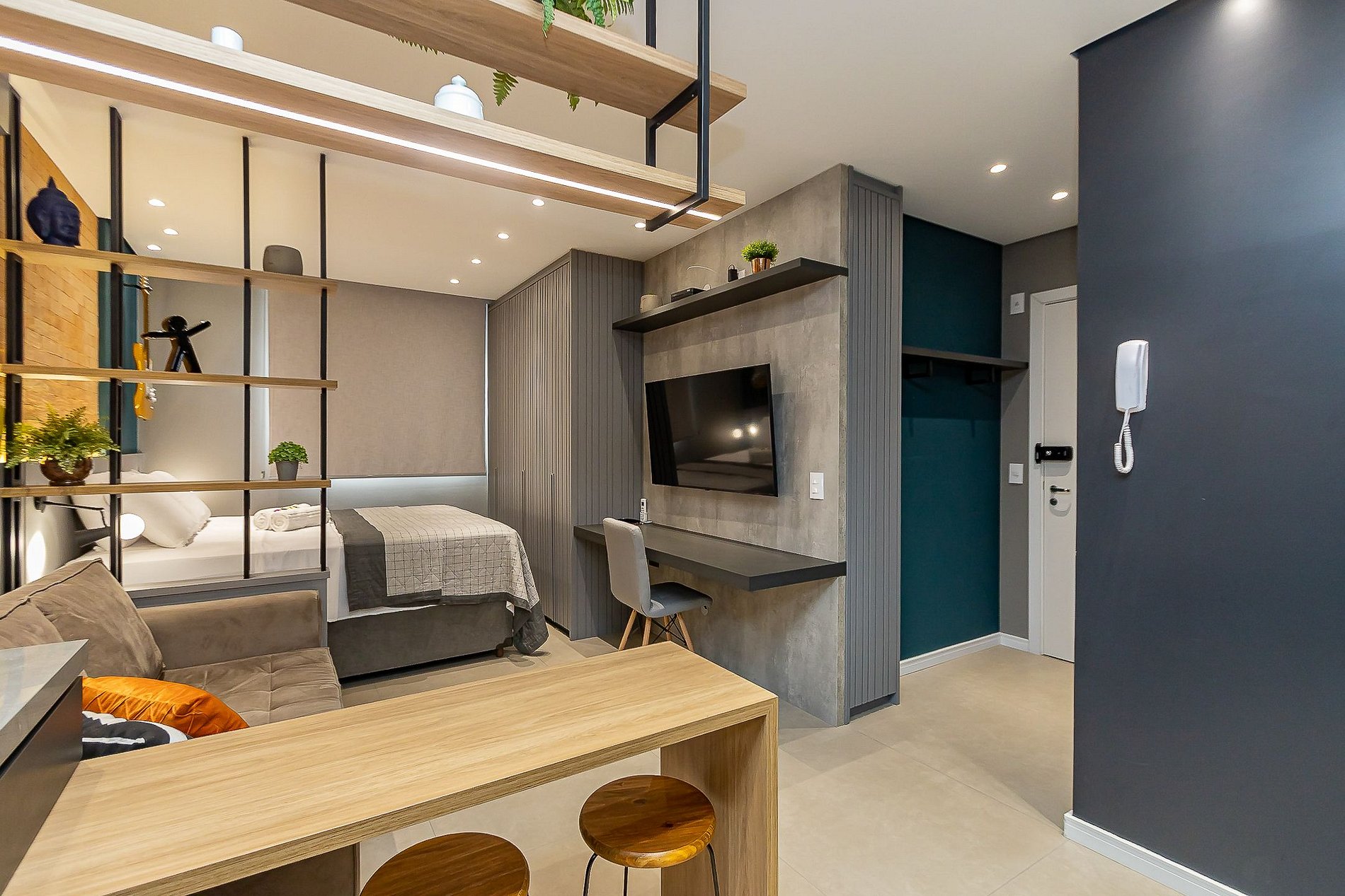 Studio exclusivo e super completo para até 4 pessoas, capa da revista Arquitetura & Construção 2022, assinado pela arquiteta Karine Iurk e artistas locais. Equipado com ar-condicionado, smart TV 4K, cozinha completa, cama, sofá-cama e berço. Conta com internet de alta velocidade redundante, ideal para home office. Localização privilegiada no centro, próximo a pontos turísticos, com atendimento premiado de superhost reconhecido pelo Airbnb no Paraná e no Brasil.