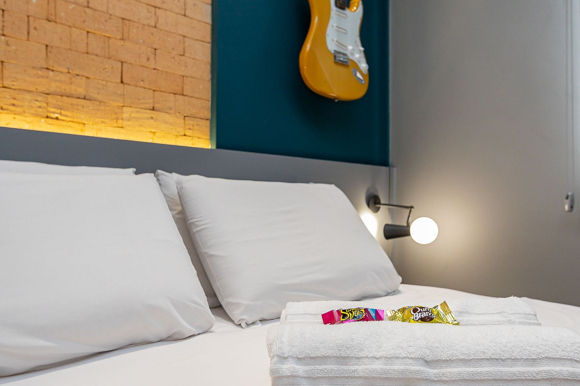 • Guitarra Elétrica 1970 com pantone do apartamento, cor de amarelo que adquiriu a cor necessária para combinar com o Studio após mais de 40 anos.