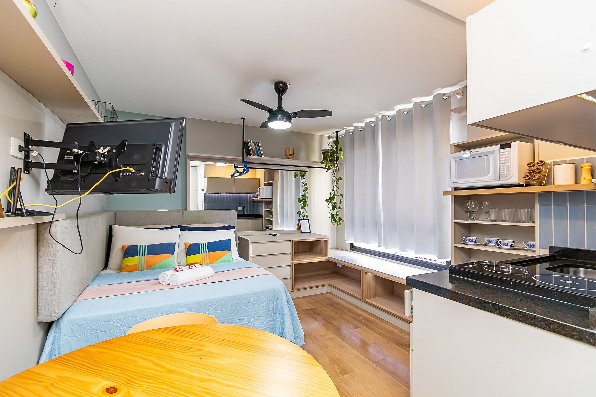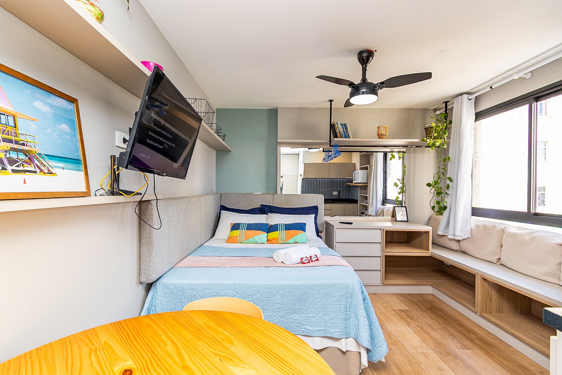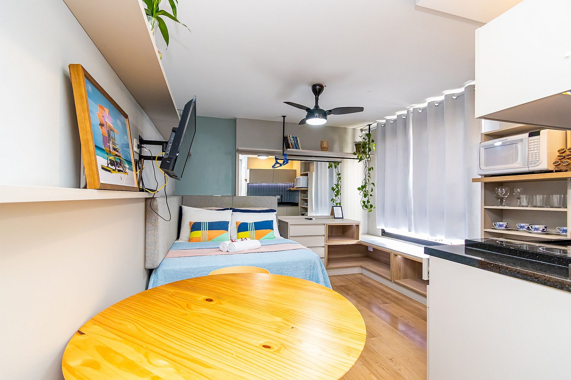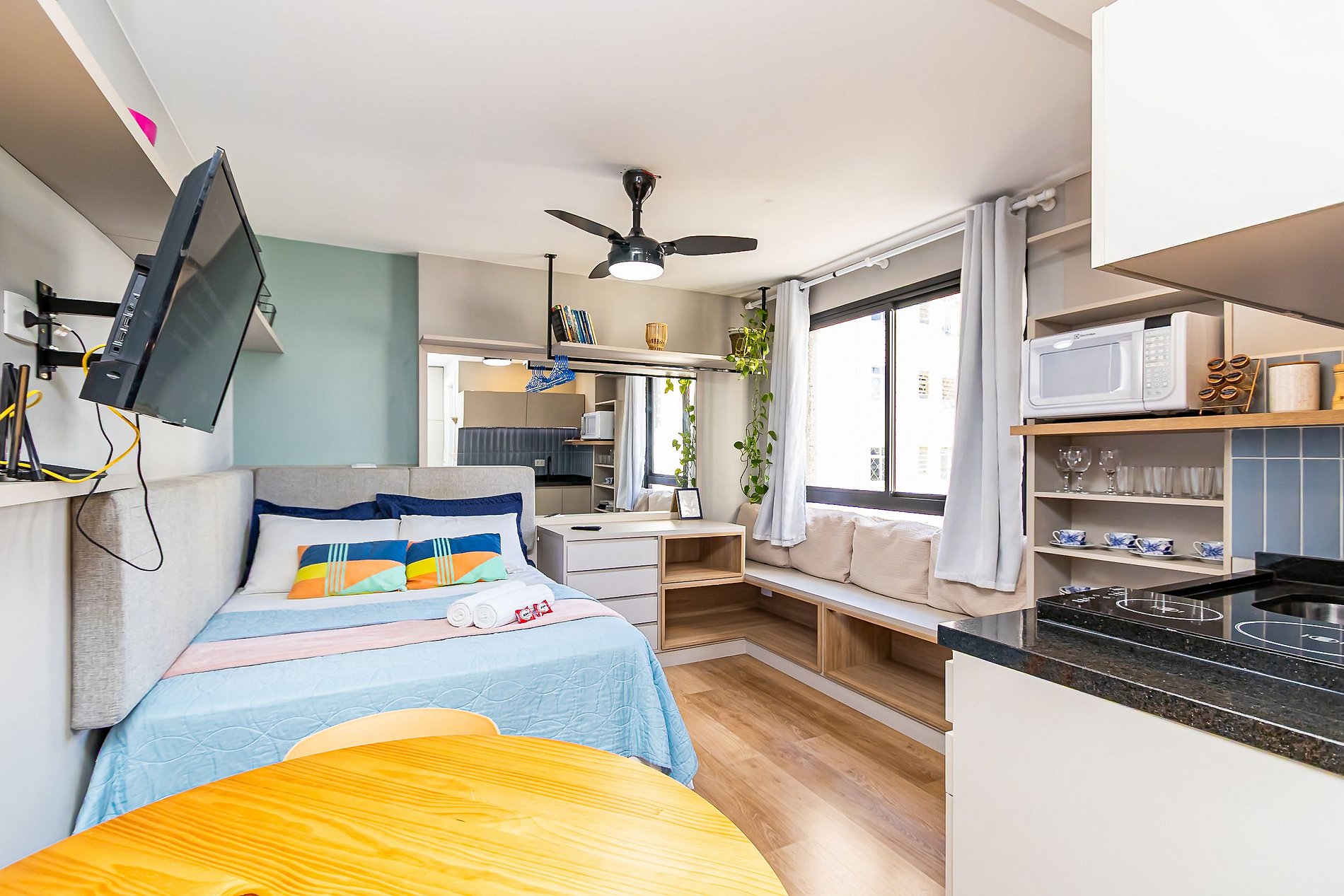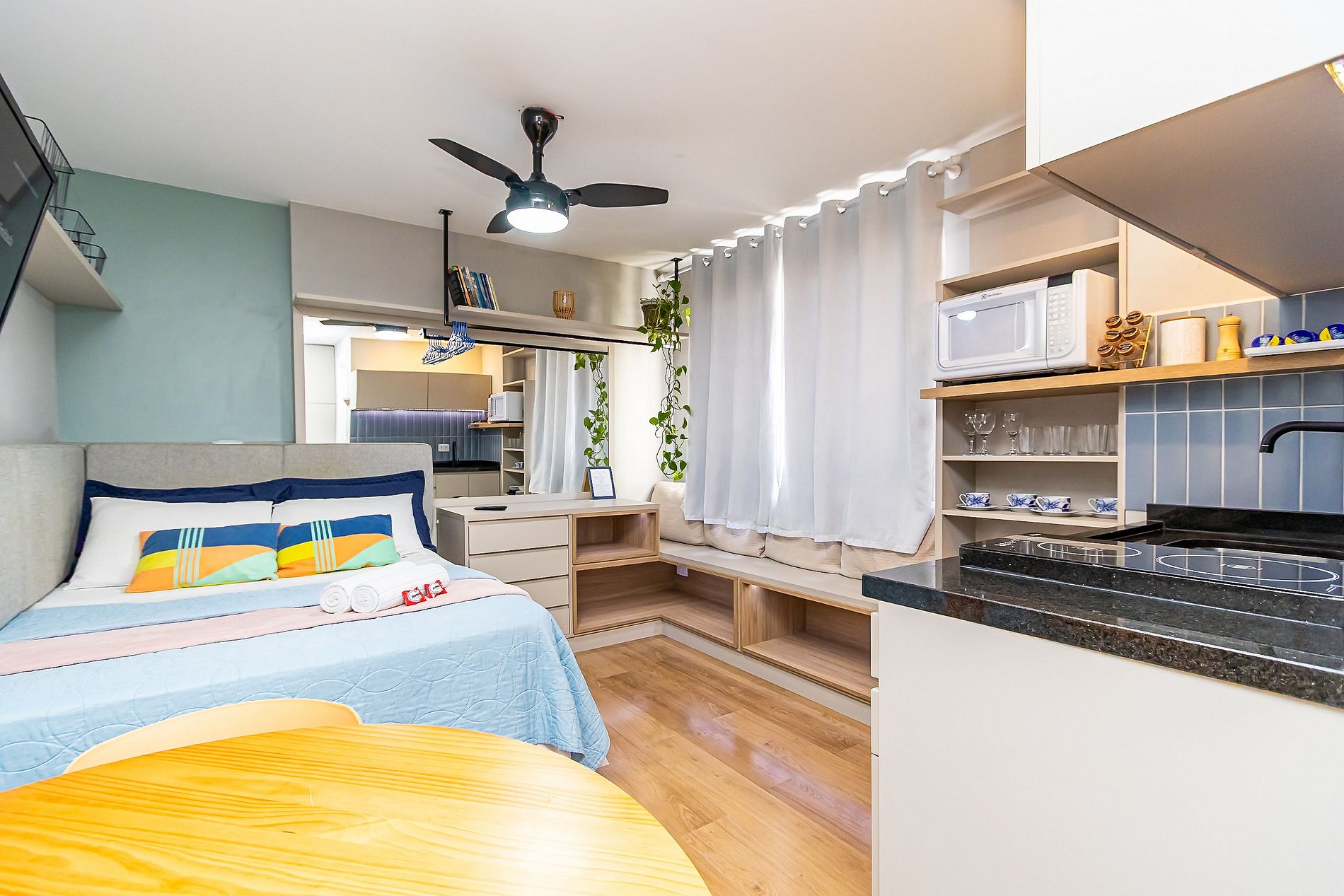 ⌂ Estúdio totalmente mobiliado que oferece as seguintes comodidades aos seus hospedes: