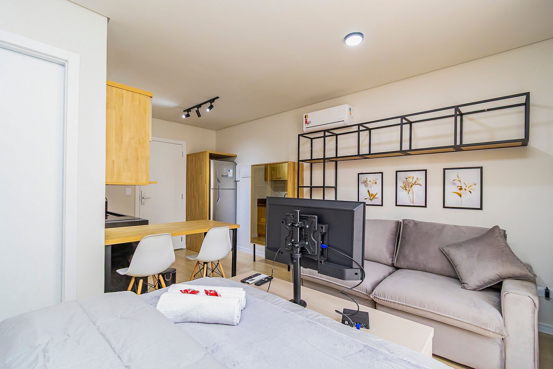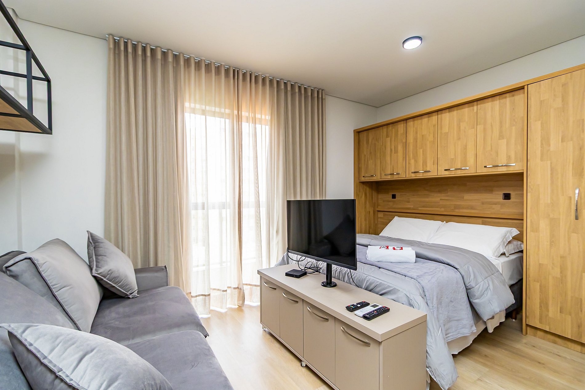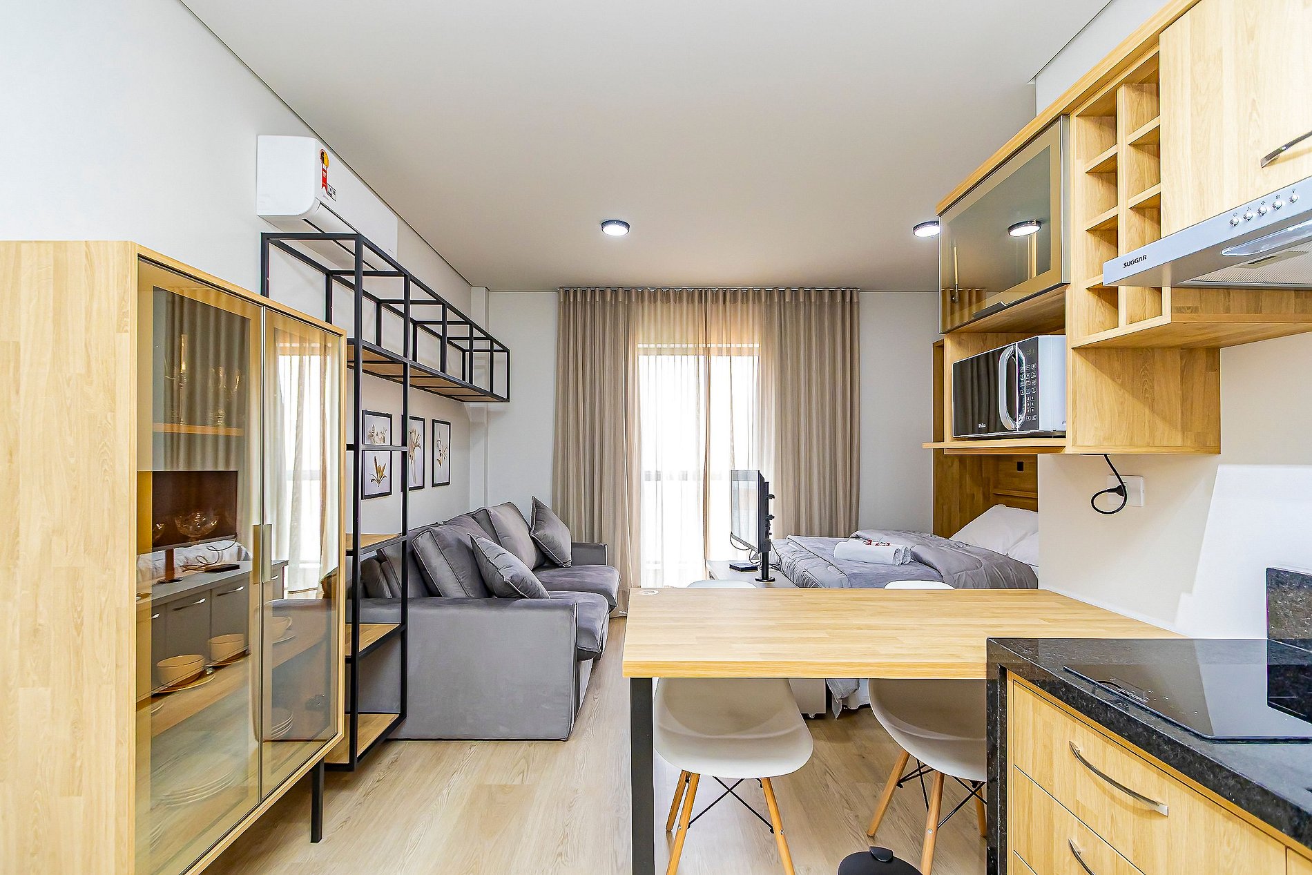 Studio novo e funcional, ideal para até 4 pessoas, localizado no bairro Portão. O espaço é super completo, com cozinha equipada, ambiente aconchegante e tudo o que você precisa para uma estadia confortável. O condomínio oferece piscina e áreas de lazer, garantindo momentos de descanso e diversão. Em uma região prática e bem servida de comércio, você terá fácil acesso a shoppings, mercados, transporte e aos principais pontos da cidade.