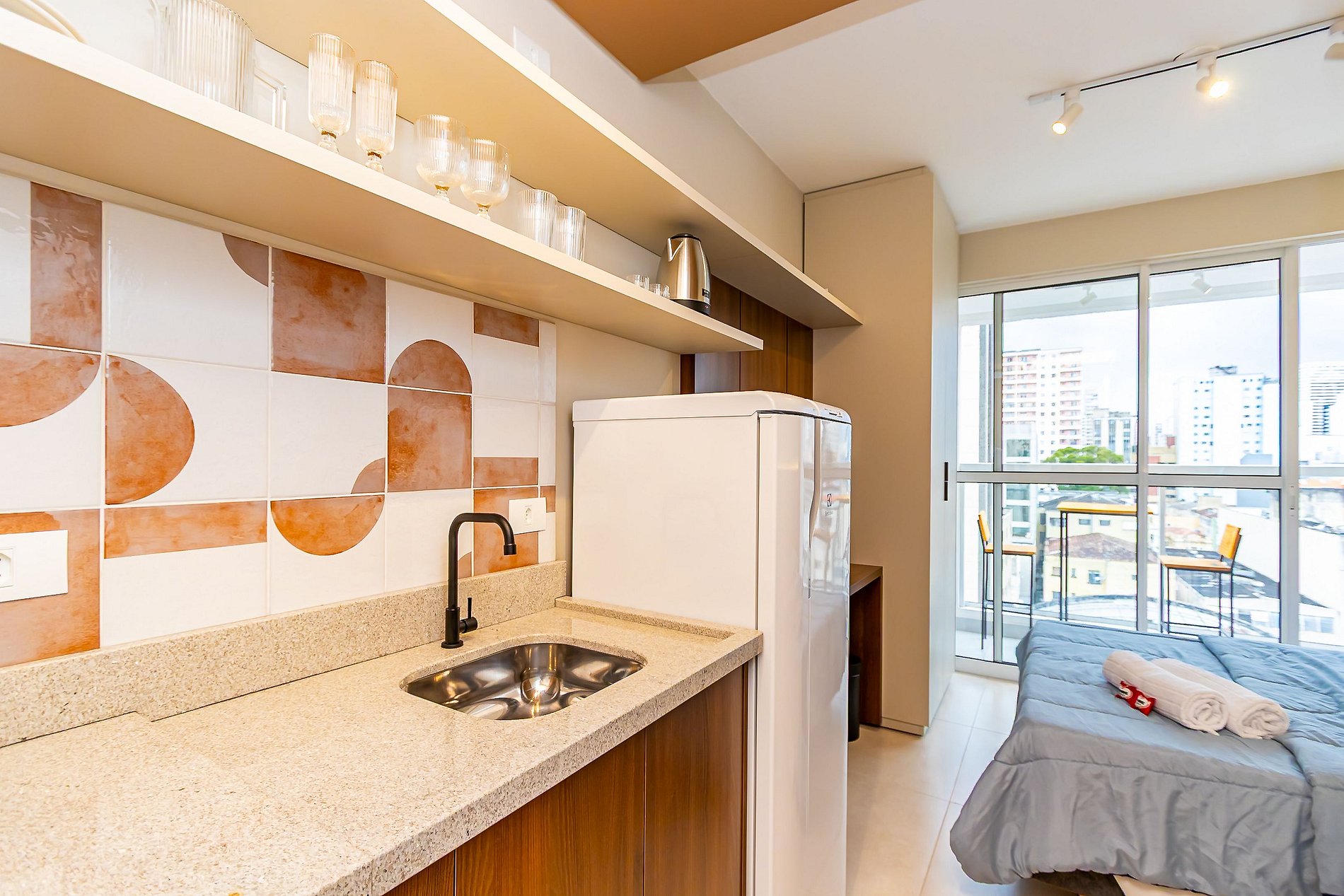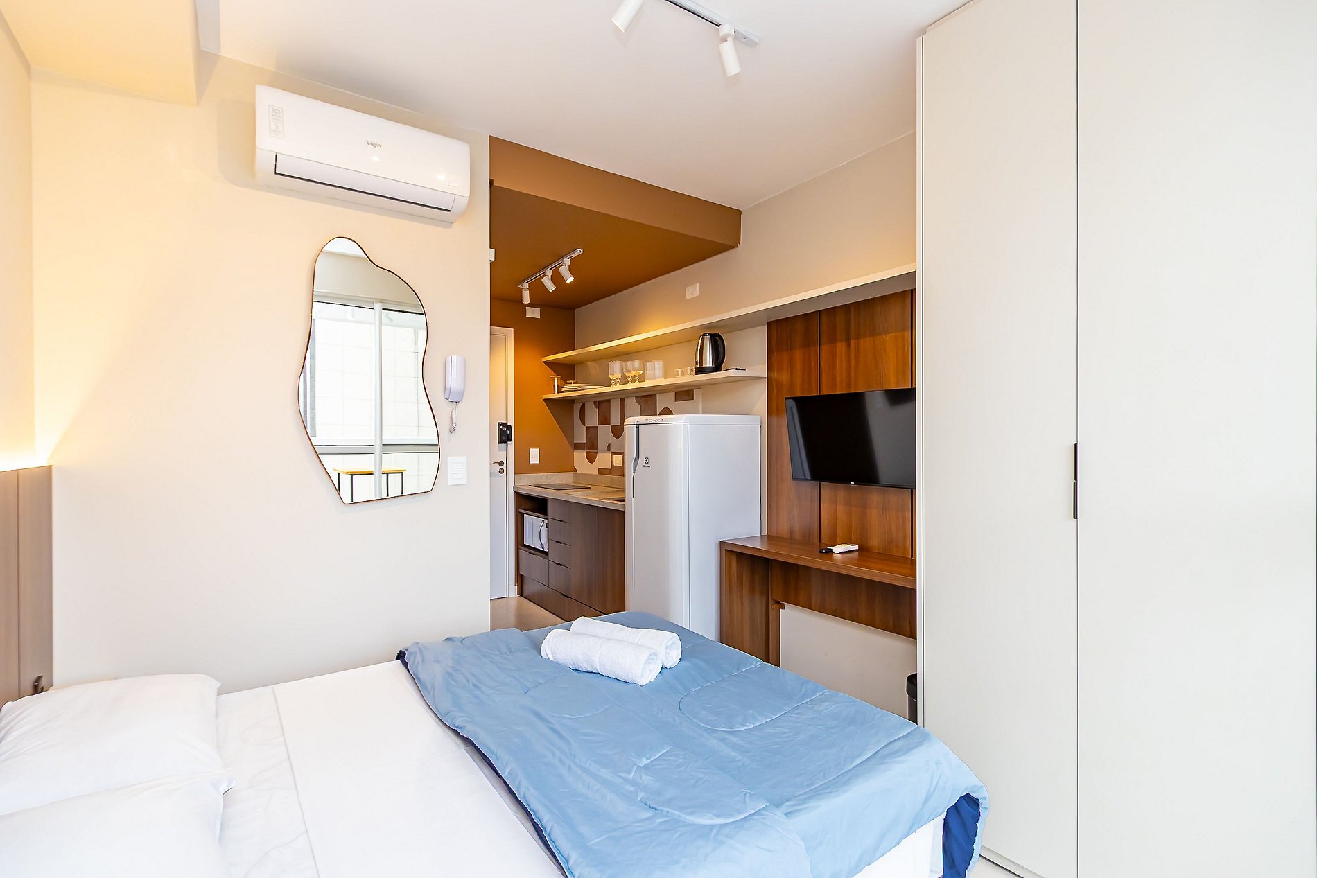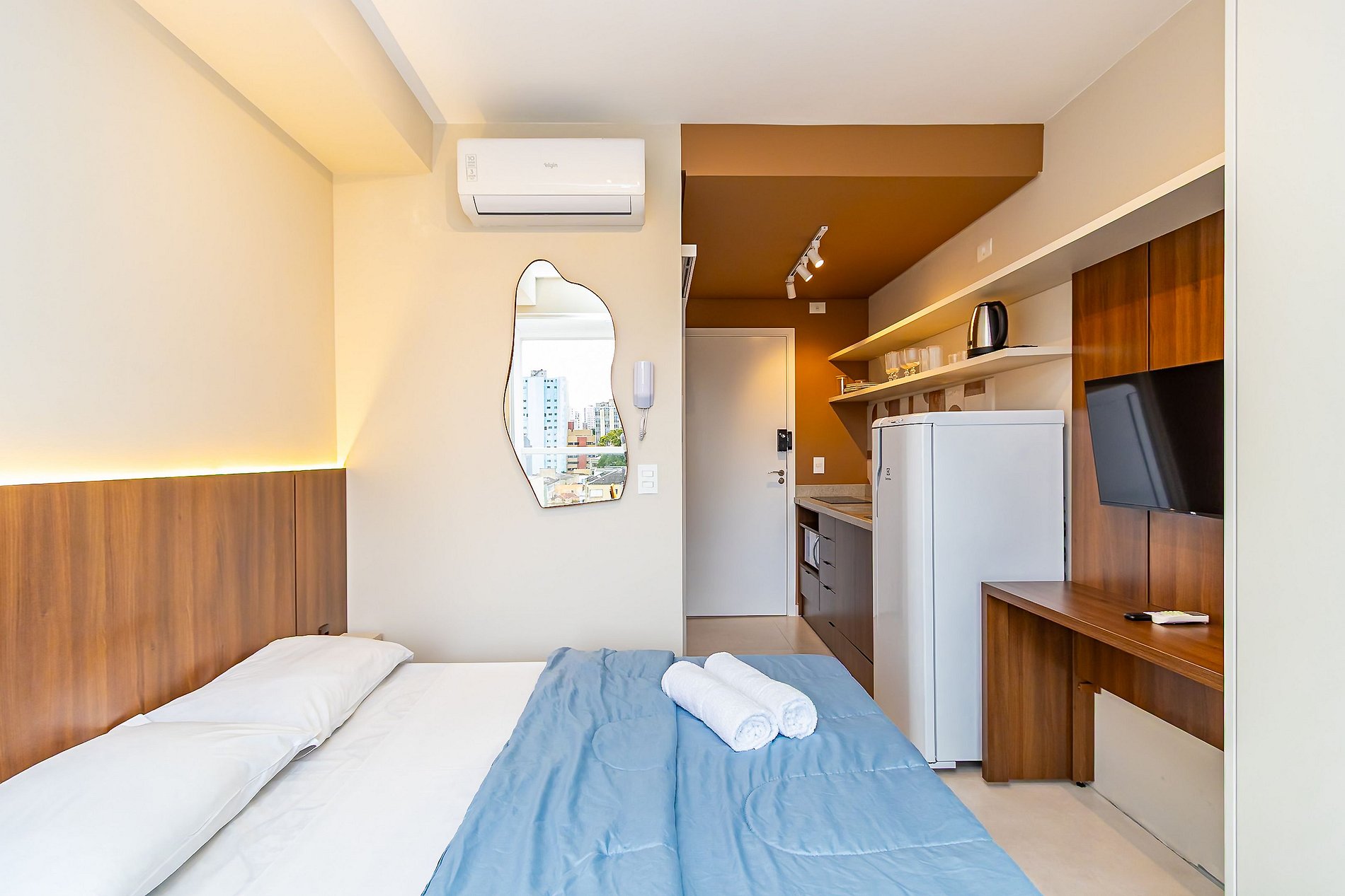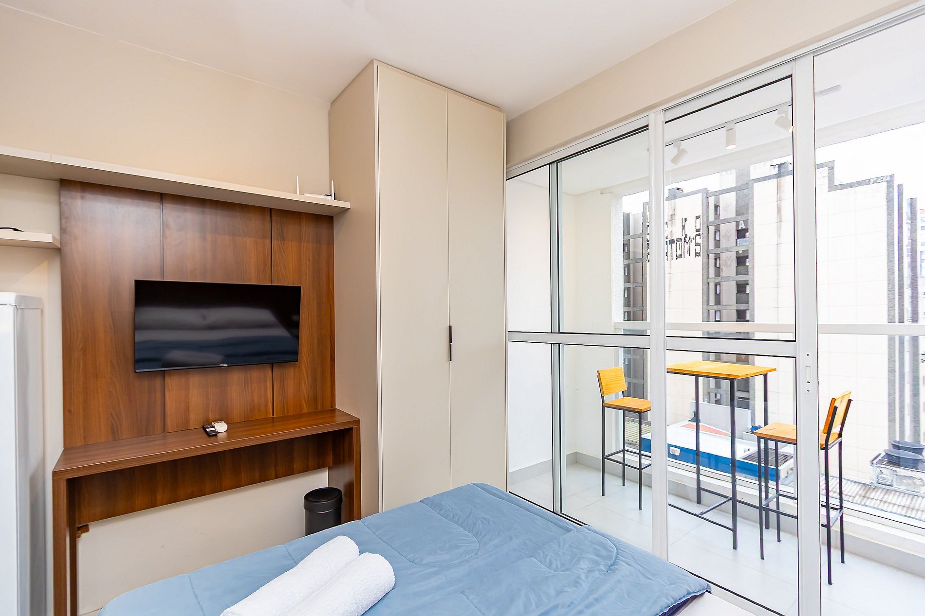 ⌂ Studio totalmente mobiliado que oferece as seguintes comodidades aos seus hóspedes: